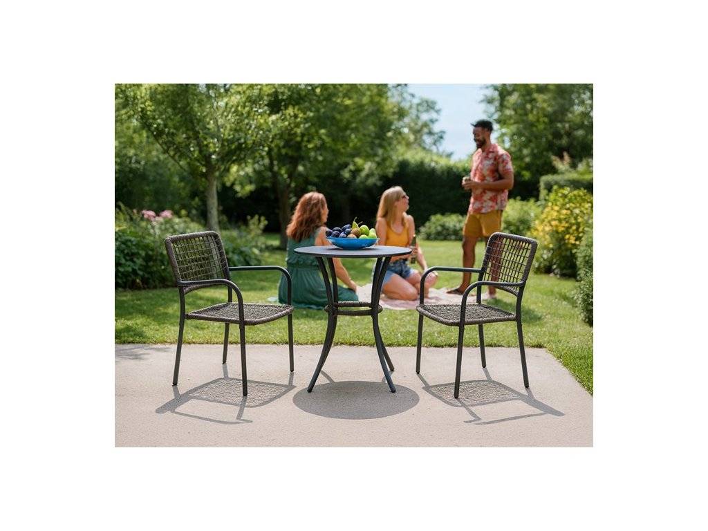 Zahradní set 1+2 značky Autronic je skvělou volbou pro pohodlné posezení na vaší terase nebo balkónu. Skládá se ze dvou židlí a kulatého stolku, což poskytuje ideální prostor pro relaxaci u kávy či čaje. Židle jsou vyrobeny z pevného polyratanu v šedém odstínu a mají stabilní kovovou konstrukci s práškovou povrchovou úpravou v antracitové barvě, která zajišťuje odolnost vůči venkovním vlivům. Deska i nohy stolku jsou vyrobeny z kovu, což zaručuje dlouhou životnost. Moderní design tohoto setu se skvěle hodí do každého venkovního prostoru a je snadno udržovatelný. Perfektní řešení pro malý i větší venkovní prostor.