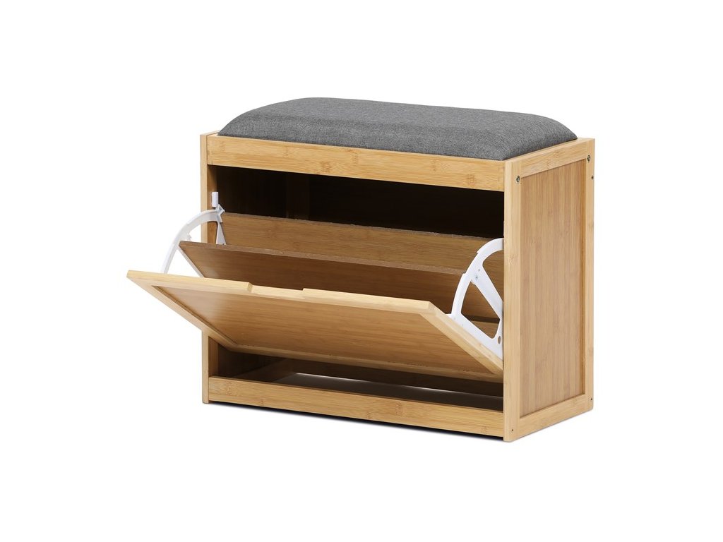 Botník DR-N1014 GREY2 značky Autronic kombinuje přírodní estetiku masivního bambusu s praktickým úložným prostorem a komfortním sedákem potaženým šedou látkou. Konstrukce je vyrobena z pevného a odolného bambusového masivu, který díky své přirozené struktuře a světlému odstínu dodává interiéru svěží a ekologický vzhled. Horní část botníku je opatřena měkkým polstrováním z kvalitní šedé textilie, která zajišťuje pohodlné sezení při obouvání. Úložný prostor je přístupný pomocí výklopného víka s praktickým výřezem pro snadné otevírání, což umožňuje efektivní uskladnění obuvi nebo dalších drobných předmětů. Stabilní rámová konstrukce z bambusu garantuje dlouhou životnost a pevnost, zatímco kompaktní rozměry botníku umožňují jeho umístění v předsíních i menších prostorách. Díky kombinaci přírodních materiálů a funkčních vlastností představuje tento botník ideální řešení pro organizaci domácnosti s důrazem na design i praktičnost.