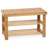 Botník a taburet v přírodním odstínu z masivního bambusu nabízí praktické řešení pro uskladnění obuvi i posezení. Pevné tělo z bambusových lamel je doplněno dvěma policemi s dostatečným prostorem pro uložení bot, přičemž materiál se snadno udržuje a je navržen pro dlouhou životnost. Kompaktní rozměry umožňují umístění v předsíni či chodbě, kde zároveň slouží jako pohodlné sedátko při obouvání. Stabilní provedení zajišťuje bezpečné používání a přírodní vzhled se hodí do různých interiérových stylů.