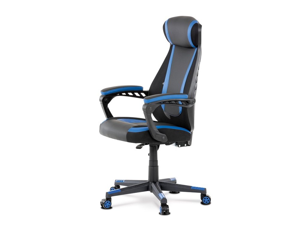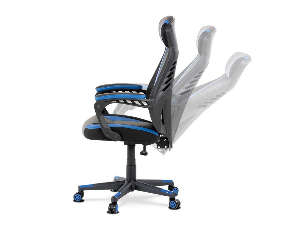 Herní křeslo, houpací mechanismus, černá ekokůže, KA-Y213 BLUE