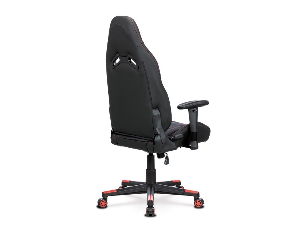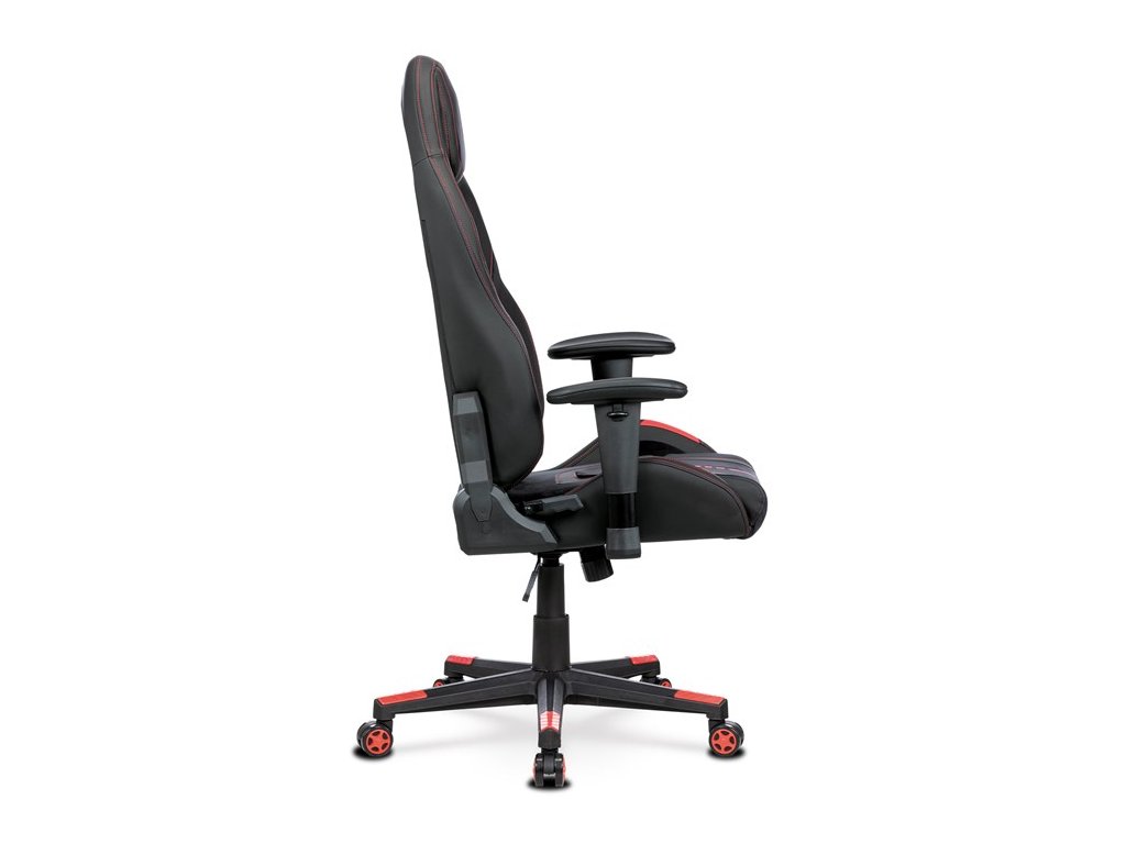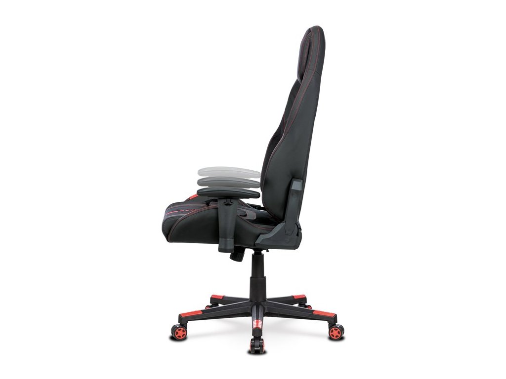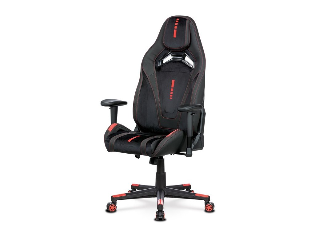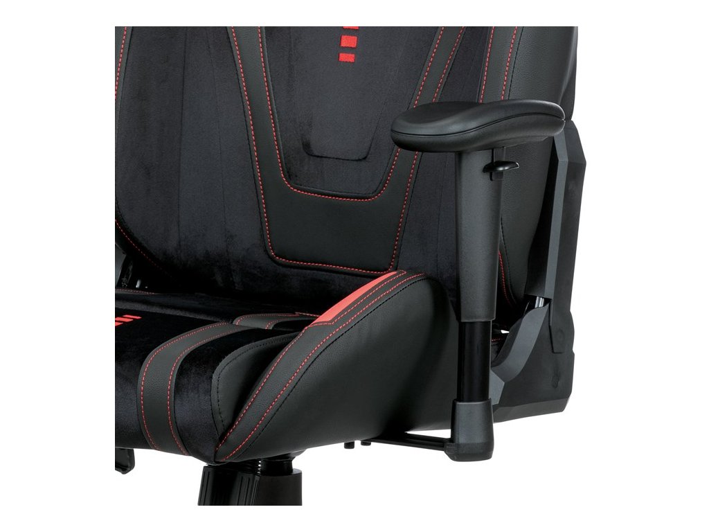 Herní křeslo, houpací mechanismus, černá látka, KA-F07 RED