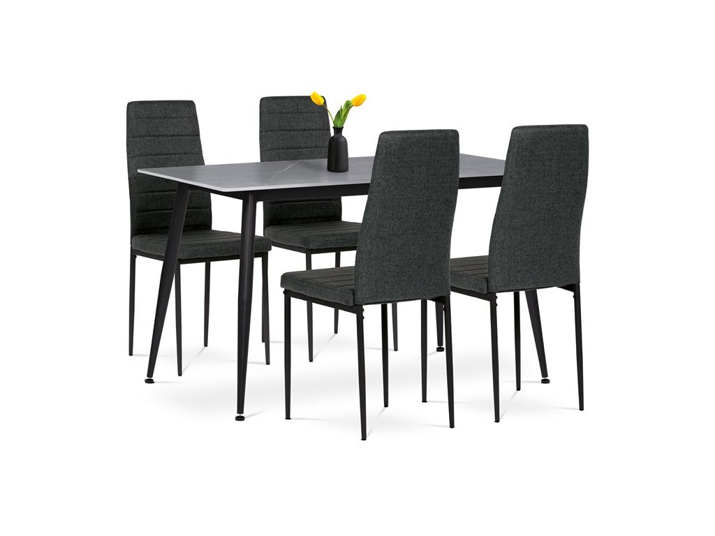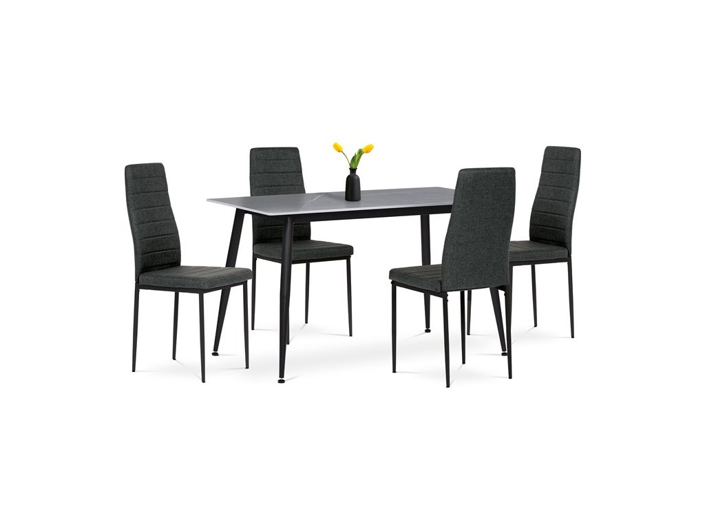 Jídelní set s 4 židlemi, 130x70x76cm mramor, ASE-1003 BK2