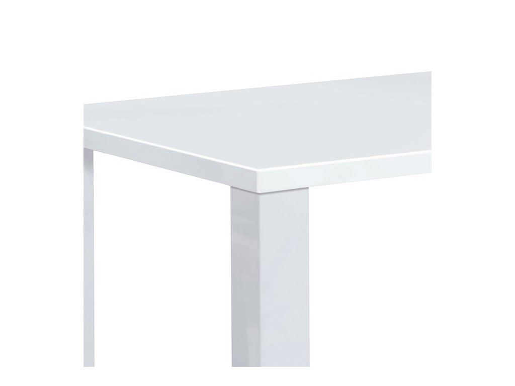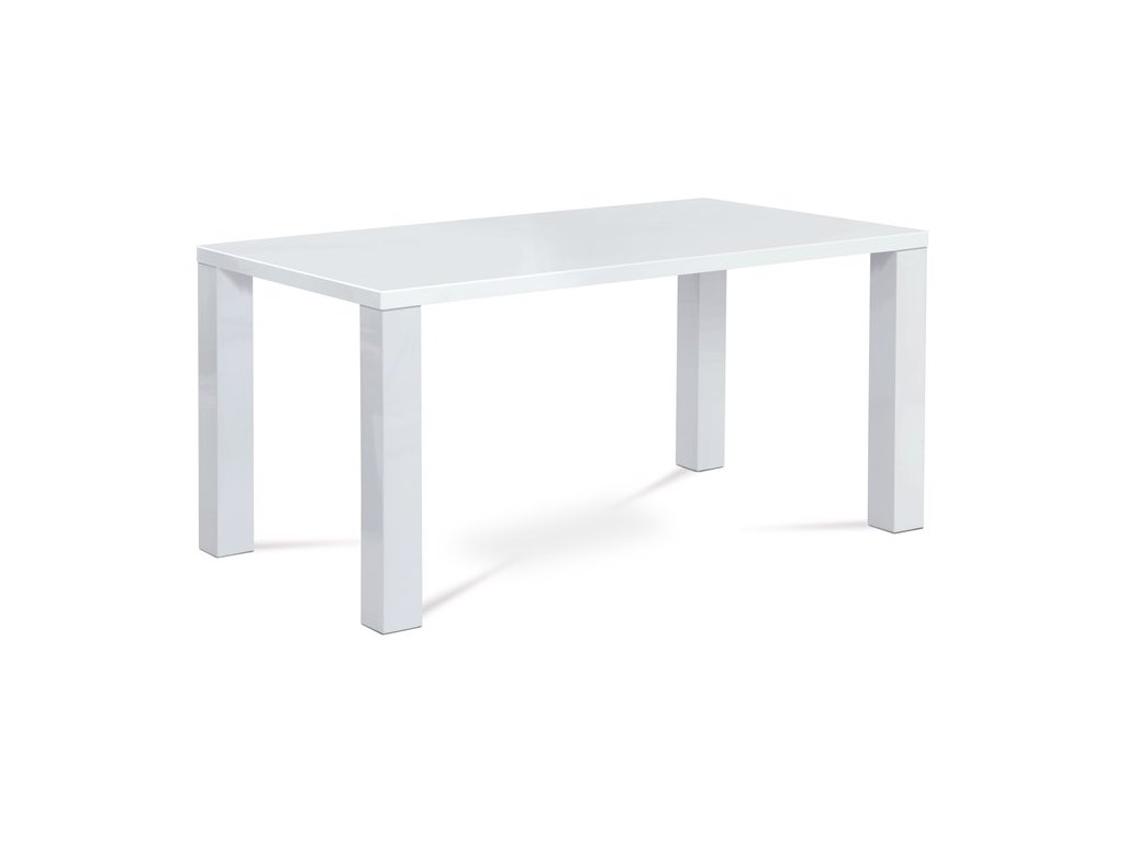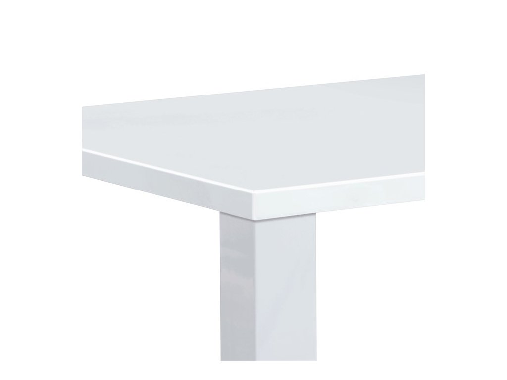 Jídelní stůl o rozměrech 160x90x76 cm je vyroben z MDF materiálu s povrchovou úpravou v lesklém bílém laku, který dodává moderní a svěží vzhled. Deska stolu je pevná a hladká s vysokým leskem, který usnadňuje údržbu a odolává běžnému opotřebení. Robustní nohy stolu jsou rovněž z MDF a zajišťují stabilitu a pevnost celé konstrukce. Zaoblené rohy desky přispívají k bezpečnosti a zároveň podtrhují minimalistický design. Stůl je vhodný pro každodenní použití v jídelnách i kuchyních, kde oceníte jeho jednoduchost a snadnou údržbu.