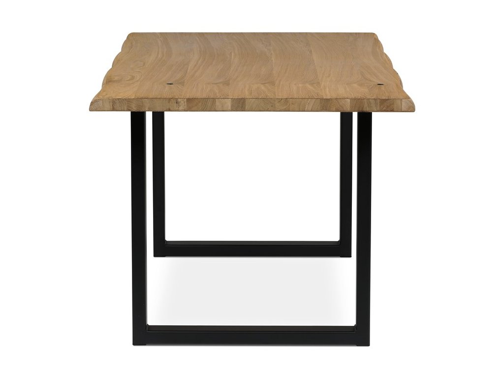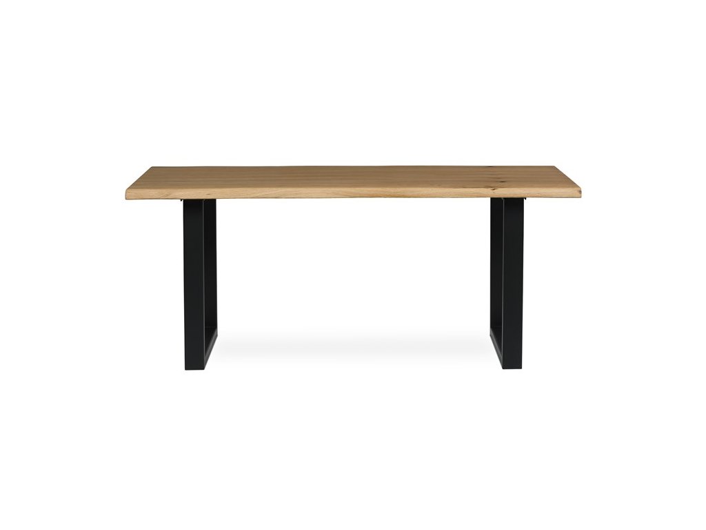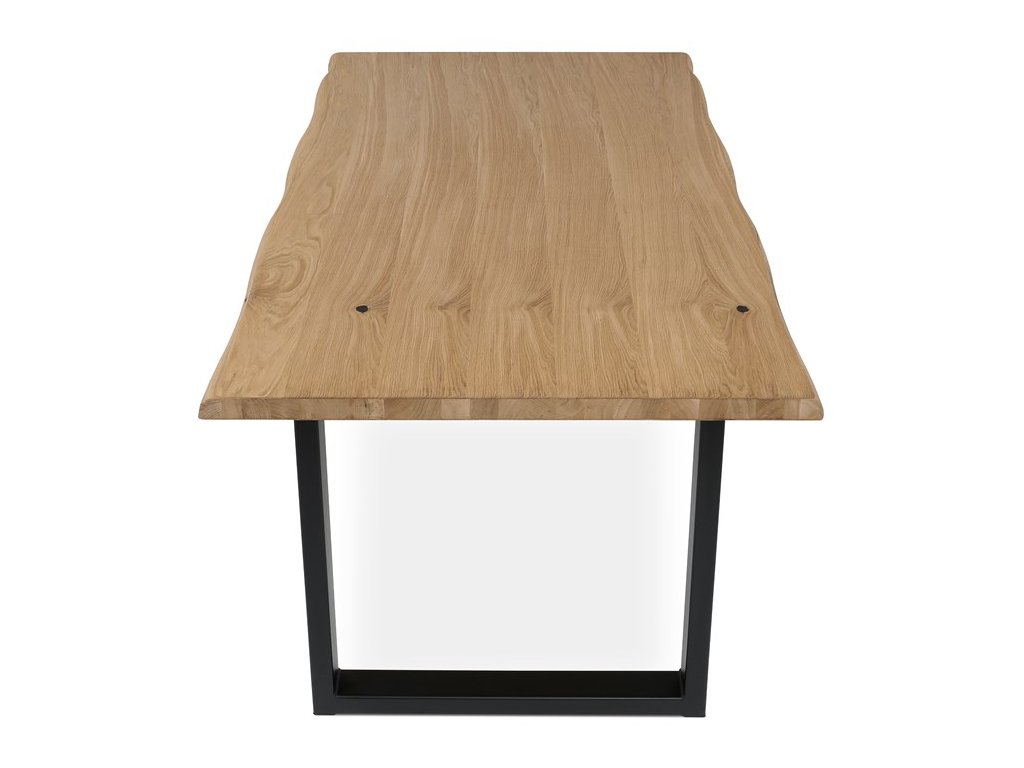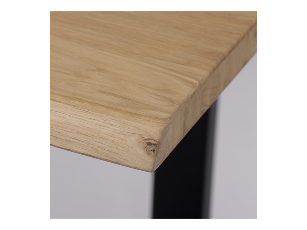 Jídelní stůl o rozměrech 180x90x75 cm je vyroben z masivního dubu s olejovaným povrchem, který zvýrazňuje přirozenou kresbu dřeva a zároveň usnadňuje údržbu. Masivní deska je pevná a stabilní, zajišťuje dlouhou životnost a odolnost proti běžnému opotřebení. Podnož tvoří robustní kovová konstrukce v černé barvě, která poskytuje vysokou stabilitu a moderní industriální vzhled. Stůl není rozkládací, což podtrhuje jeho jednoduchost a pevnost. Díky kombinaci přírodního dřeva a kovu se hodí do různých interiérů, kde oceníte kvalitu a nadčasový design.
