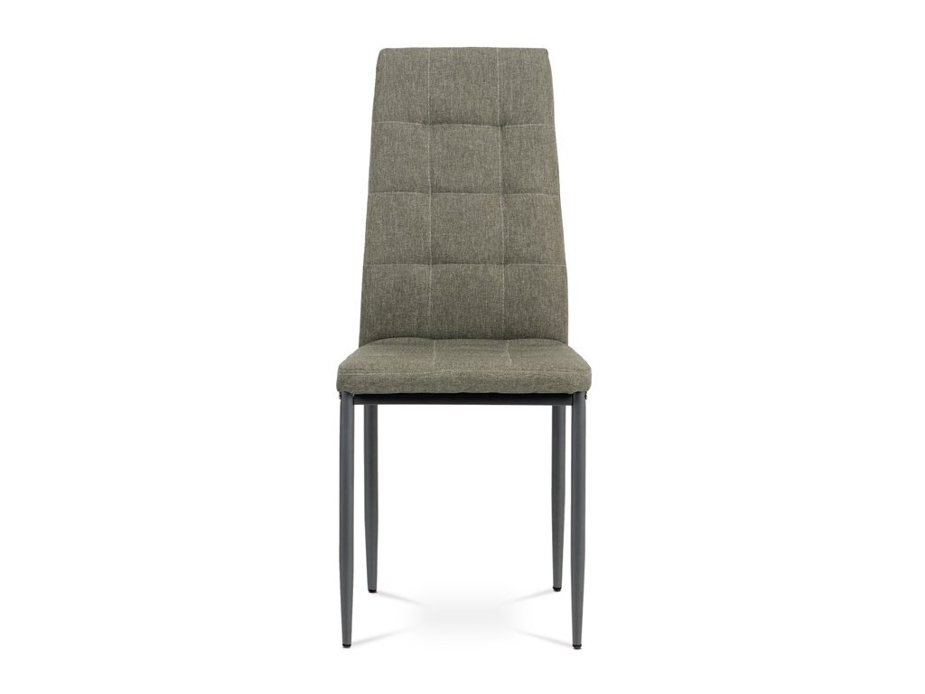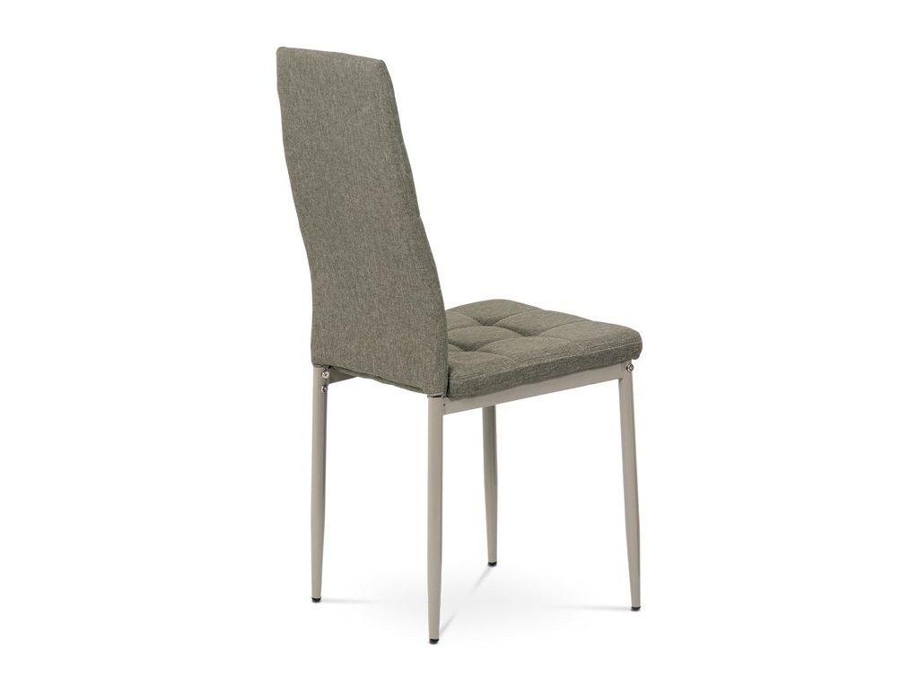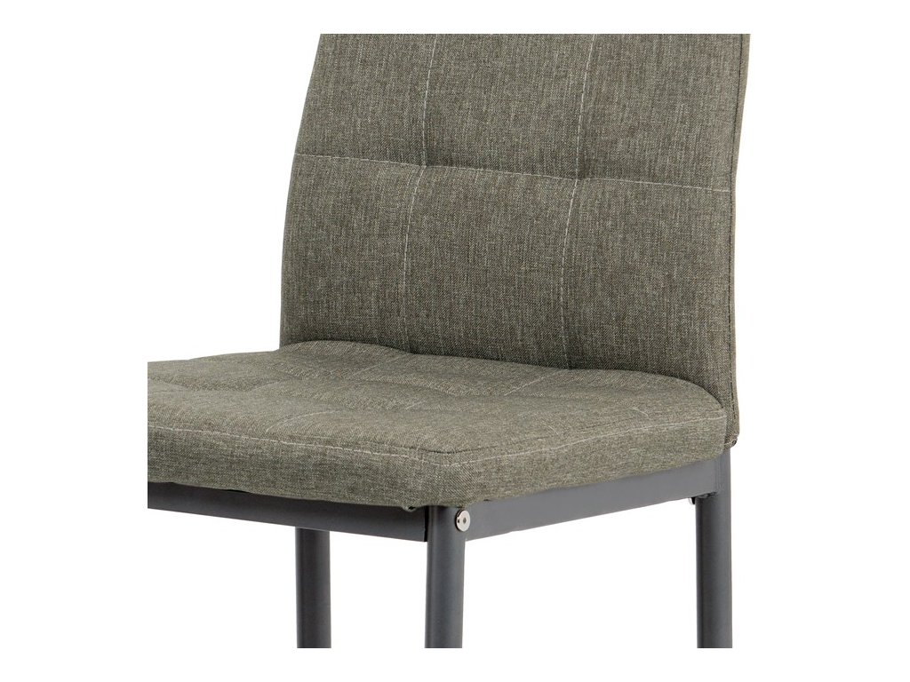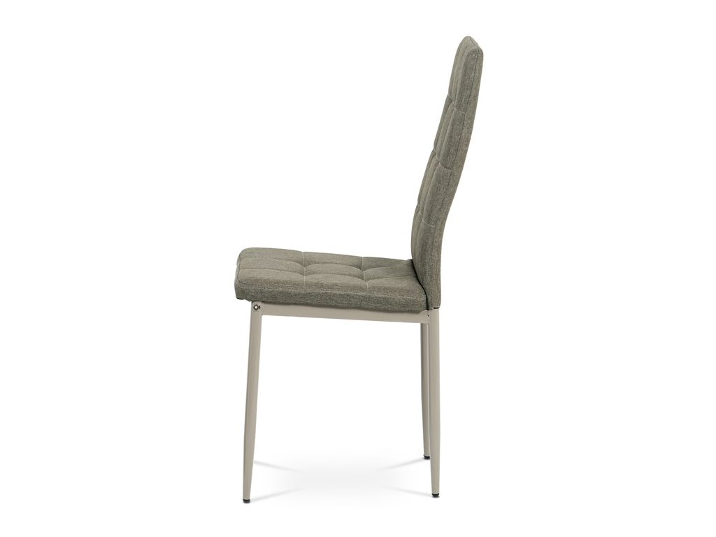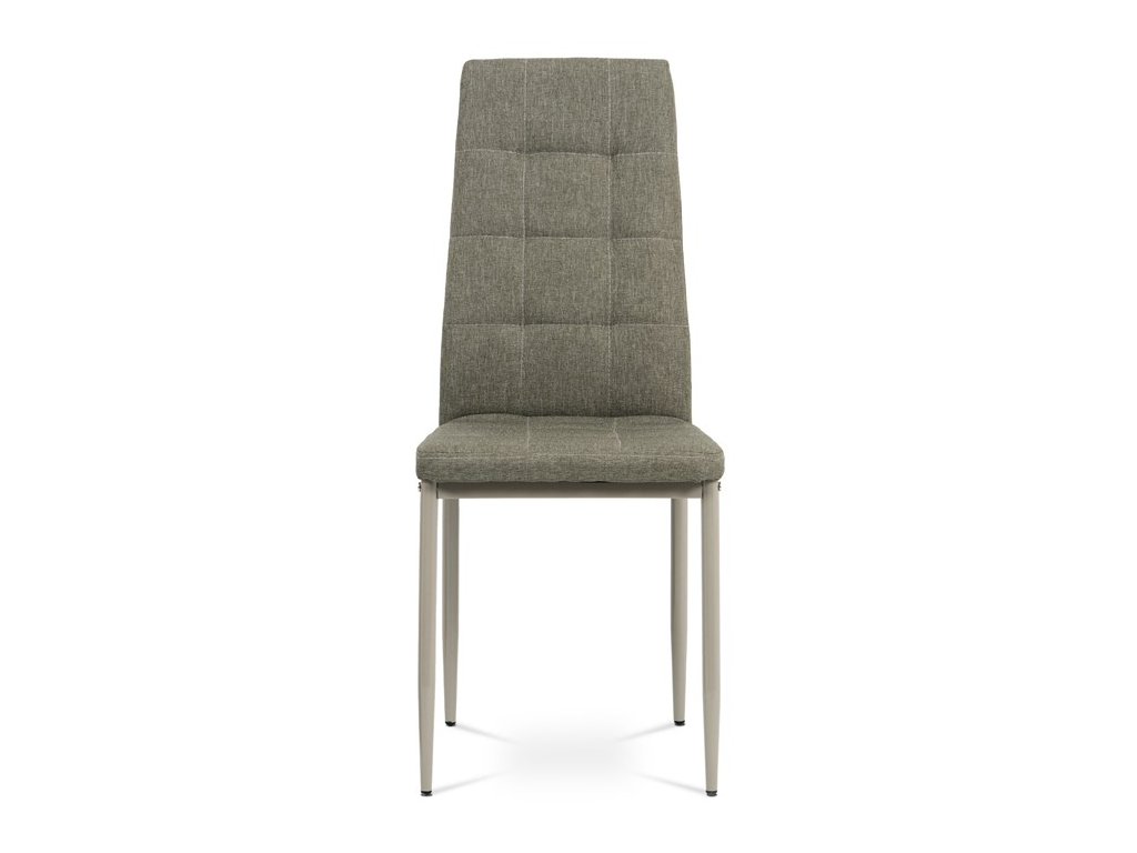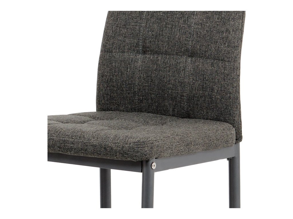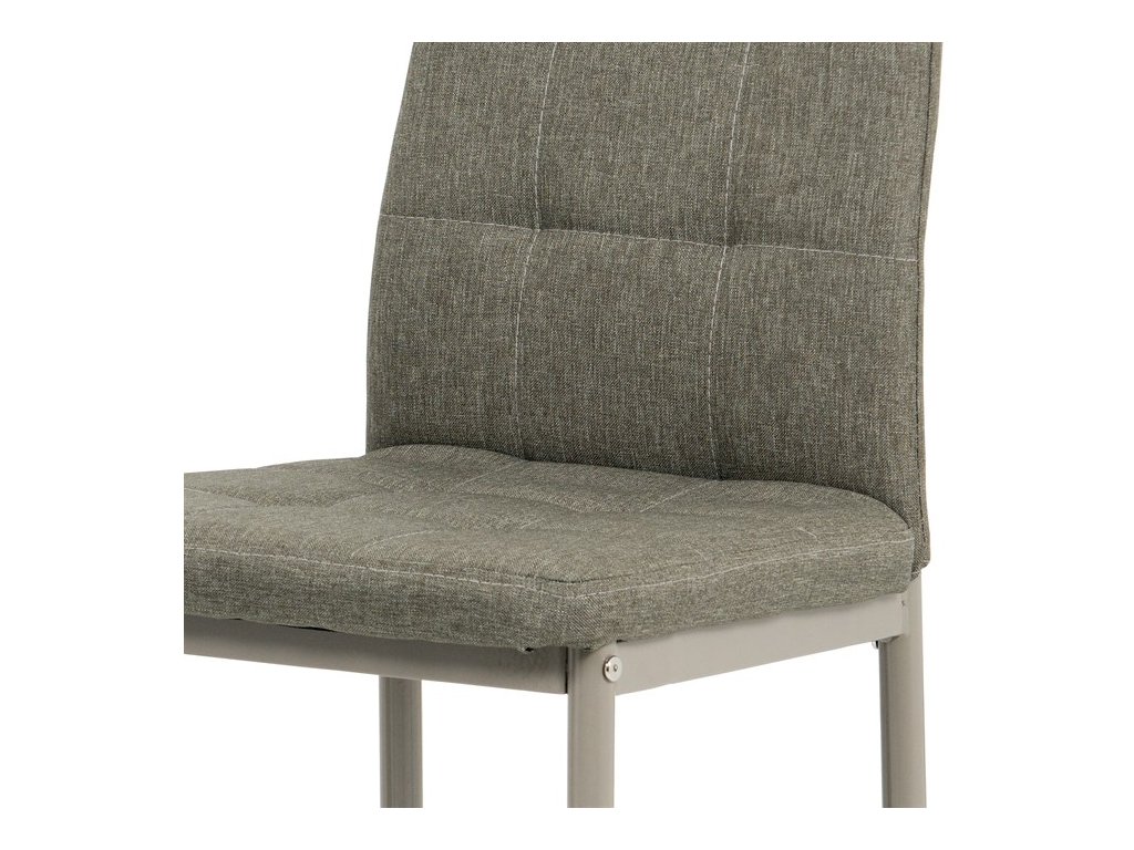 Jídelní židle v industriálním stylu a minimalistickém designu. Je potažena středně hrubou látkou v trendy odstínu dark cappuccino s výrazným čtvercovým prošitím s čalounickými vtahy sedáku i opěráku. Polstrování je z kvalitní PU pěny. Čtyřnohá podnož je kovová, s povrchovou úpravou cappuccino matnou práškovou barvou. Nohy jsou kruhového průřezu a kónické, na koncích jsou opatřeny černými plastovými kluzáky, které minimalizují nebezpečí poškození povrchu podlahy na minimum. Nosnost židle je až 110 kg. Tato židle najde platné využití v prostorách domácí jídelny či kuchyně.