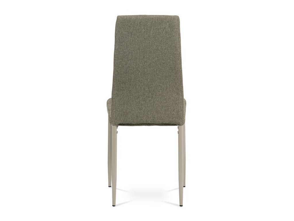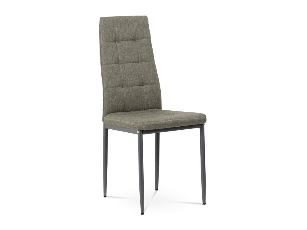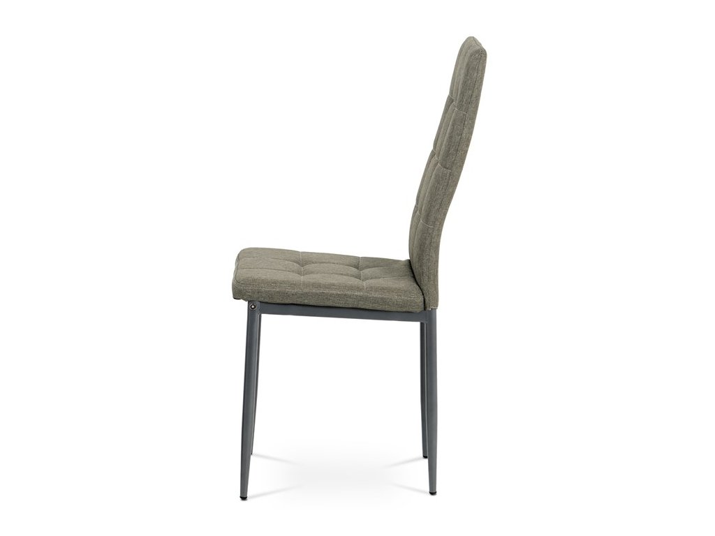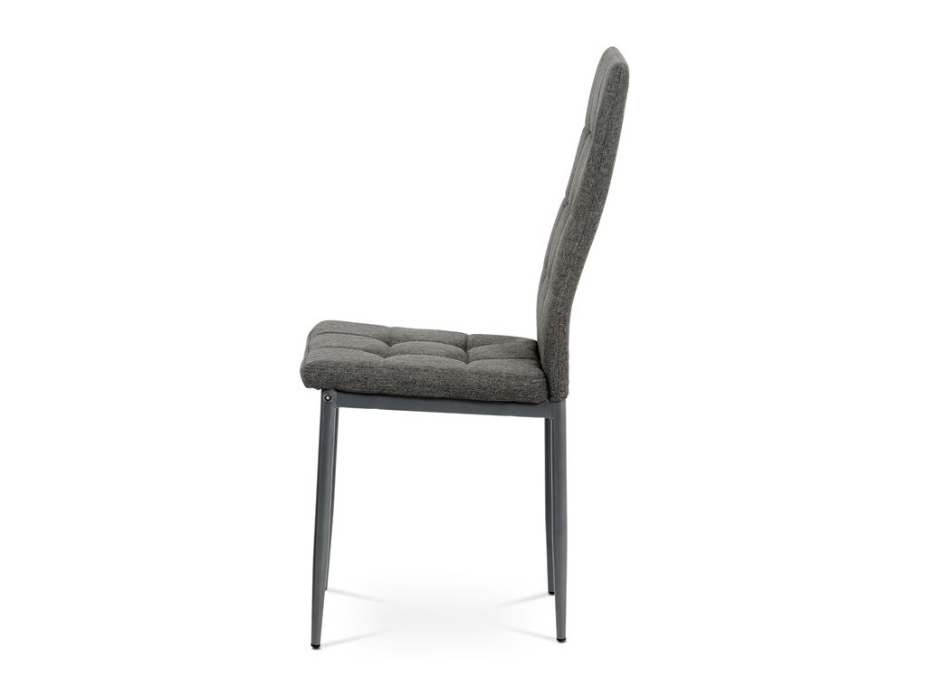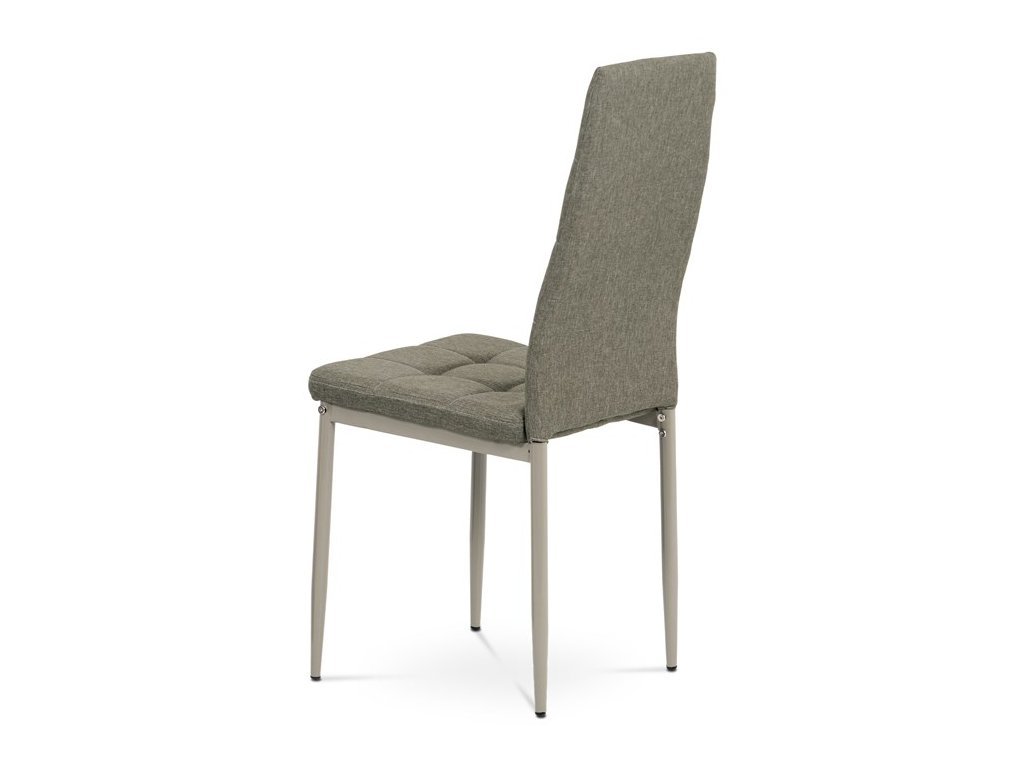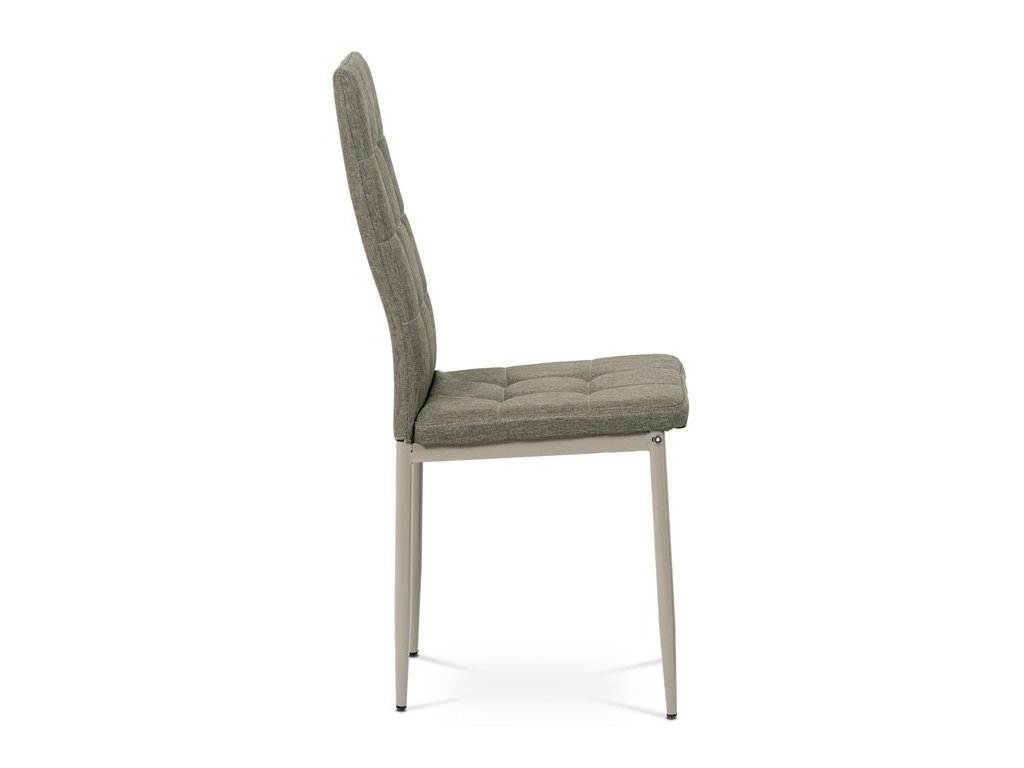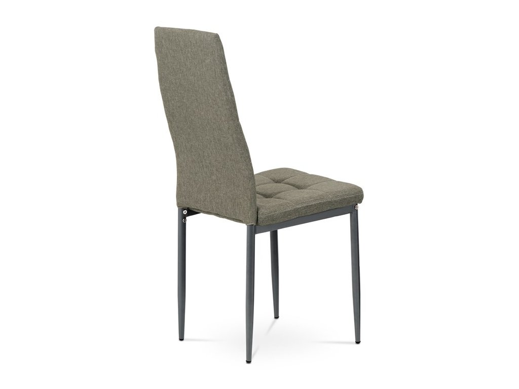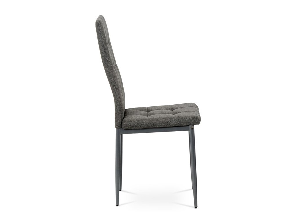 Jídelní židle v industriálním stylu a minimalistickém designu. Je potažena středně hrubou látkou v trendy odstínu dark cappuccino s výrazným čtvercovým prošitím s čalounickými vtahy sedáku i opěráku. Polstrování je z kvalitní PU pěny. Čtyřnohá podnož je kovová, s povrchovou úpravou cappuccino matnou práškovou barvou. Nohy jsou kruhového průřezu a kónické, na koncích jsou opatřeny černými plastovými kluzáky, které minimalizují nebezpečí poškození povrchu podlahy na minimum. Nosnost židle je až 110 kg. Tato židle najde platné využití v prostorách domácí jídelny či kuchyně.