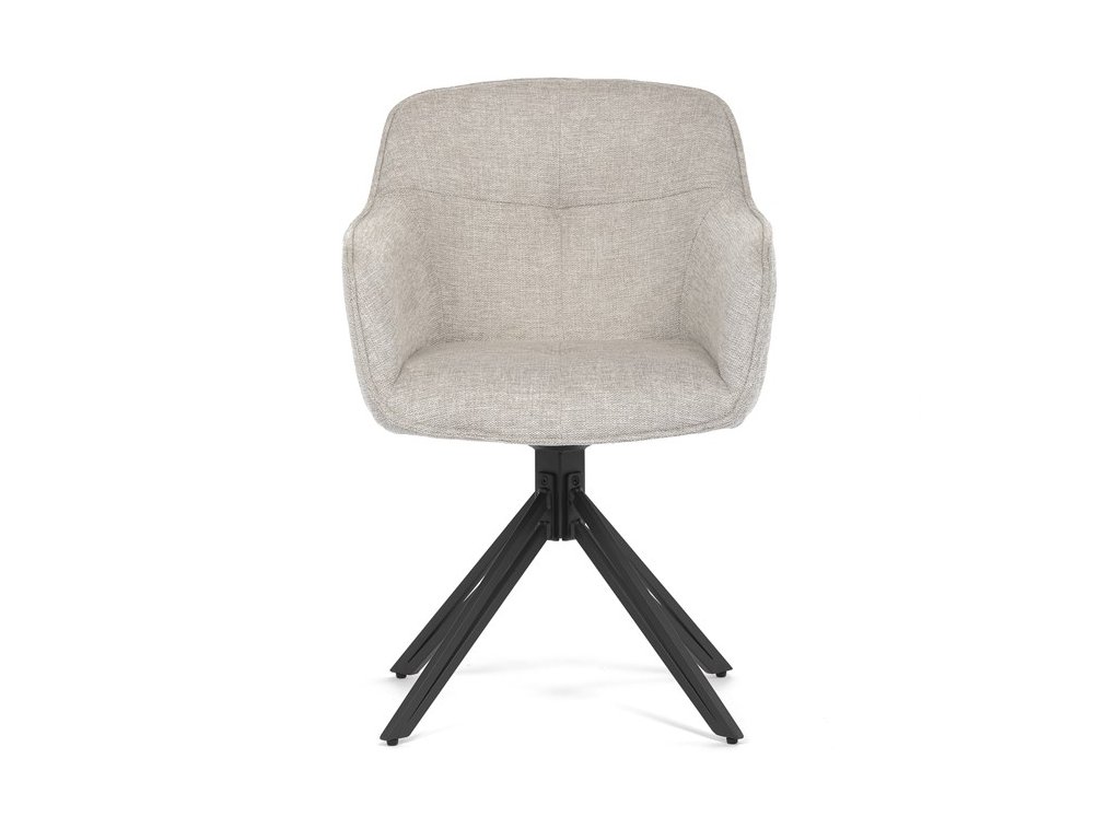 Jídelní a konferenční židle skořepinové konstrukce v zajímavém designu a ve velmi žádaném industriálním / loft stylu. Židle disponuje otočnou funkcí L90°/P90° s automaticky vratným mechanismem. Konstrukce sedáku i opěradla má pevnou kovovou kostru, potah je z jemně hrubé látky v béžovém odstínu. Polstrování je z pevné PU pěny, na sedáku v hustotě 28 kg/m3 a na opěradle 24 kg/m3. K pohodlí posedu poslouží nejen bohaté polstrování, ale i praktické a pohodlné opěrky rukou. Příjemný dekorativní prvky tvoří centrální čalounický vtah na opěradle a z vnější strany kosočtvercové prošívání. Nedílnou součástí je široká látková paspule v barvě židle, lemující celý obvod. Stabilitu zajišťuje designovaná čtyřnohá podnož s centrálním uchycením skořepiny. Konstrukce jednotlivých paprsků nohou je čtvercového průřezu, odlehčena středovým průzorem. Povrchová úprava je kvalitním práškovým nástřikem v černé matné barvě. Podnož židle je rektifikovatelná, na každém paprsku nohy je výškově nastavitelný kluzák s plastovým krytem. Ten zamezí možnosti poškození tvrdých podlah. Tento model je dobrou volbou pro Váš výběr do jídelních nebo obývacích prostor, hodí se i jako konferenční židle, kde ale musíte oželit možnosti jejího otáčení. Nosnost je do 120 kg, Základní rozměry – celková šíře 57 cm, celková hloubka 58 cm, celková výška 84 cm a výška sedu 50 cm. Montáž není složitá, zvládne ji i méně zručný nový majitel této židle.
