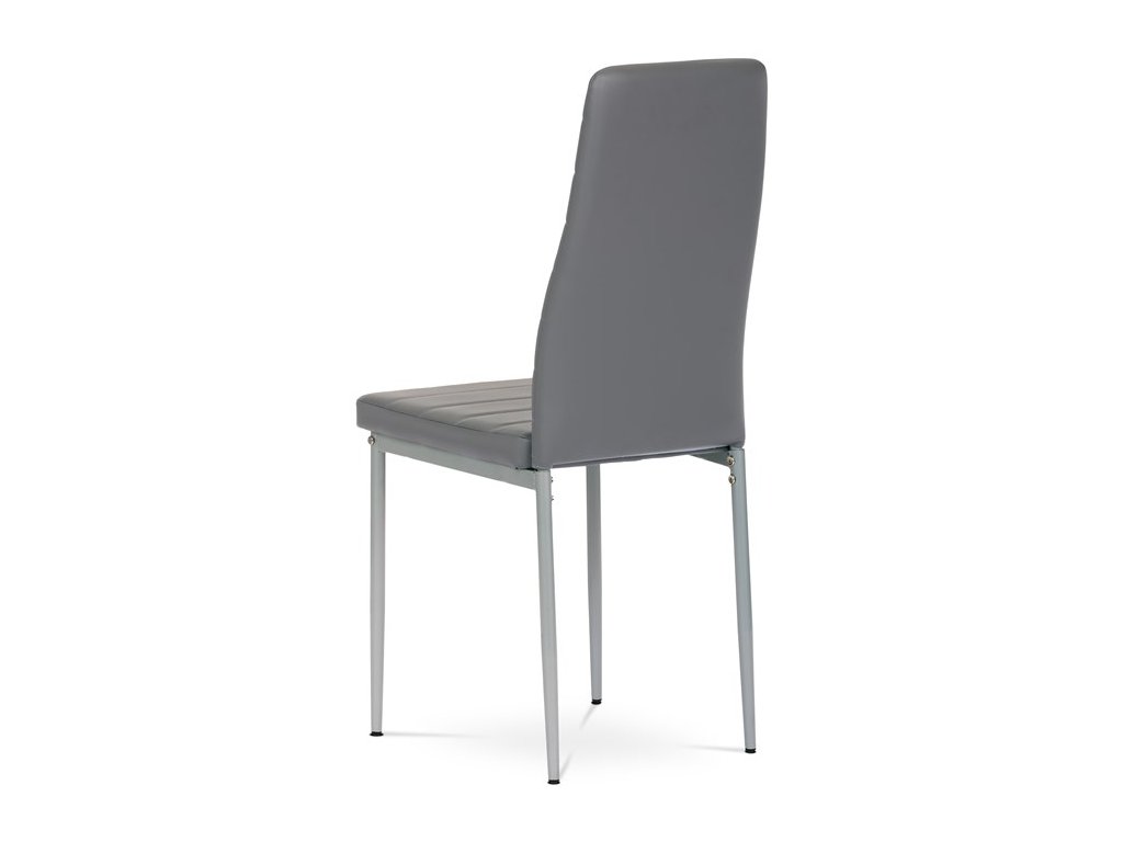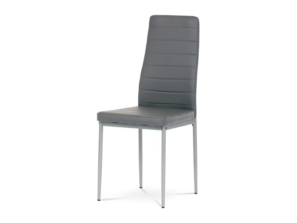 Tato jídelní židle je dokonalým přídavkem do vaší moderně zařízené kuchyně či jídelny. Prémiová černá eko kůže dotváří exkluzivní vzhled a zároveň zajišťuje pohodlí při každodenním posezení. Ekologická kůže je snadno udržovatelná a odolná vůči poškrábání, což ji činí ideální volbou pro rodiny s dětmi nebo domácnosti s mazlíčky. Šedé kovové nohy dodávají židli elegantní vzhled a zajišťují stabilitu na jakém koliv povrchu. Nosnost jídelní židle činí 120 kg.