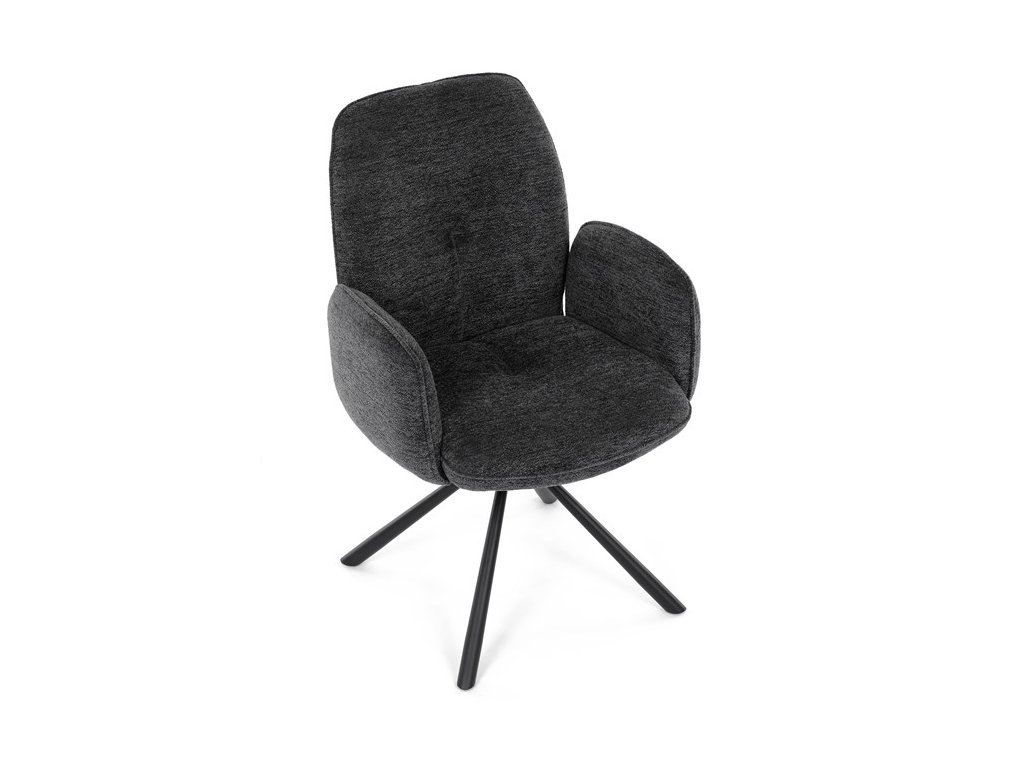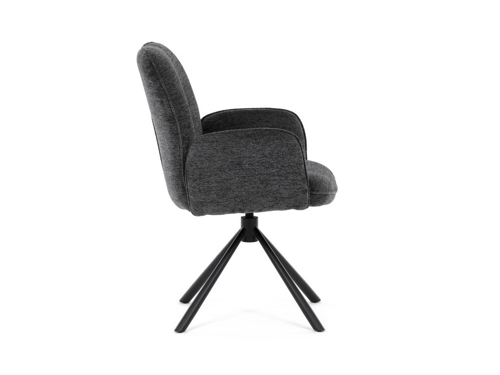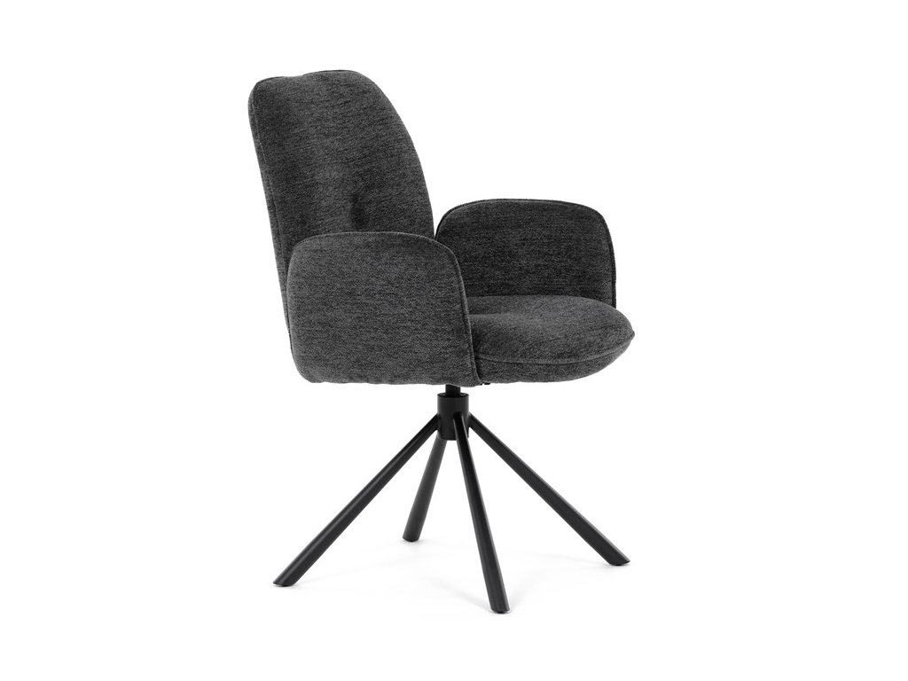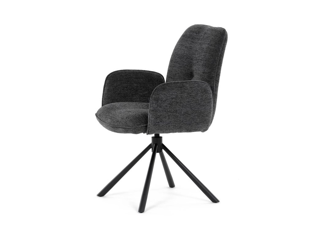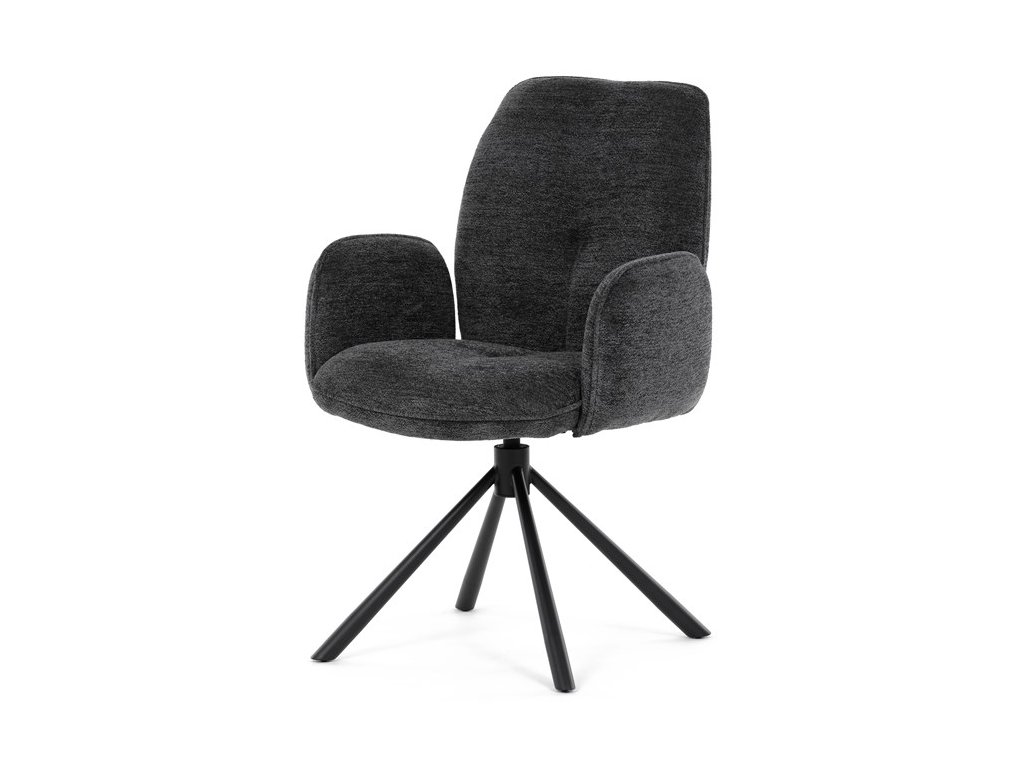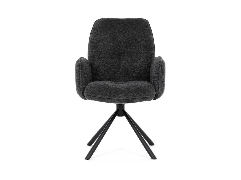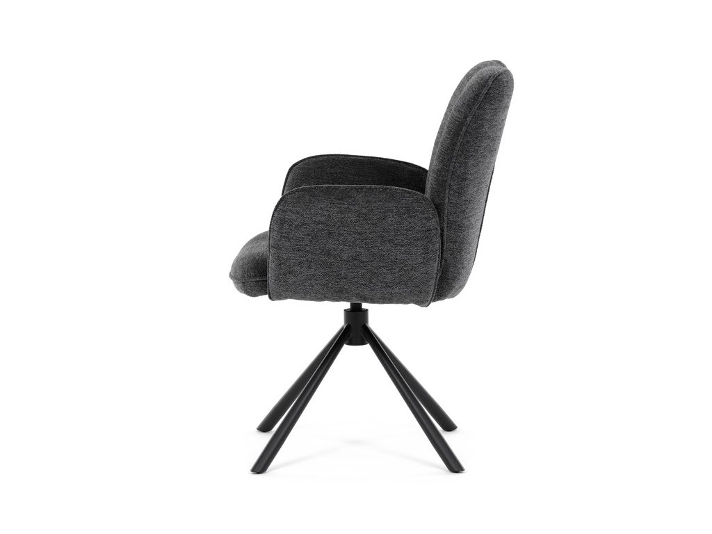 Elegantní jídelní židle značky Autronic v industriálním stylu přináší maximální pohodlí a moderní design. Čalounění z hladké látky v antracitovém odstínu je nejen stylové, ale i příjemné na dotek. Stabilní kovová podnož v černé barvě dodává židli pevnost a odolnost. Díky otočnému 360° mechanismu nabízí vysokou flexibilitu a komfort při sezení. Pohodlné područky a ergonomicky tvarovaný sedák z PU pěny zajišťují optimální oporu těla. Perfektní volba pro stylové a funkční jídelní prostory.