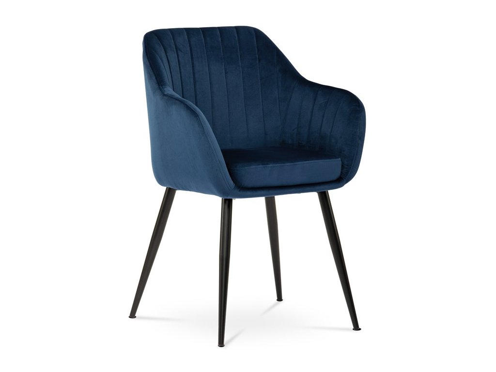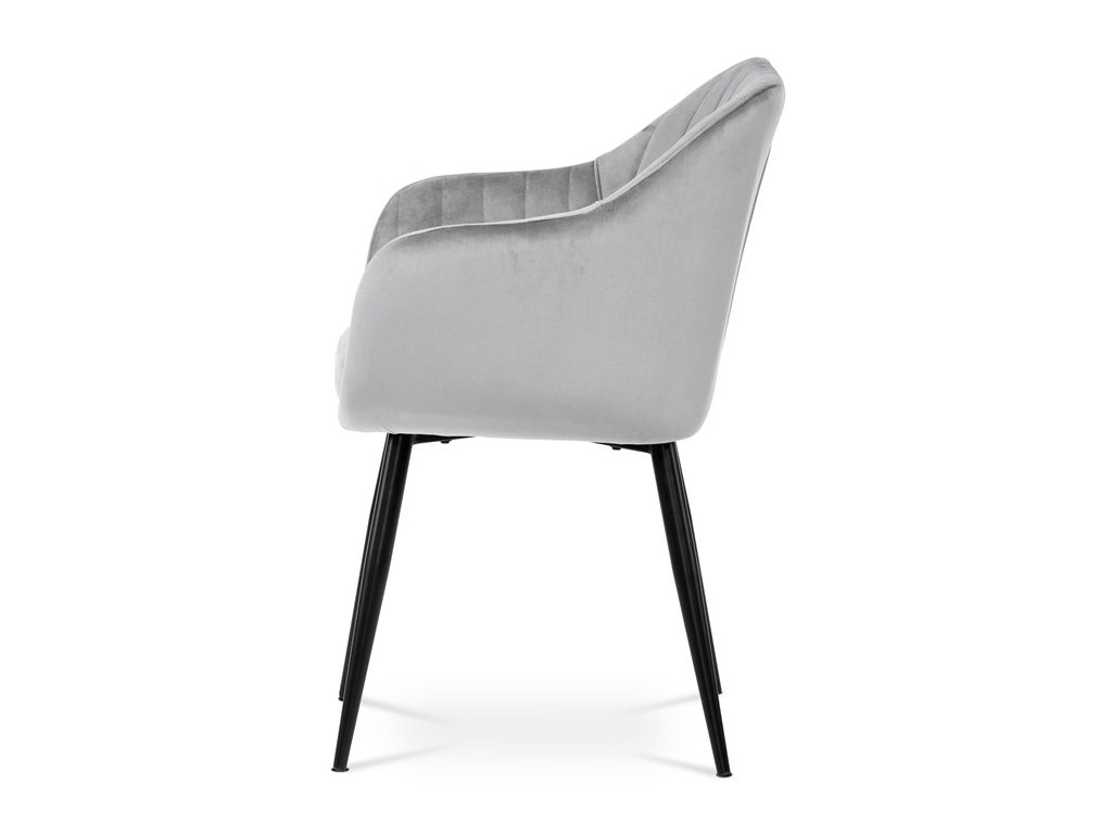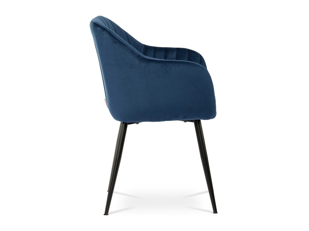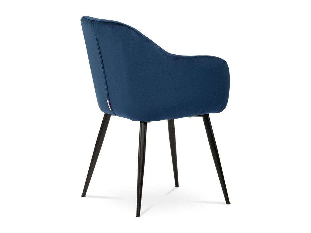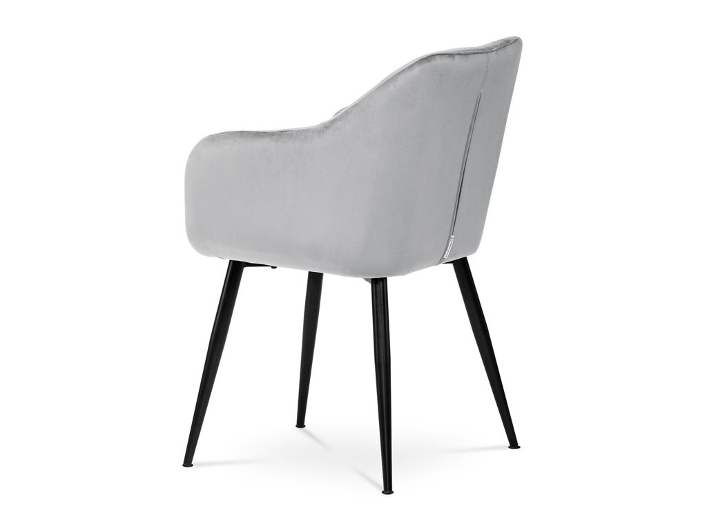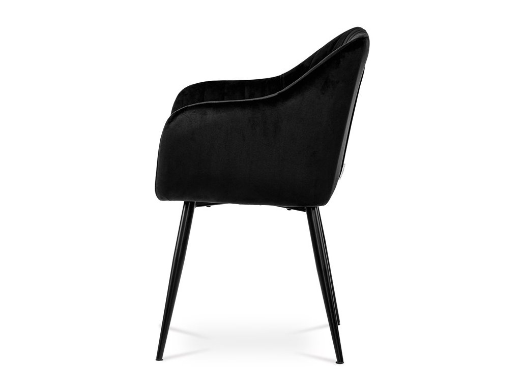 Dokonalý design, industriální styl a perfektní pohodlí je pro tuto židli samozřejmostí. Skořepina sedáku i opěradla má pevnou kovovou kostru, potah z velmi kvalitní sametové látky v matném provedení a nadčasovém a luxusním odstínu černé. Polstrování je z PU pěny. Bonusem ke zvýšení pohodlí posedu je 8 cm zvýšený a extra polstrovaný sedák a praktické pohodlné opěrky s opěrnou plochou ve výšce 69 cm od podlahy. Příjemný dekorativní prvek vytvářejí svislá prošití vnitřních částí opěradla i boků. Použitá látka je velmi odolná a perfektně se čistí. Stabilitu židle zajišťují čtyři kónické kovové nohy s kvalitním práškovým nástřikem v černé matné barvě. Ukončené jsou černými plastovými kluzáky, zabraňující poškození tvrdých povrchů podlah. Nohy mají kruhový průřez o průměru od 2 do 3,5 cm v horní části. Všechna tato plus produkují z tohoto modelu skvělou volbu pro Váš výběr zařízení jídelních a nebo obývacích prostor, ale skvěle se hodí i jako konferenční židle do zasedacích místností. Nosnost židle je až 120 kg. Základní rozměry jsou – celková šíře 58 cm, celková hloubka 57 cm, celková výška 84 cm, výška sedu 52 cm a hloubka sedu 43 cm.