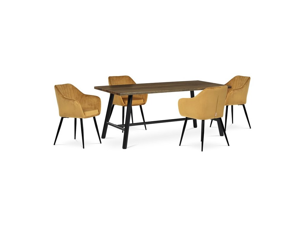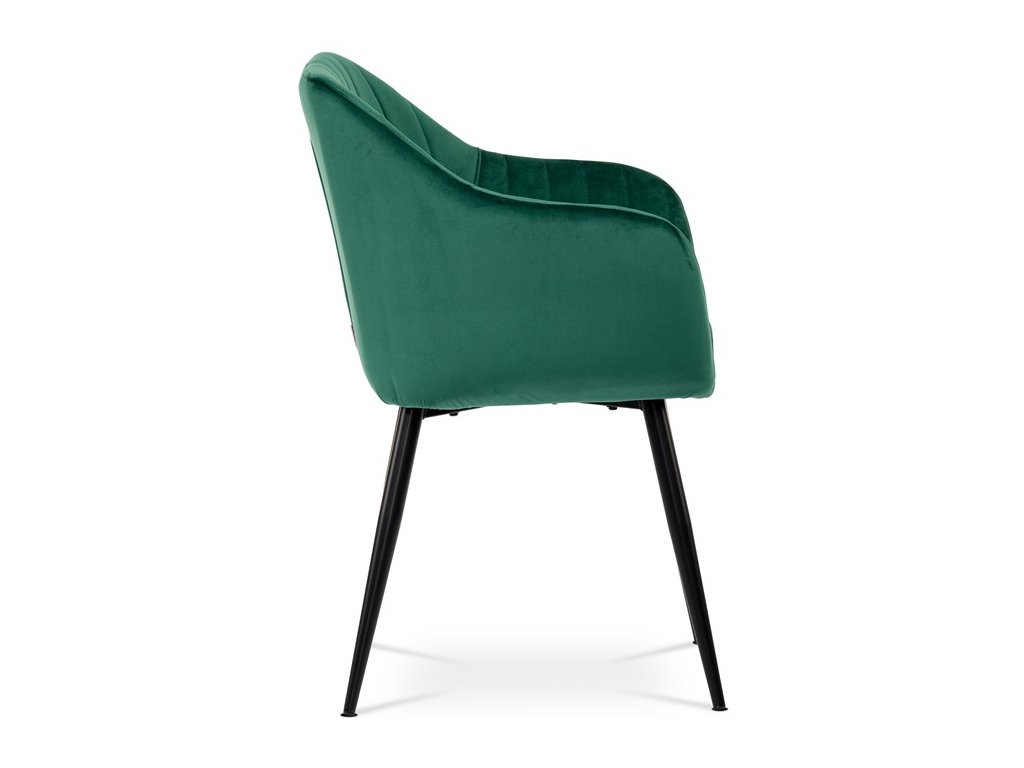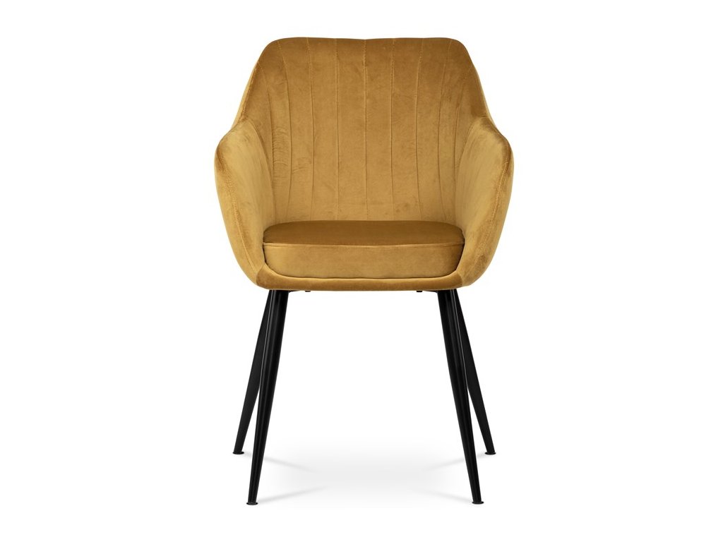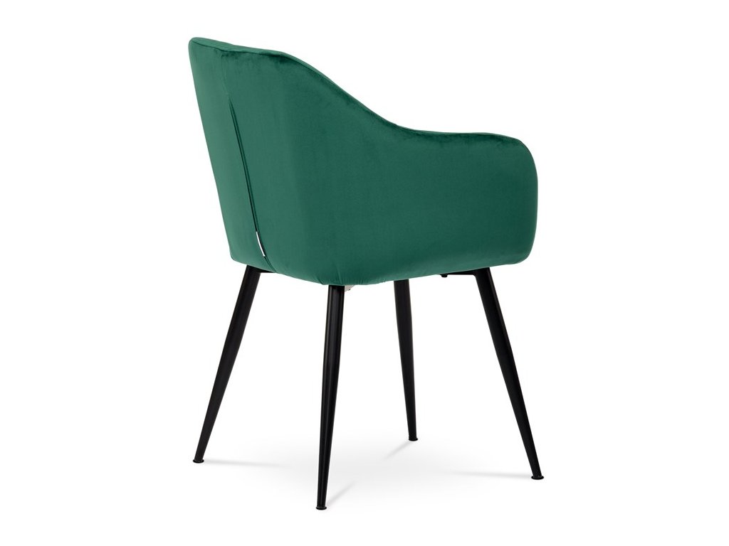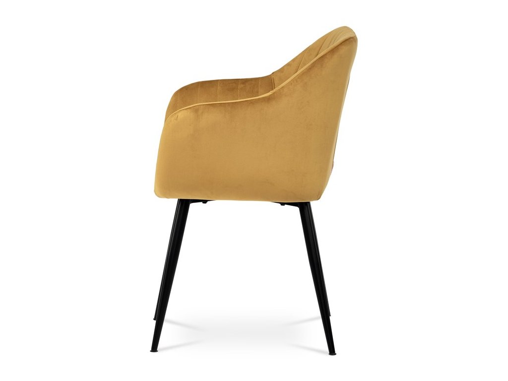 Dokonalý design, industriální styl a perfektní pohodlí je pro tuto židli samozřejmostí. Skořepina sedáku i opěradla má pevnou kovovou kostru, potah z velmi kvalitní sametové látky v matném provedení a nadčasovém a luxusním odstínu černé. Polstrování je z PU pěny. Bonusem ke zvýšení pohodlí posedu je 8 cm zvýšený a extra polstrovaný sedák a praktické pohodlné opěrky s opěrnou plochou ve výšce 69 cm od podlahy. Příjemný dekorativní prvek vytvářejí svislá prošití vnitřních částí opěradla i boků. Použitá látka je velmi odolná a perfektně se čistí. Stabilitu židle zajišťují čtyři kónické kovové nohy s kvalitním práškovým nástřikem v černé matné barvě. Ukončené jsou černými plastovými kluzáky, zabraňující poškození tvrdých povrchů podlah. Nohy mají kruhový průřez o průměru od 2 do 3,5 cm v horní části. Všechna tato plus produkují z tohoto modelu skvělou volbu pro Váš výběr zařízení jídelních a nebo obývacích prostor, ale skvěle se hodí i jako konferenční židle do zasedacích místností. Nosnost židle je až 120 kg. Základní rozměry jsou – celková šíře 58 cm, celková hloubka 57 cm, celková výška 84 cm, výška sedu 52 cm a hloubka sedu 43 cm.