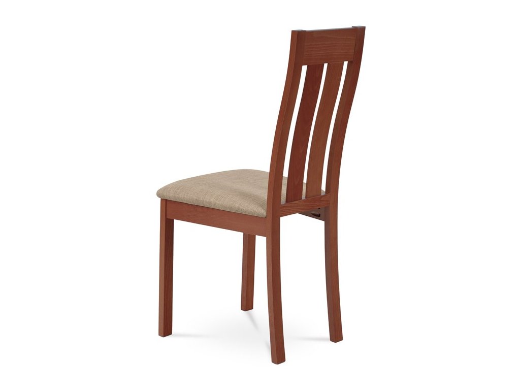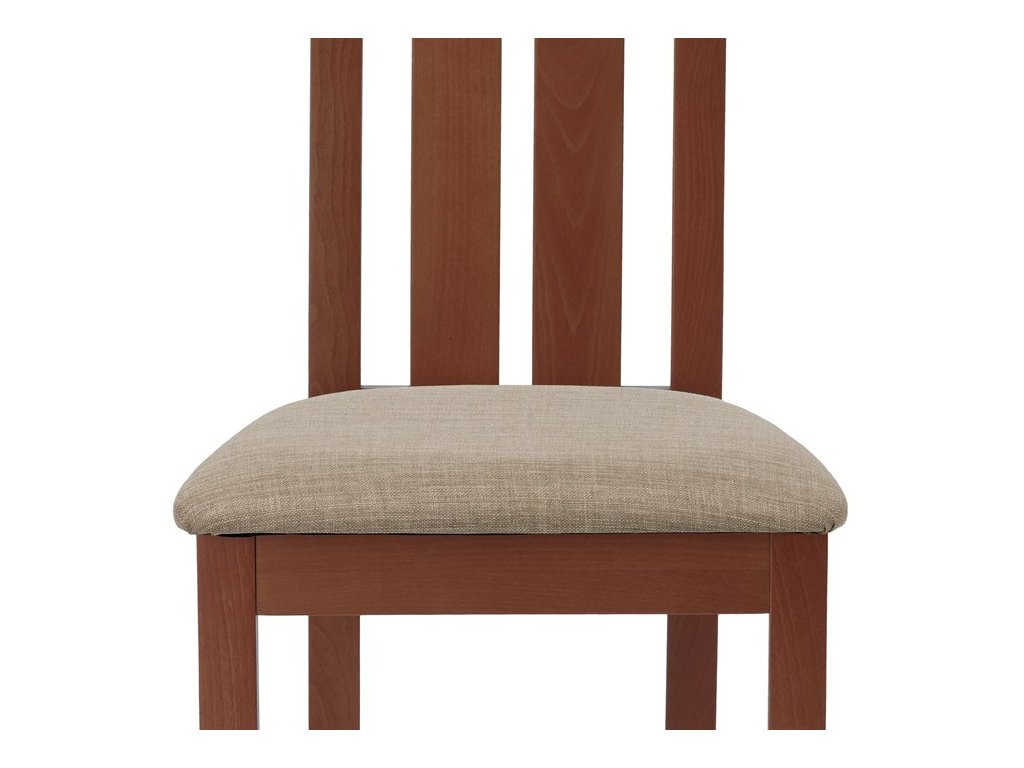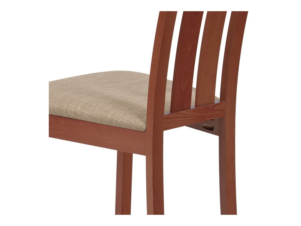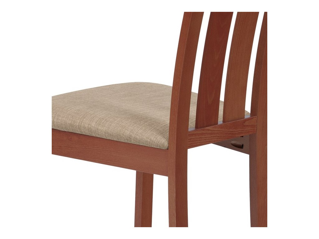 Jídelní židle BC-2602 TR3 je vyrobena z masivního buku v barvě třešeň, která dodává interiéru teplý a přírodní vzhled. Pevná masivní konstrukce zajišťuje stabilitu a dlouhou životnost, zatímco ergonomicky tvarované opěradlo svisle rozdělené do tří částí poskytuje pohodlnou oporu zad. Sedák je čalouněný béžovou látkou, která je příjemná na dotek a snadno se udržuje. Židle nemá područky ani otočný mechanismus, což ji činí ideální volbou pro jídelní prostory s omezeným prostorem. Díky kvalitnímu zpracování a přírodním materiálům je vhodná pro každodenní použití v domácnostech i komerčních provozech.