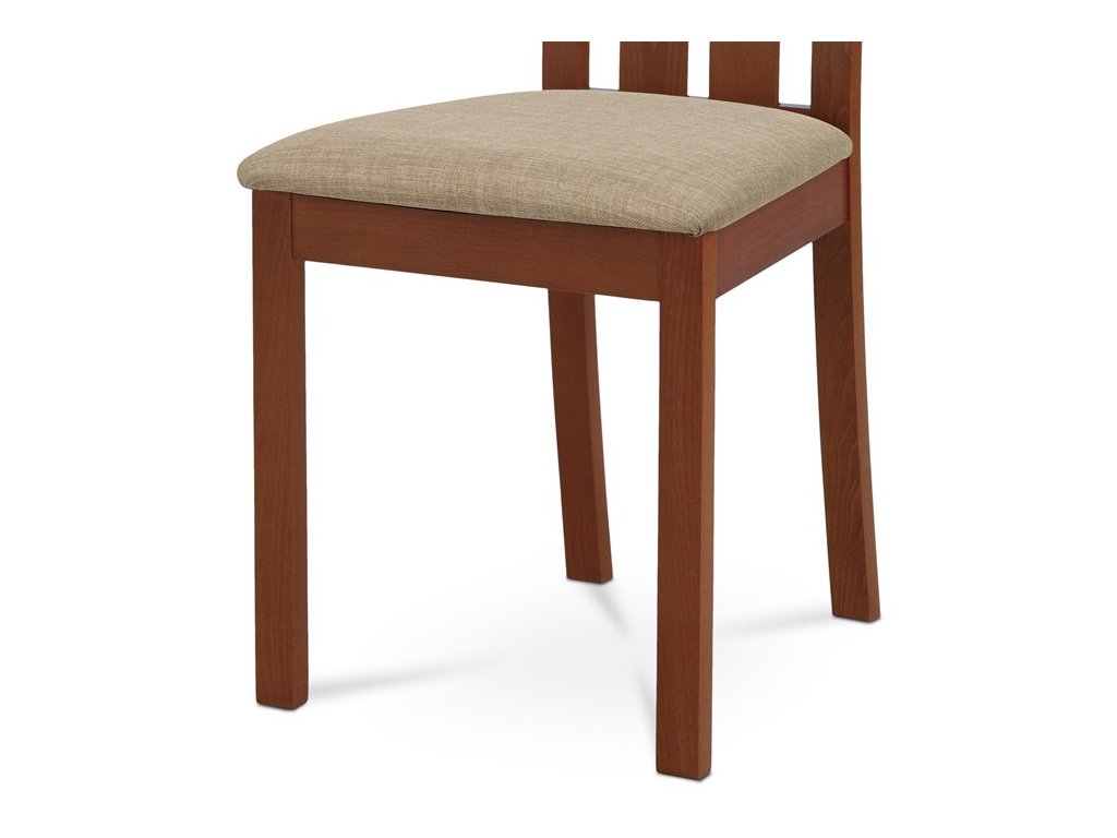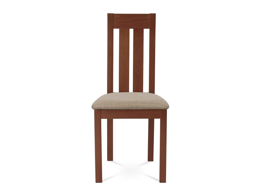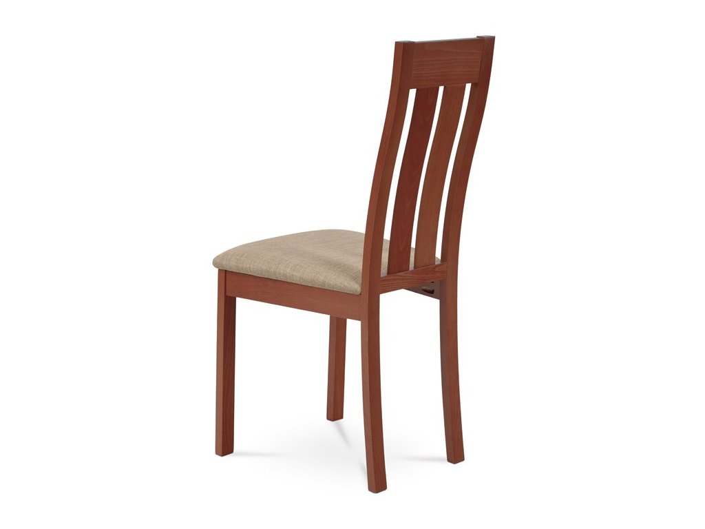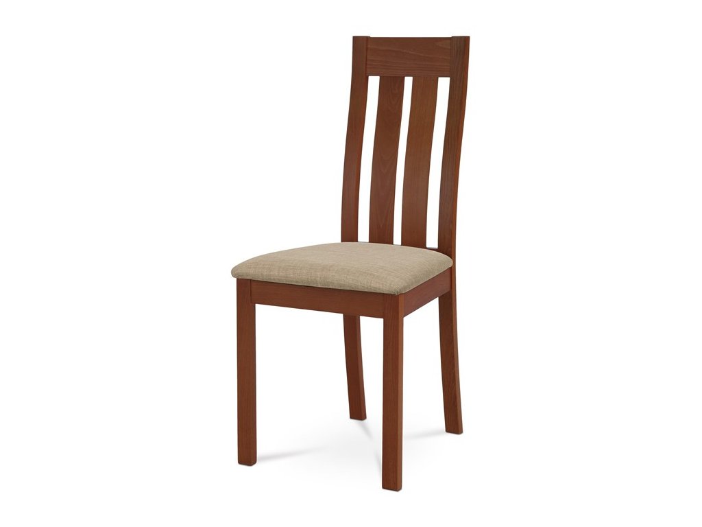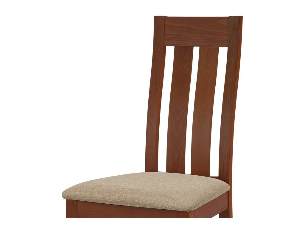 Jídelní židle BC-2602 TR3 je vyrobena z masivního buku v barvě třešeň, která dodává interiéru teplý a přírodní vzhled. Pevná masivní konstrukce zajišťuje stabilitu a dlouhou životnost, zatímco ergonomicky tvarované opěradlo svisle rozdělené do tří částí poskytuje pohodlnou oporu zad. Sedák je čalouněný béžovou látkou, která je příjemná na dotek a snadno se udržuje. Židle nemá područky ani otočný mechanismus, což ji činí ideální volbou pro jídelní prostory s omezeným prostorem. Díky kvalitnímu zpracování a přírodním materiálům je vhodná pro každodenní použití v domácnostech i komerčních provozech.