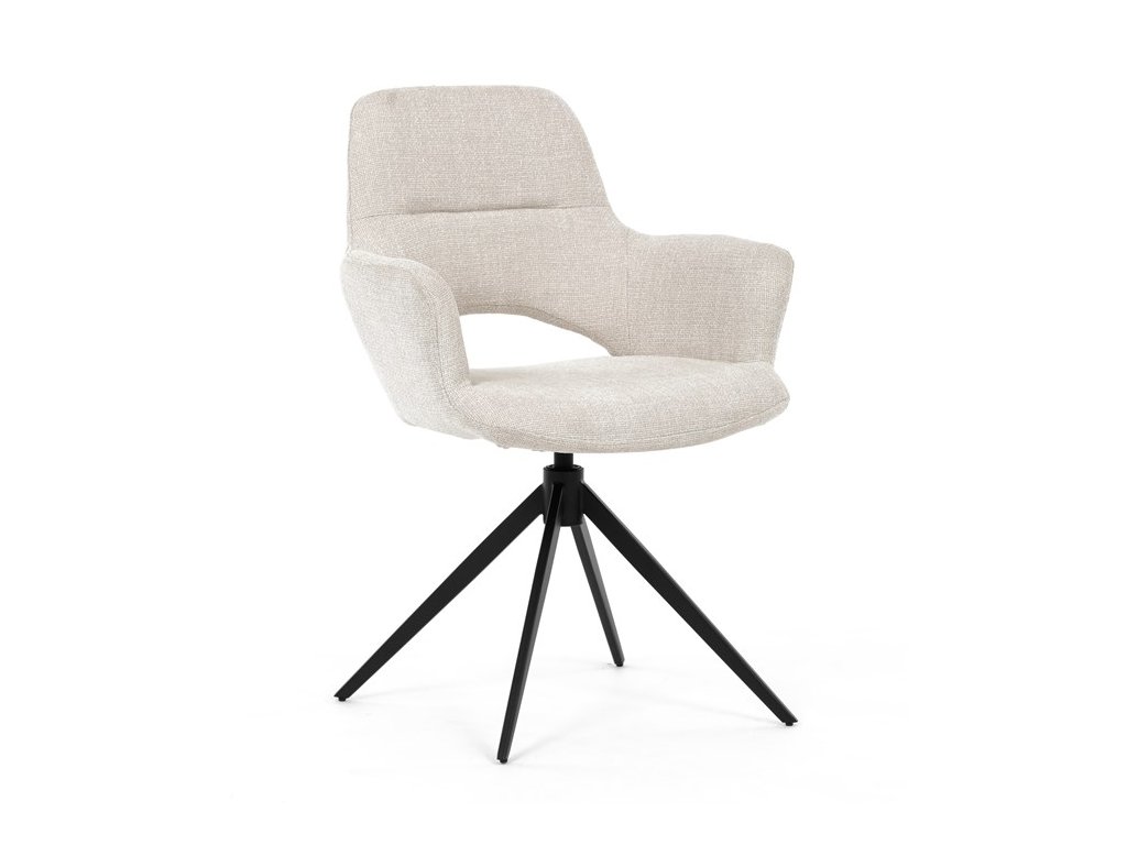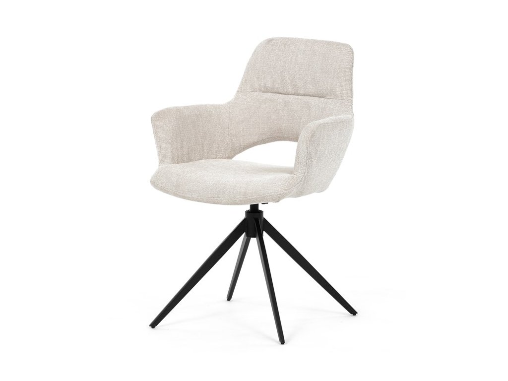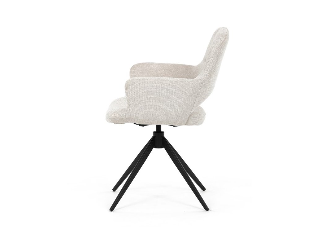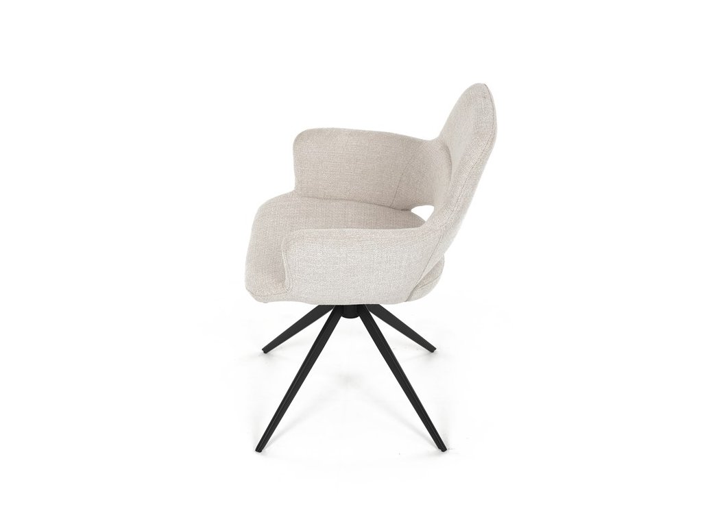 Elegantní jídelní židle značky Autronic v krémové barvě je ideální kombinací pohodlí a moderního designu. Čalounění z měkké látky s výplní z PU pěny zajišťuje komfortní sezení, zatímco černá kovová základna dodává židli stabilitu a stylový vzhled. Vratný otočný mechanismus 360° umožňuje snadné otáčení a automatické vrácení do původní polohy. Židle je vybavena praktickými područkami, které zvyšují pohodlí při sezení. Perfektní volba pro každou jídelnu, která hledá stylový a praktický doplněk.