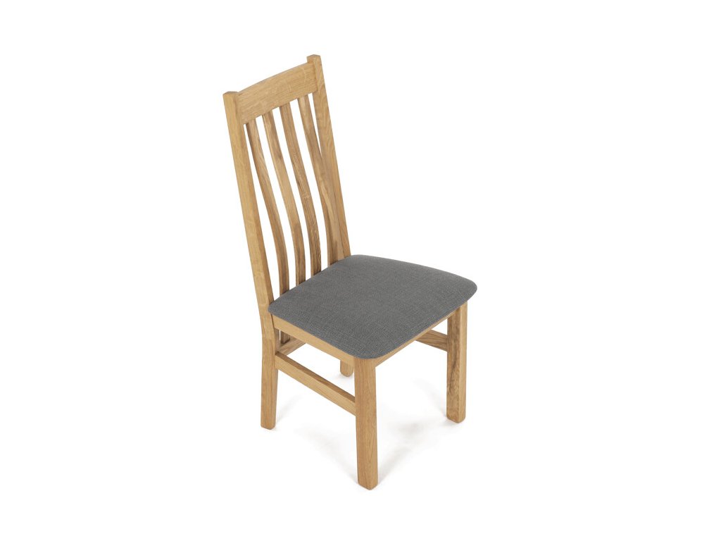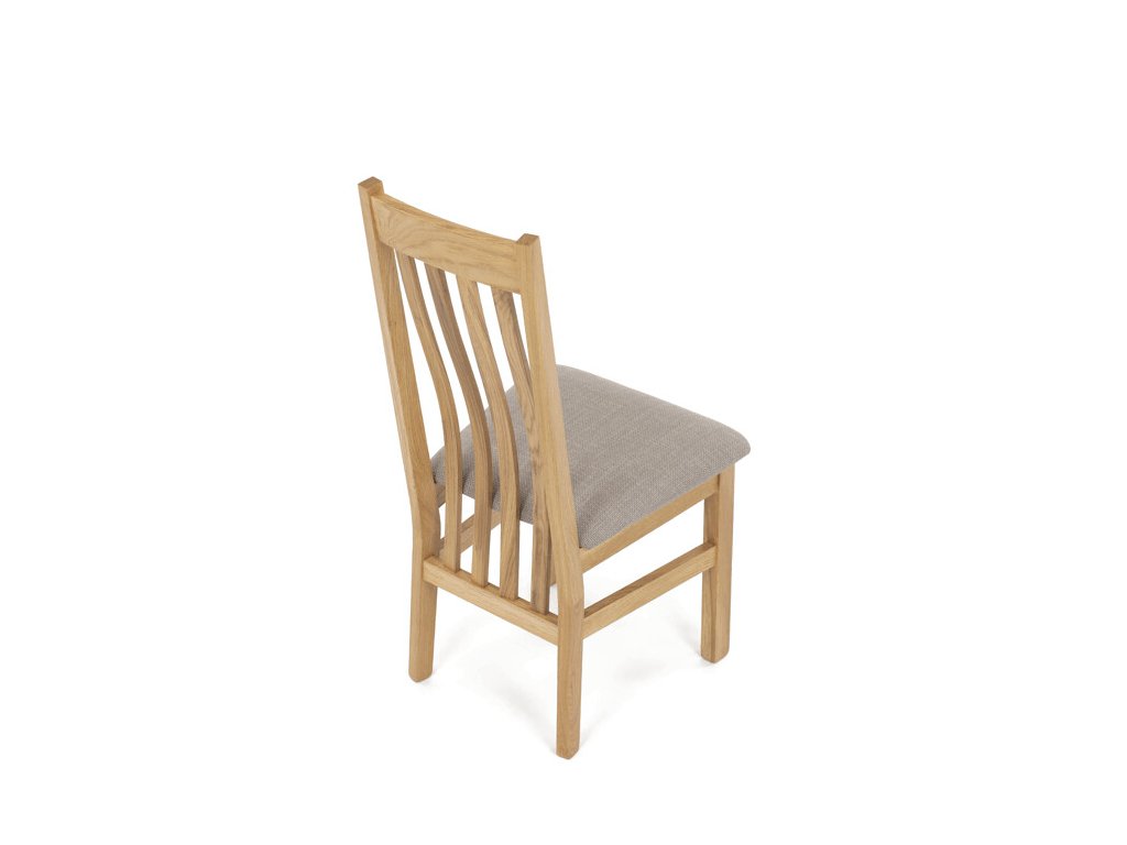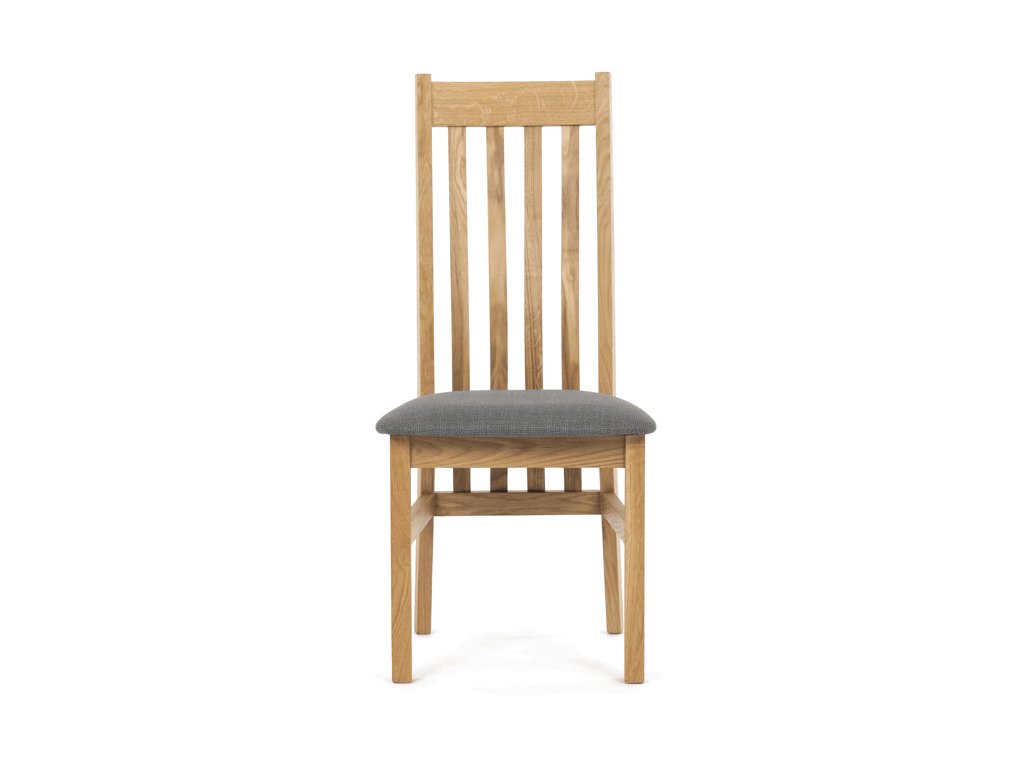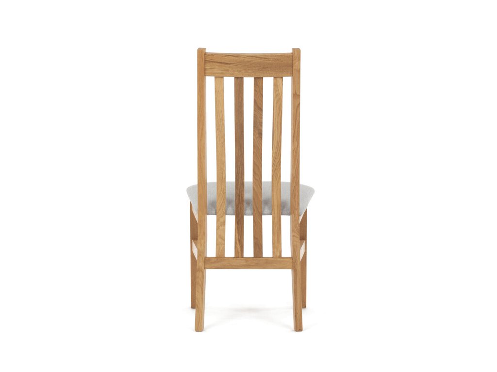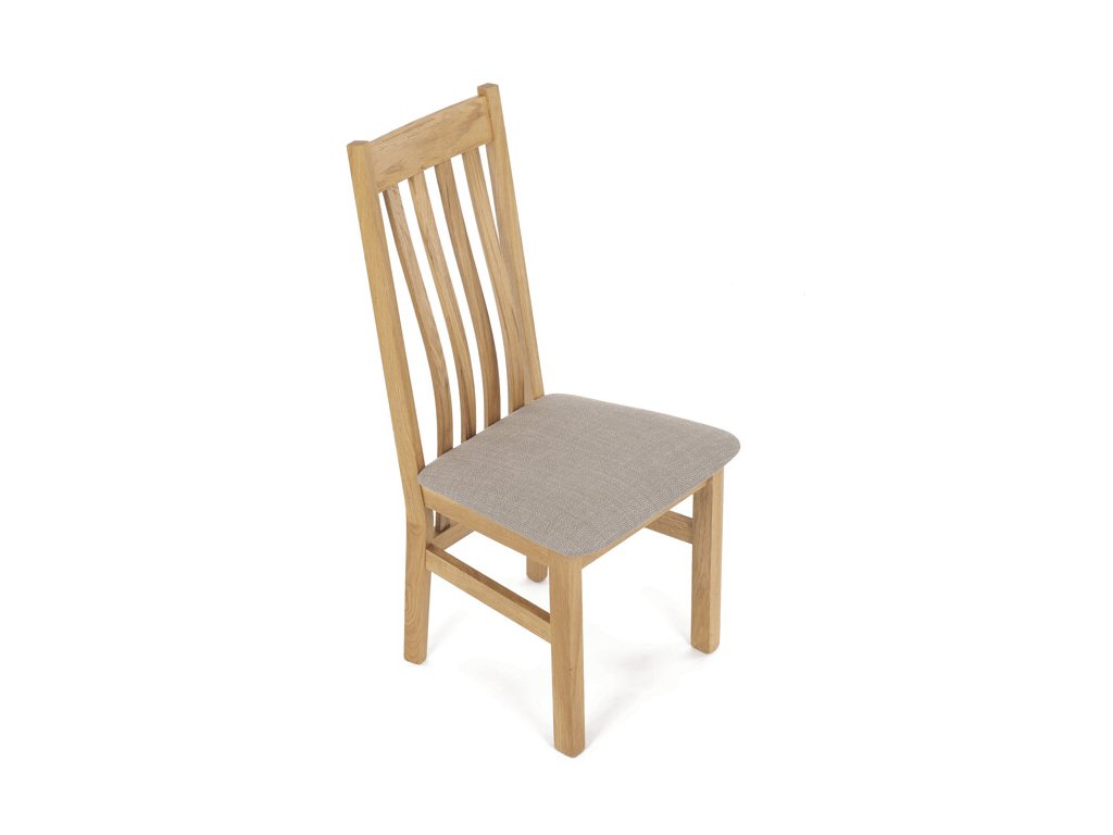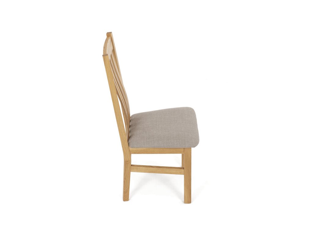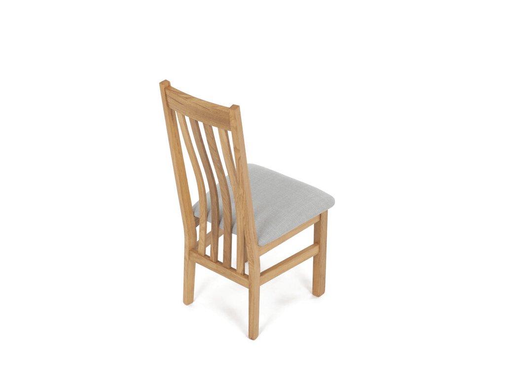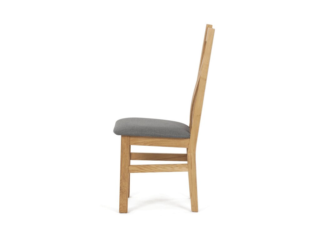 Jídelní židle z masivního dubu nabízí pevnou a stabilní konstrukci, která je navržena pro dlouhodobé používání. Vysoce ergonomicky tvarovaný opěrák svislých lamel poskytuje pohodlnou oporu zad a přispívá k lepšímu držení těla při sezení. Sedák je čalouněný hnědou látkou, která zajišťuje příjemný komfort a snadnou údržbu. Židle nemá područky ani otočný mechanismus, což ji činí vhodnou pro různé typy jídelních prostor. Přírodní odstíny dubového dřeva podtrhují tradiční i moderní styl interiéru.