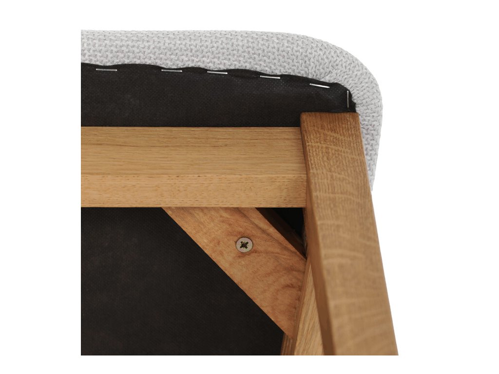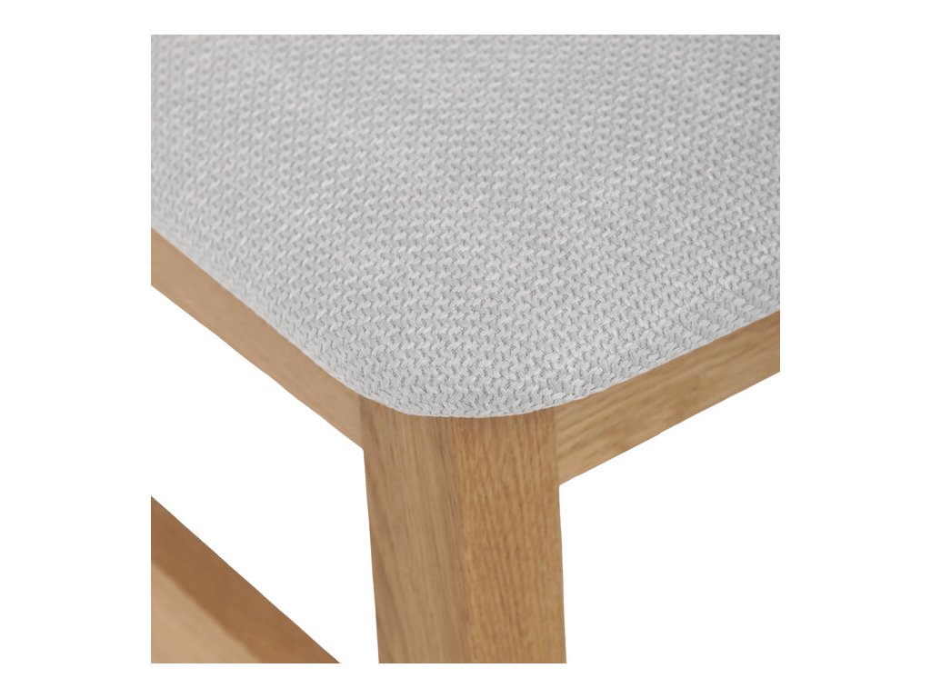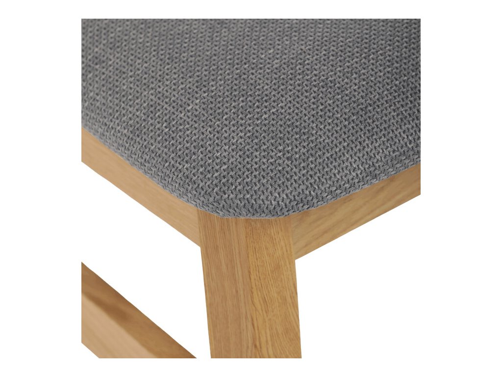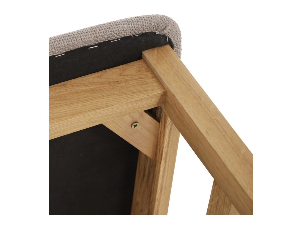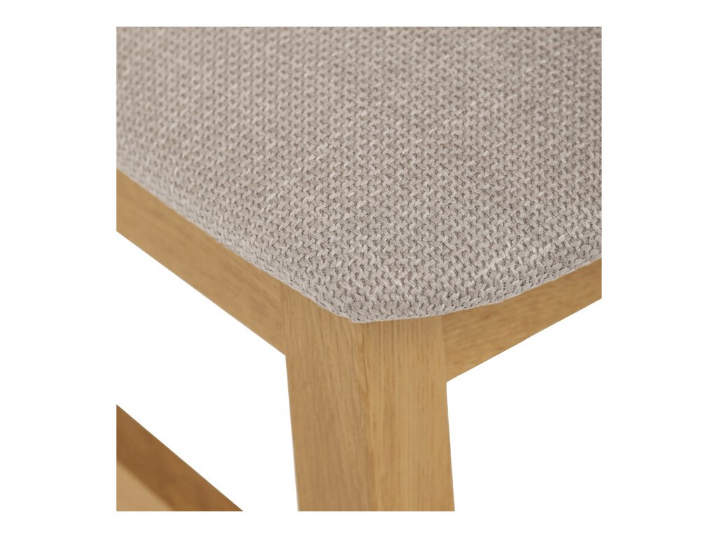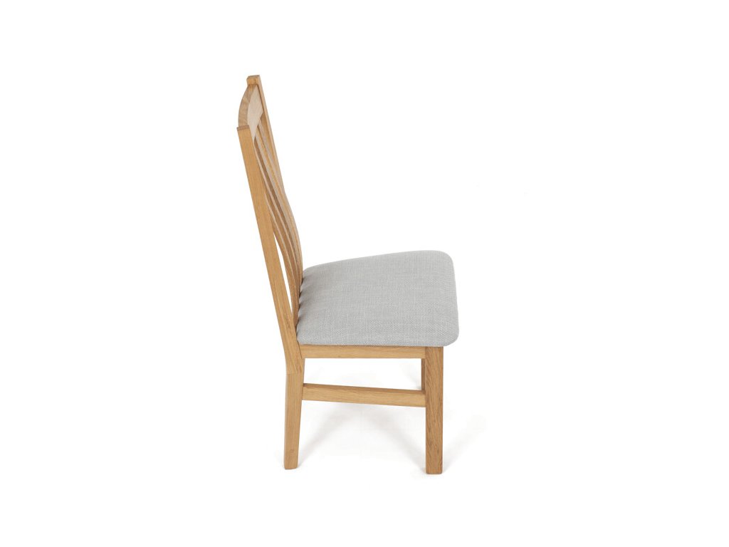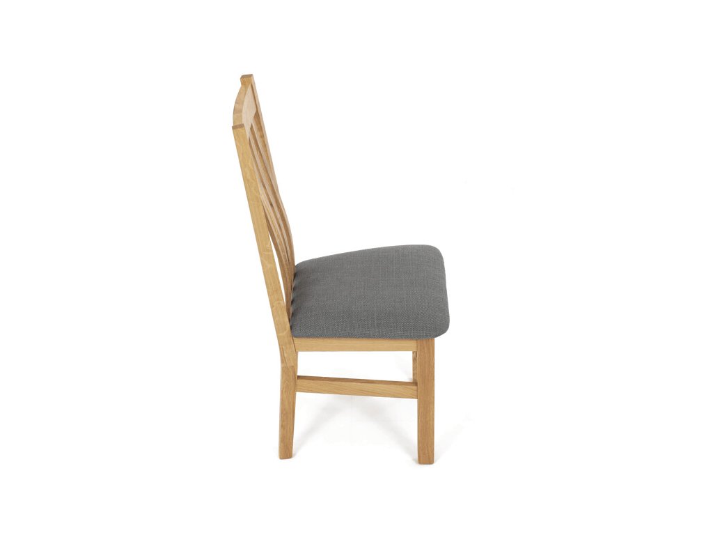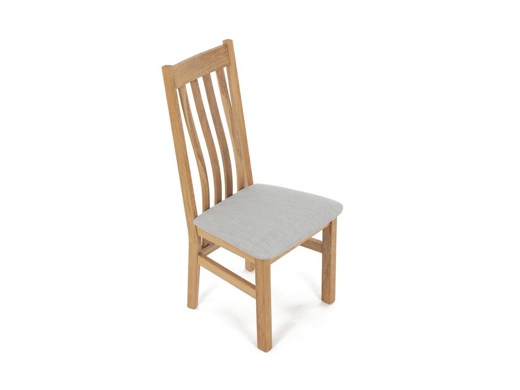 Jídelní židle z masivního dubu nabízí pevnou a stabilní konstrukci, která je navržena pro dlouhodobé používání. Vysoce ergonomicky tvarovaný opěrák svislých lamel poskytuje pohodlnou oporu zad a přispívá k lepšímu držení těla při sezení. Sedák je čalouněný hnědou látkou, která zajišťuje příjemný komfort a snadnou údržbu. Židle nemá područky ani otočný mechanismus, což ji činí vhodnou pro různé typy jídelních prostor. Přírodní odstíny dubového dřeva podtrhují tradiční i moderní styl interiéru.