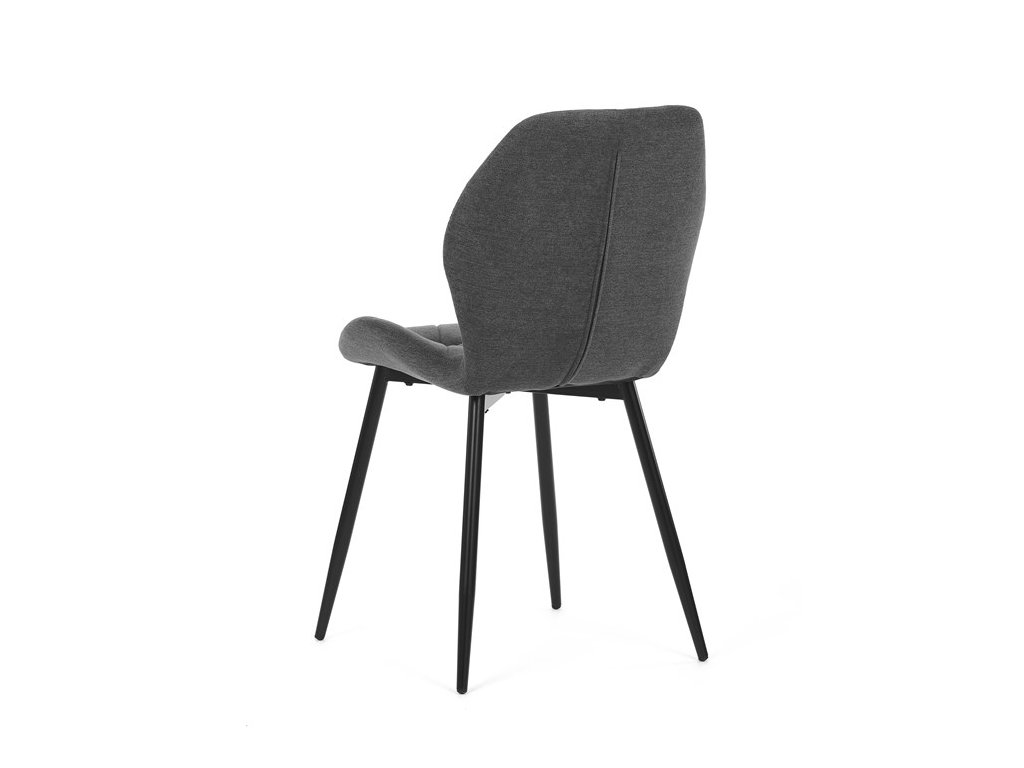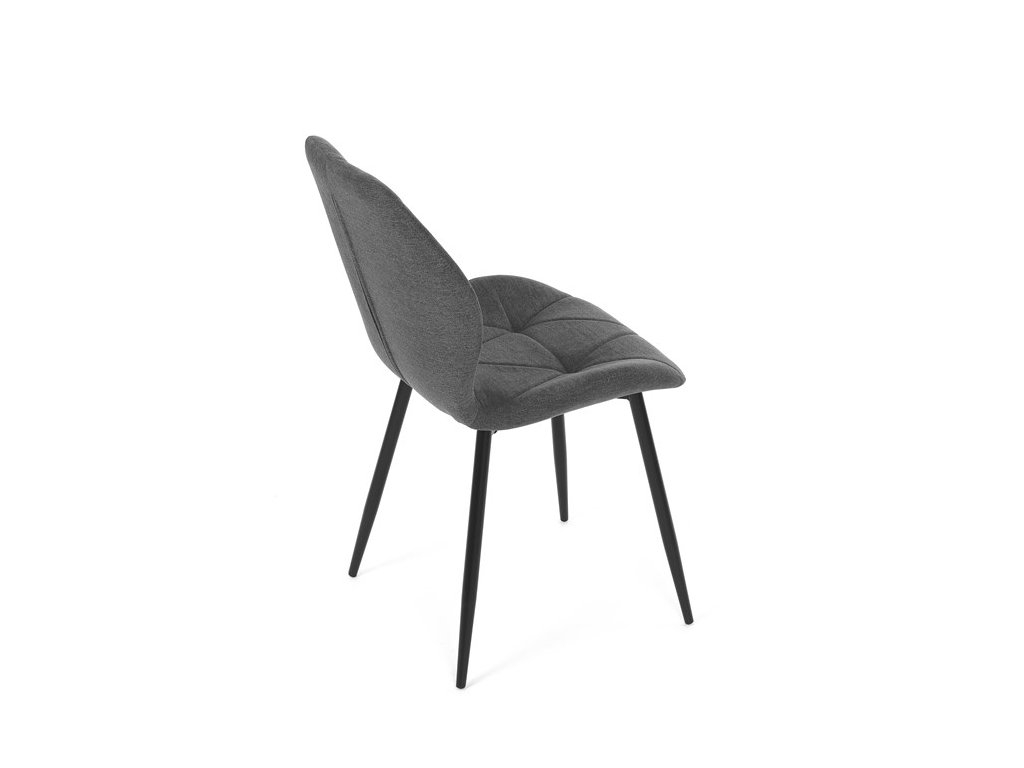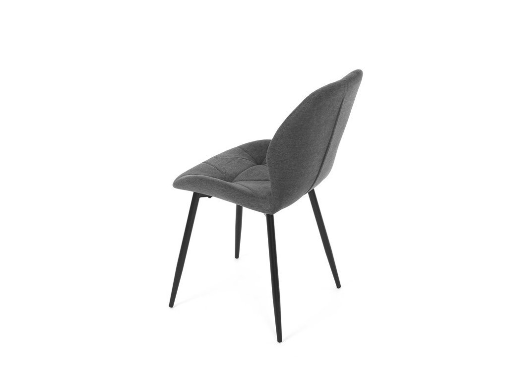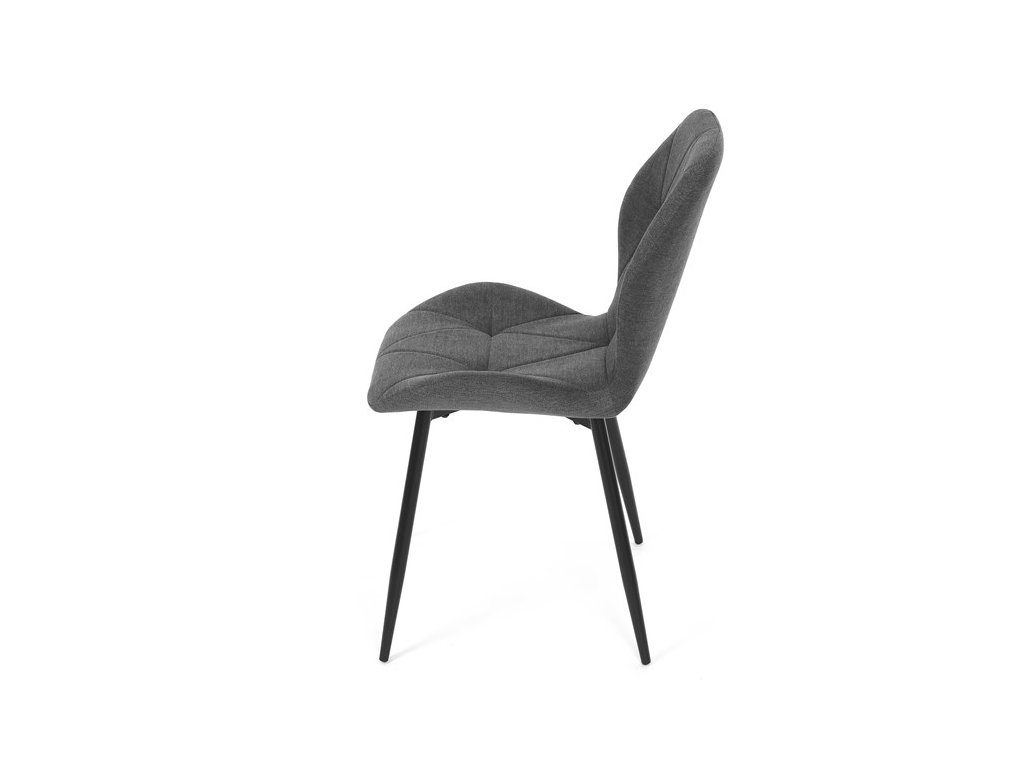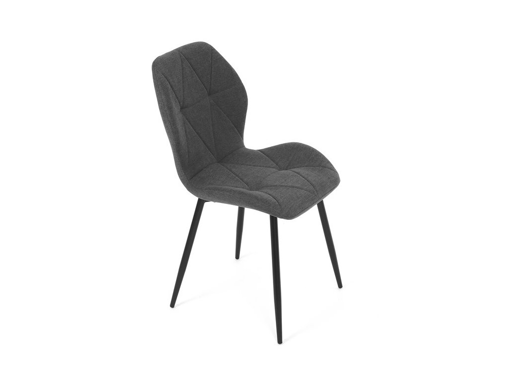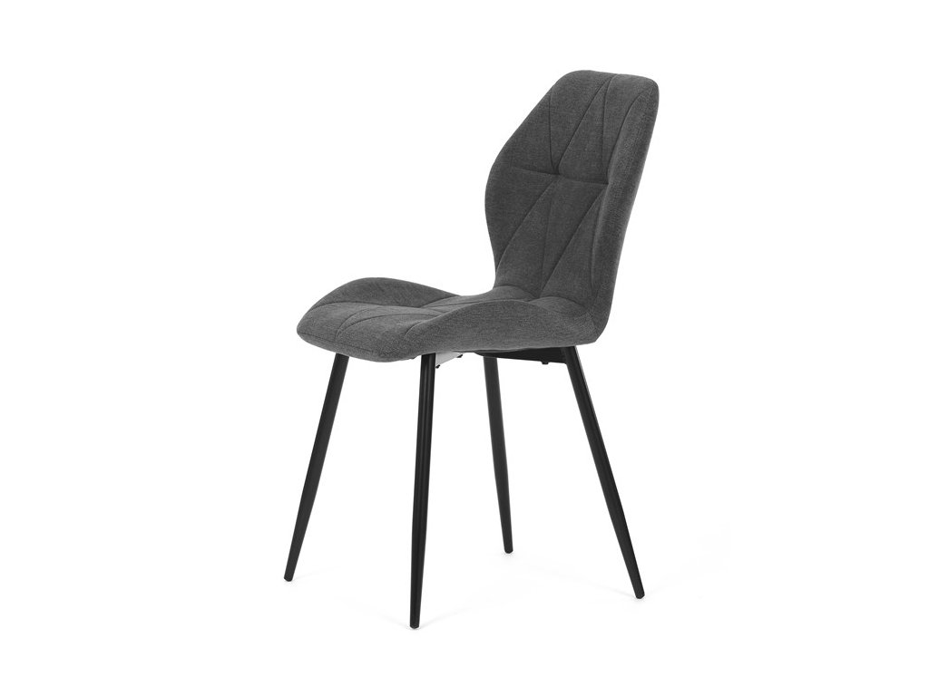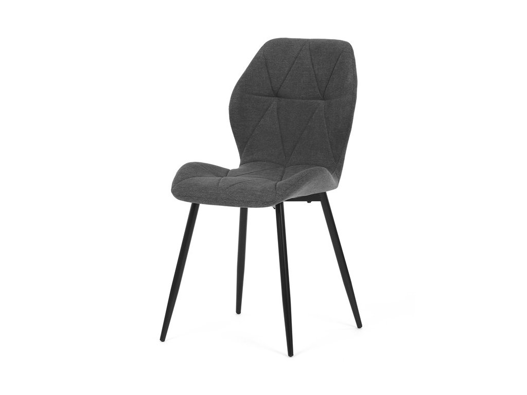 Židle je čalouněná kvalitní tmavě šedou látkou, která je měkká na dotek a zároveň odolná proti opotřebení. Ergonomicky tvarované sedadlo a opěradlo s dekorativním prošíváním poskytují vysoký komfort i při delším sezení. Židle stojí na pevných kovových nohách v černém provedení, které zajišťují stabilitu a dlouhou životnost. Nohy jsou elegantně zkosené, což dodává židli moderní vzhled a zajišťuje pevnou stabilitu.