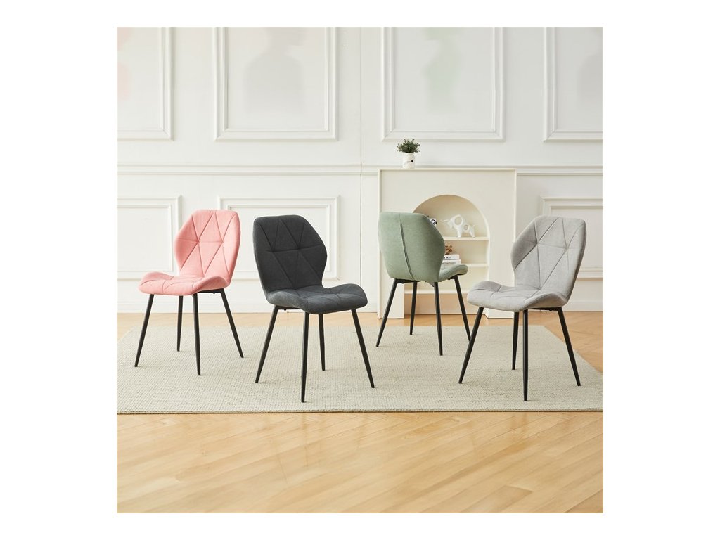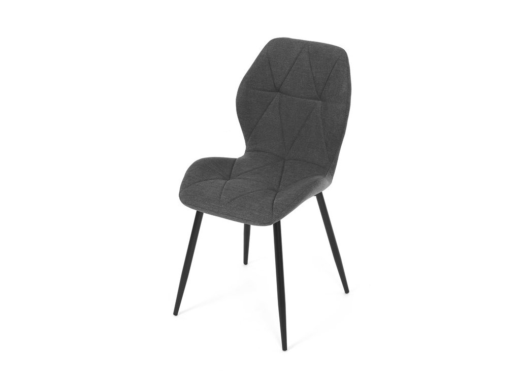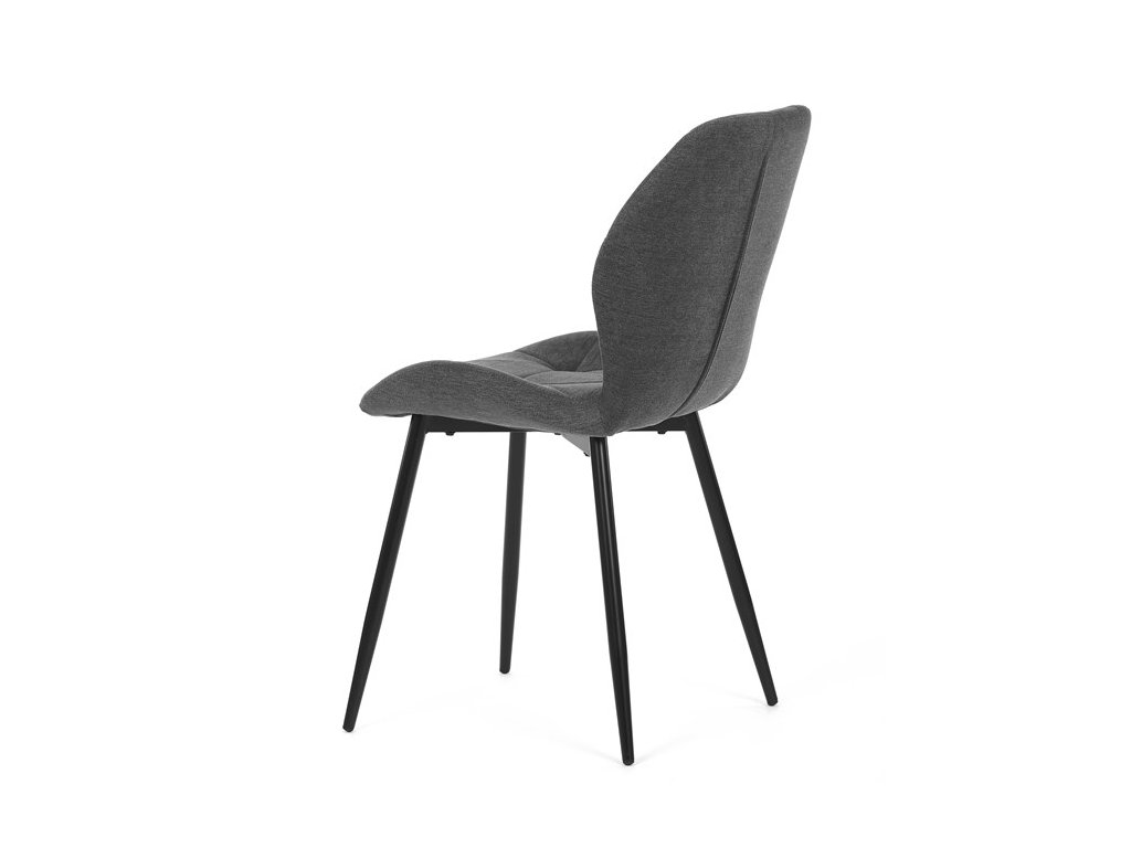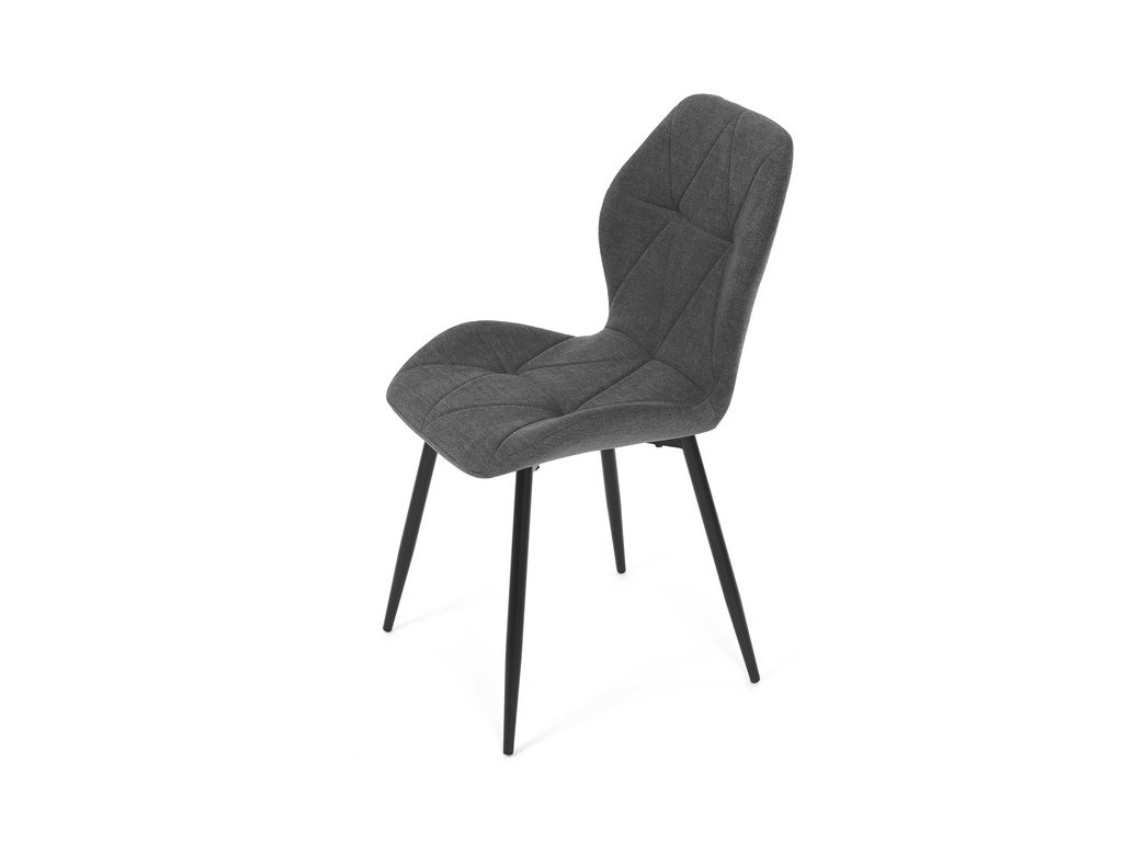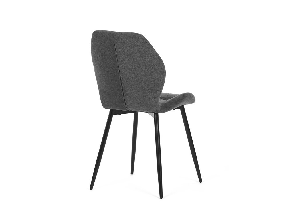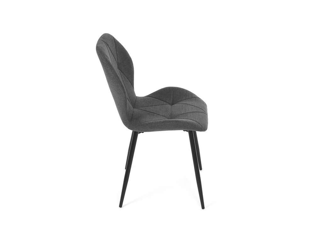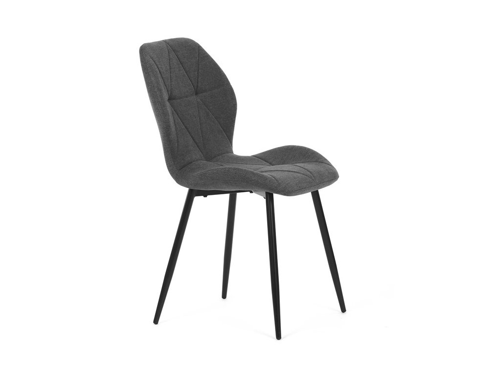 Židle je čalouněná kvalitní tmavě šedou látkou, která je měkká na dotek a zároveň odolná proti opotřebení. Ergonomicky tvarované sedadlo a opěradlo s dekorativním prošíváním poskytují vysoký komfort i při delším sezení. Židle stojí na pevných kovových nohách v černém provedení, které zajišťují stabilitu a dlouhou životnost. Nohy jsou elegantně zkosené, což dodává židli moderní vzhled a zajišťuje pevnou stabilitu.