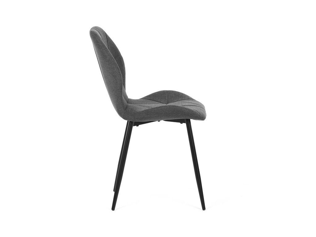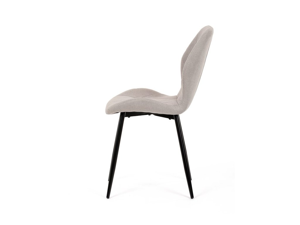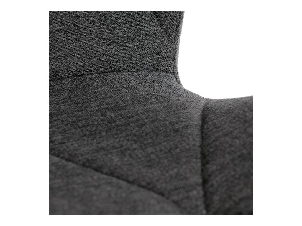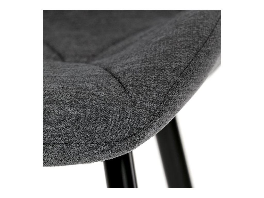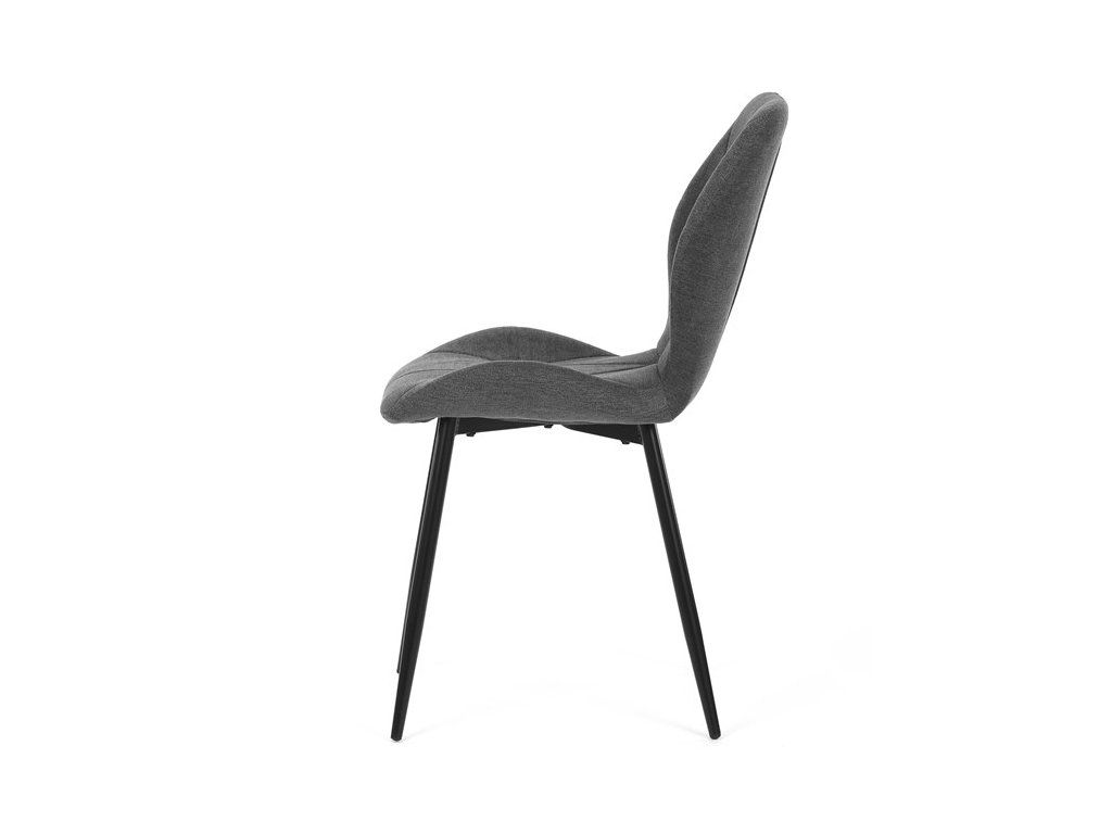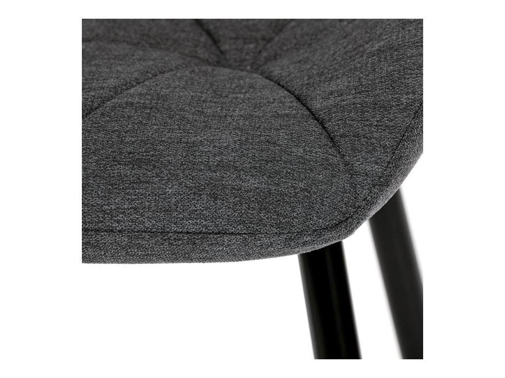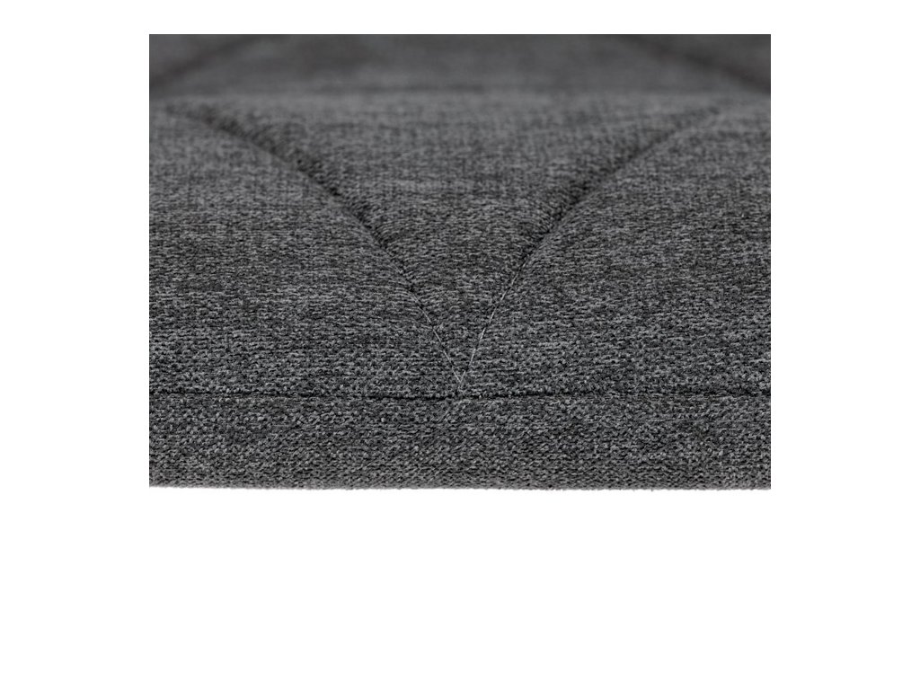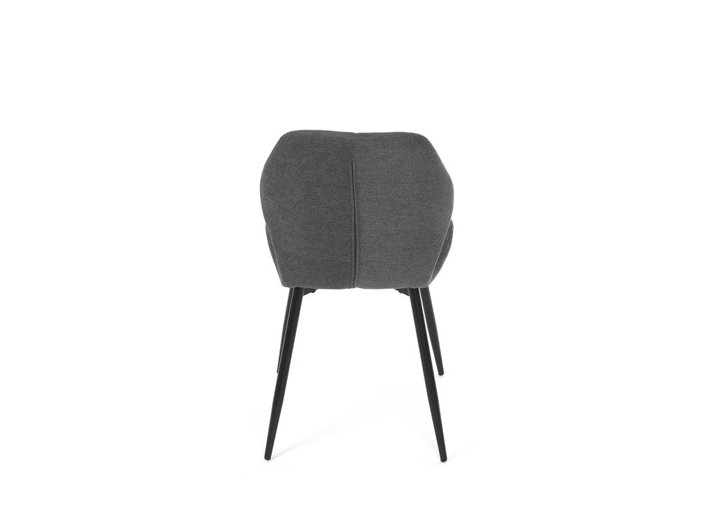 Židle je čalouněná kvalitní tmavě šedou látkou, která je měkká na dotek a zároveň odolná proti opotřebení. Ergonomicky tvarované sedadlo a opěradlo s dekorativním prošíváním poskytují vysoký komfort i při delším sezení. Židle stojí na pevných kovových nohách v černém provedení, které zajišťují stabilitu a dlouhou životnost. Nohy jsou elegantně zkosené, což dodává židli moderní vzhled a zajišťuje pevnou stabilitu.