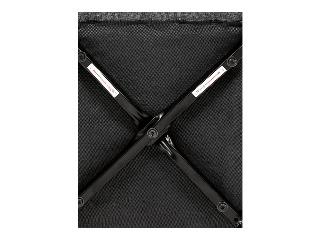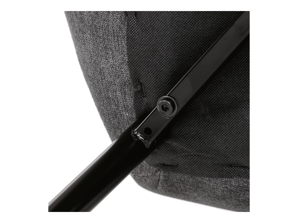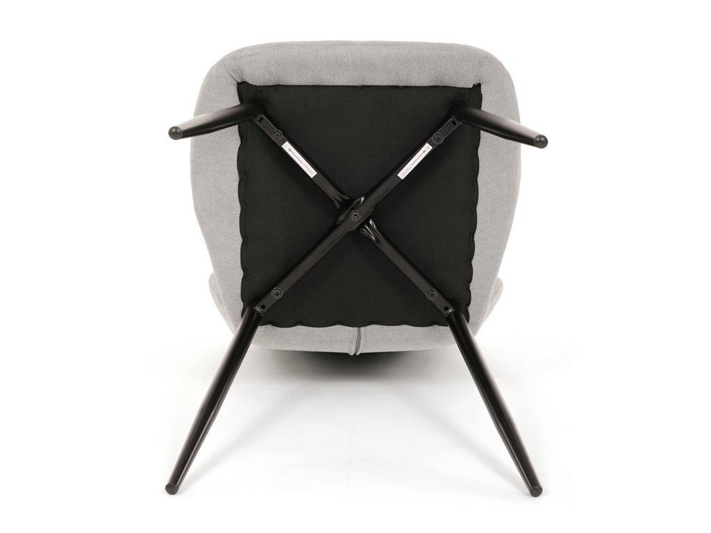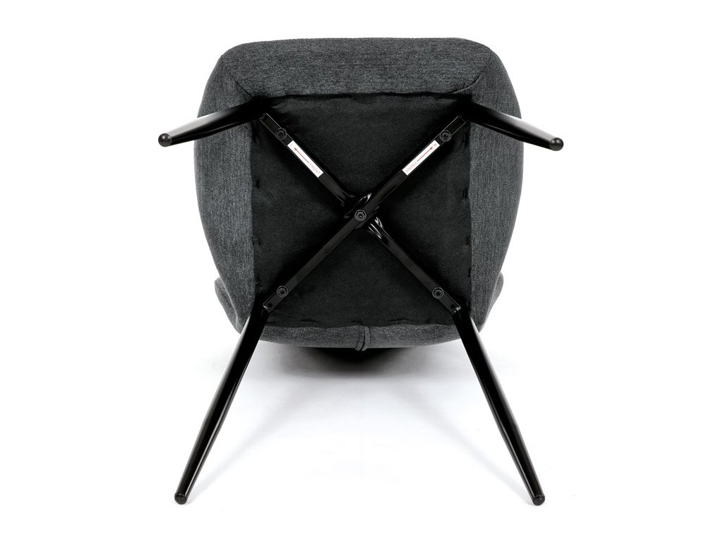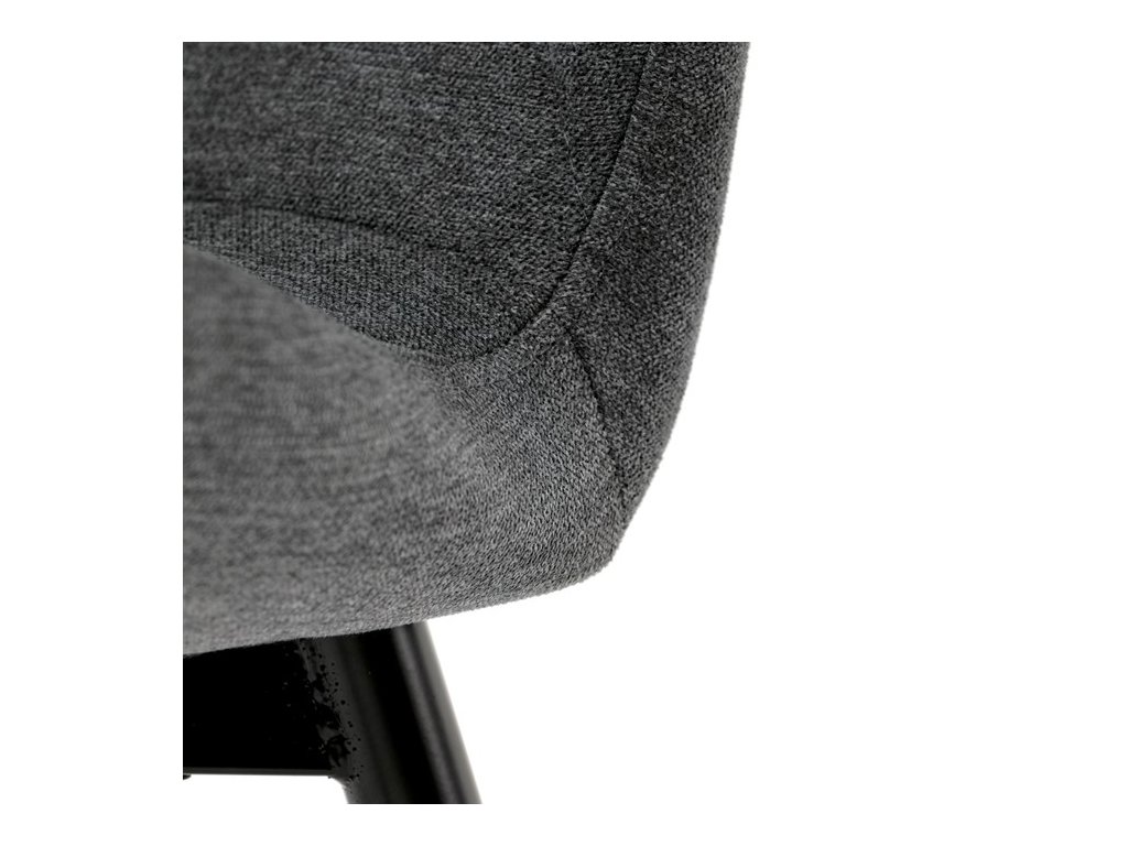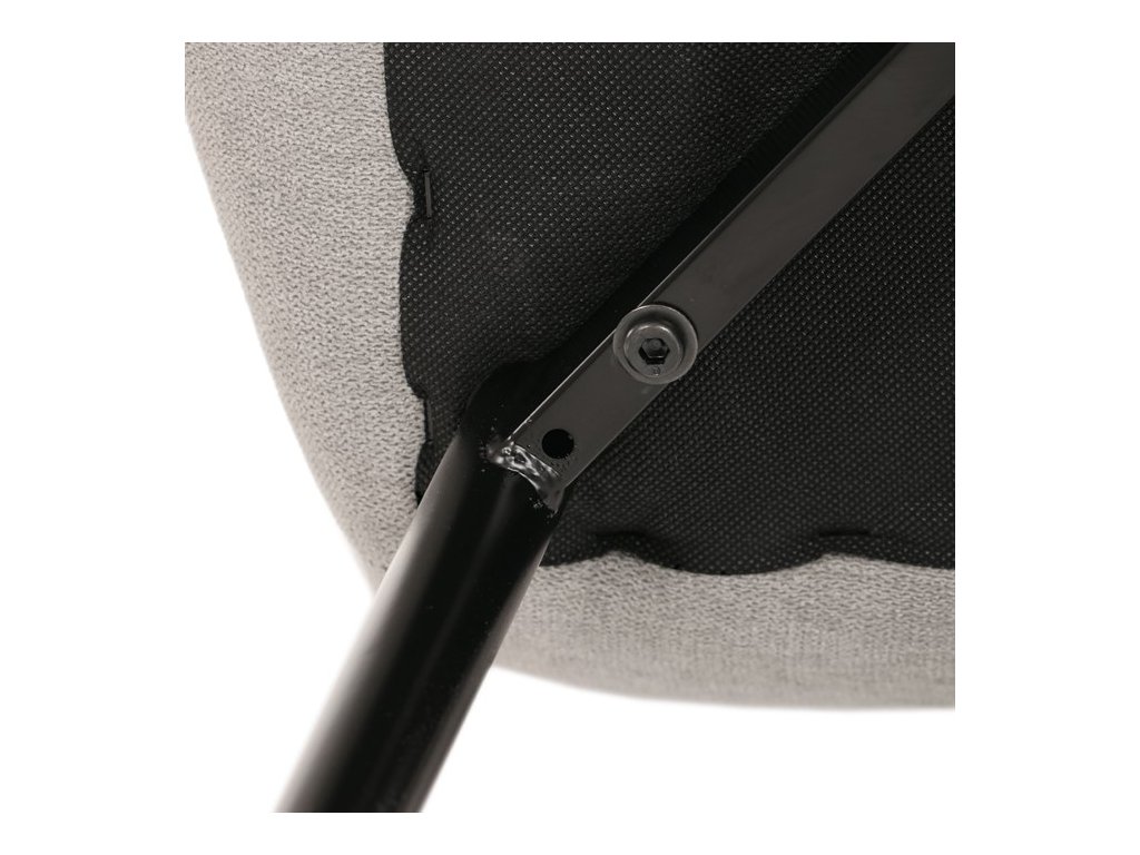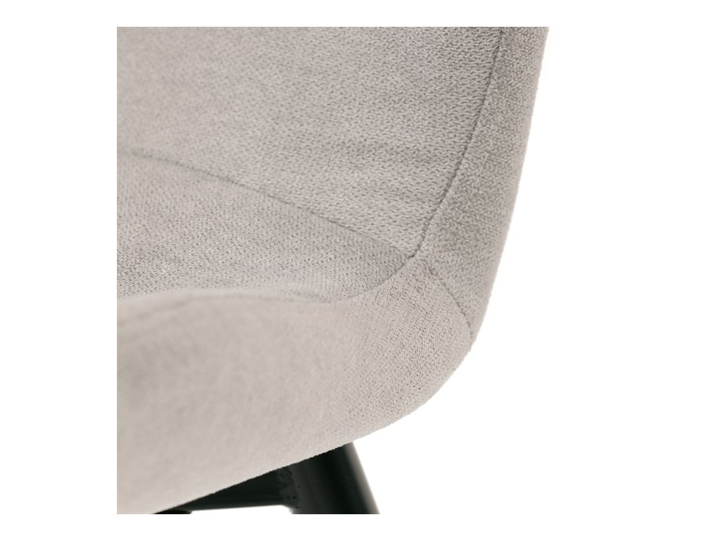 Židle je čalouněná kvalitní tmavě šedou látkou, která je měkká na dotek a zároveň odolná proti opotřebení. Ergonomicky tvarované sedadlo a opěradlo s dekorativním prošíváním poskytují vysoký komfort i při delším sezení. Židle stojí na pevných kovových nohách v černém provedení, které zajišťují stabilitu a dlouhou životnost. Nohy jsou elegantně zkosené, což dodává židli moderní vzhled a zajišťuje pevnou stabilitu.