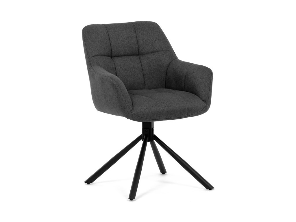 Otočné křeslo značky Autronic přináší moderní design a maximální pohodlí do vašeho interiéru. Čalounění v tmavě šedém odstínu v kombinaci s prošívanými detaily vytváří luxusní vzhled, který se skvěle hodí do obývacího pokoje, pracovny nebo kanceláře. Stabilní kovová podnož v černé barvě zajišťuje pevnost a odolnost, zatímco otočný mechanismus umožňuje flexibilní pohyb a komfortní užívání. Ergonomicky tvarovaný sedák s područkami poskytuje vynikající oporu a pohodlí, díky čemuž je toto křeslo ideální volbou pro relaxaci i pracovní činnosti.