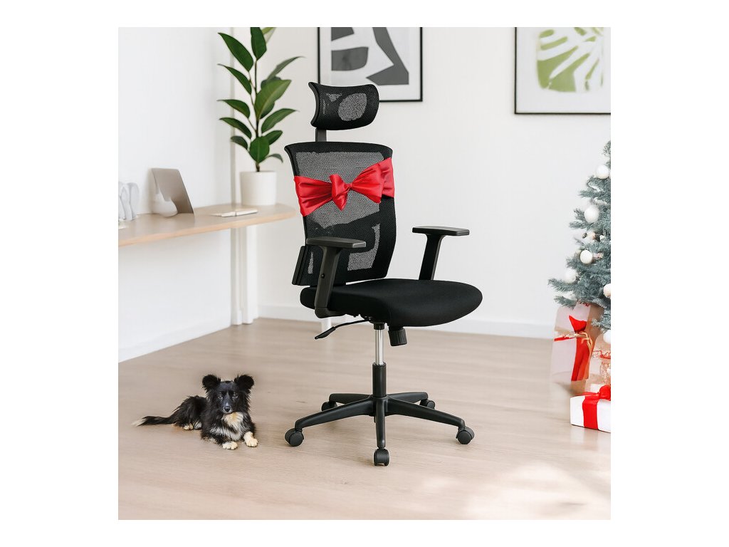 Kancelářská židle s podhlavníkem a potahem z černé látky a prodyšné síťoviny mesh nabízí komfortní sezení s důrazem na ergonomii. Opěradlo je vybaveno nastavitelnou bederní opěrkou, která podporuje správné držení těla, a výškově nastavitelným podhlavníkem pro optimální oporu krční páteře. Sedák je čalouněný kvalitní látkou, která zajišťuje pohodlí i při dlouhodobém používání. Houpací mechanismus umožňuje plynulé naklápění s možností aretace v základní poloze, zatímco 1D jednosměrně nastavitelné područky přispívají k individuálnímu přizpůsobení. Plastový kříž s pěti kolečky poskytuje stabilitu a snadnou mobilitu. Židle je výškově nastavitelná a vhodná pro běžné kancelářské použití.