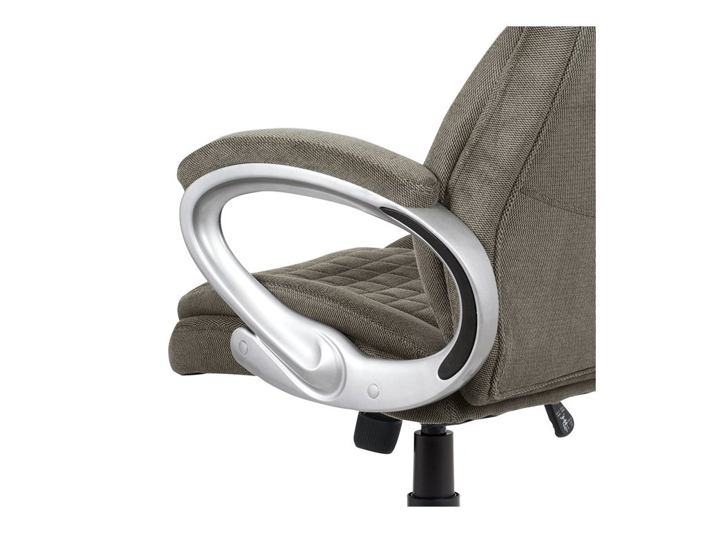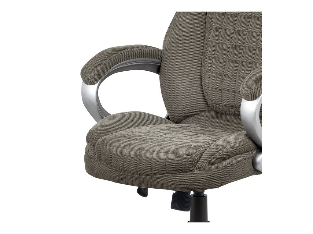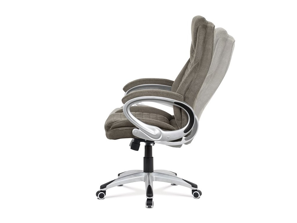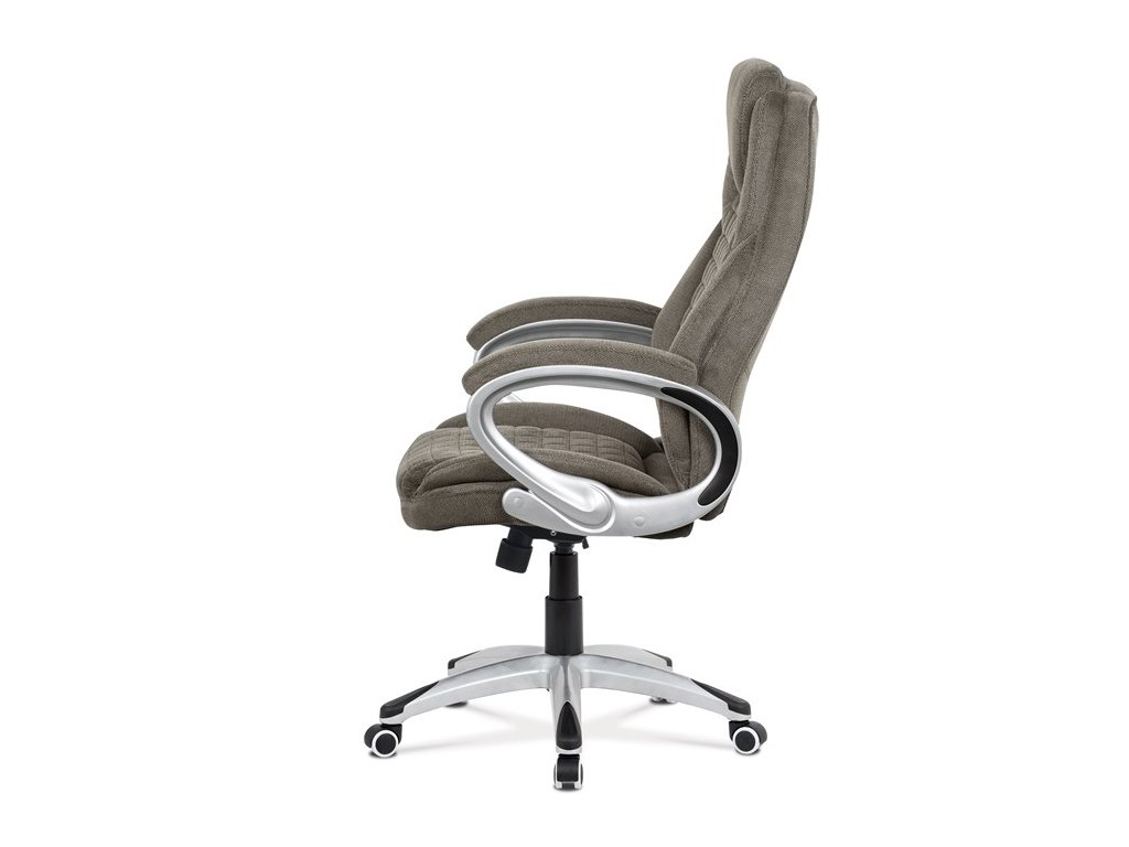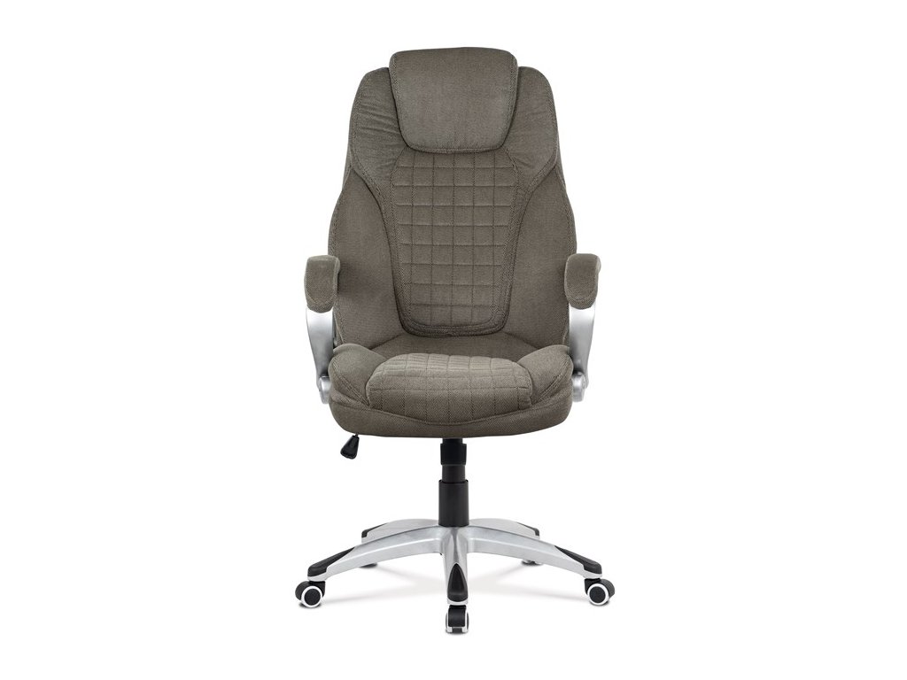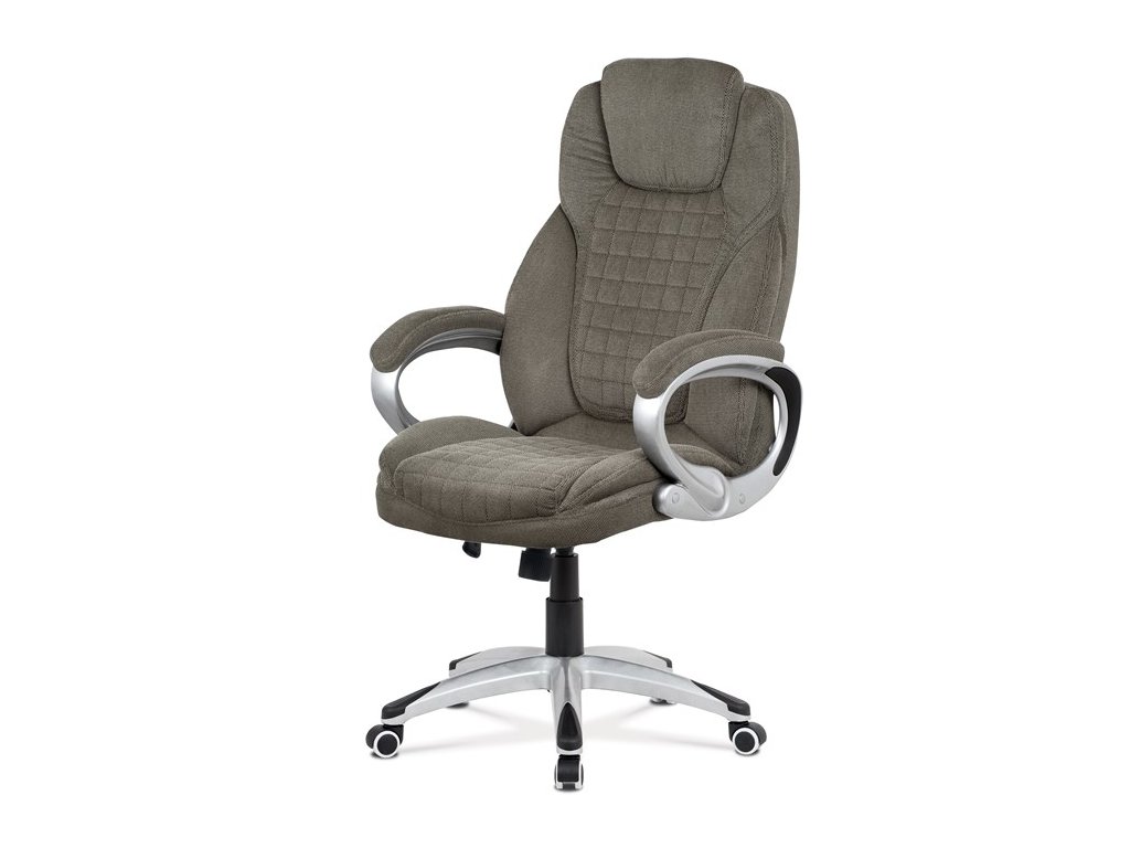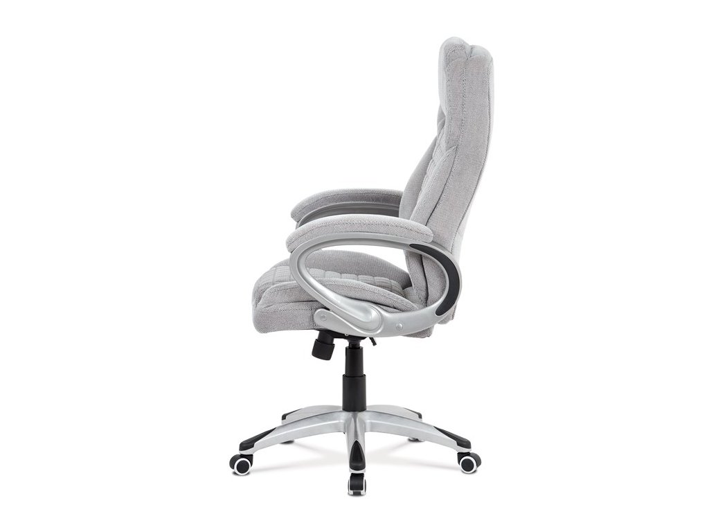 Moderní kancelářská židle potažená pololesklou šedou látkou vzor pepito. Díky ultra pohodlnému sedáku a opěráku s výjimečným polstrováním, které jsou stylově tvarované, s elegantním prošitím a se super měkkým podhlavníkem se budete cítit jako v business class nejlepší letecké společnosti. Ruce si můžete pohodlně opřít o pevné plastové područky šedé barvy s černými plastovými doplňky a polstrováním potaženým extra jemnou látkou. Židle má také i snadno omyvatelný, tvrzený, plastový kříž stříbrné barvy s černými protiskluzovými prvky a plastovými kolečky vhodnými na tvrdé typy podlah (dlažba, parkety, plovoucí podlahy apod.). Je výškově nastavitelná, s houpacím mechanismem a předním šroubem upravujícím tuhost pohupu a její nosnost je až 120 kg.