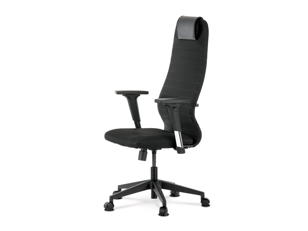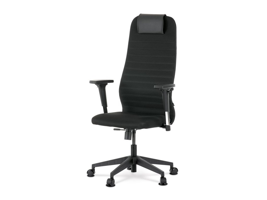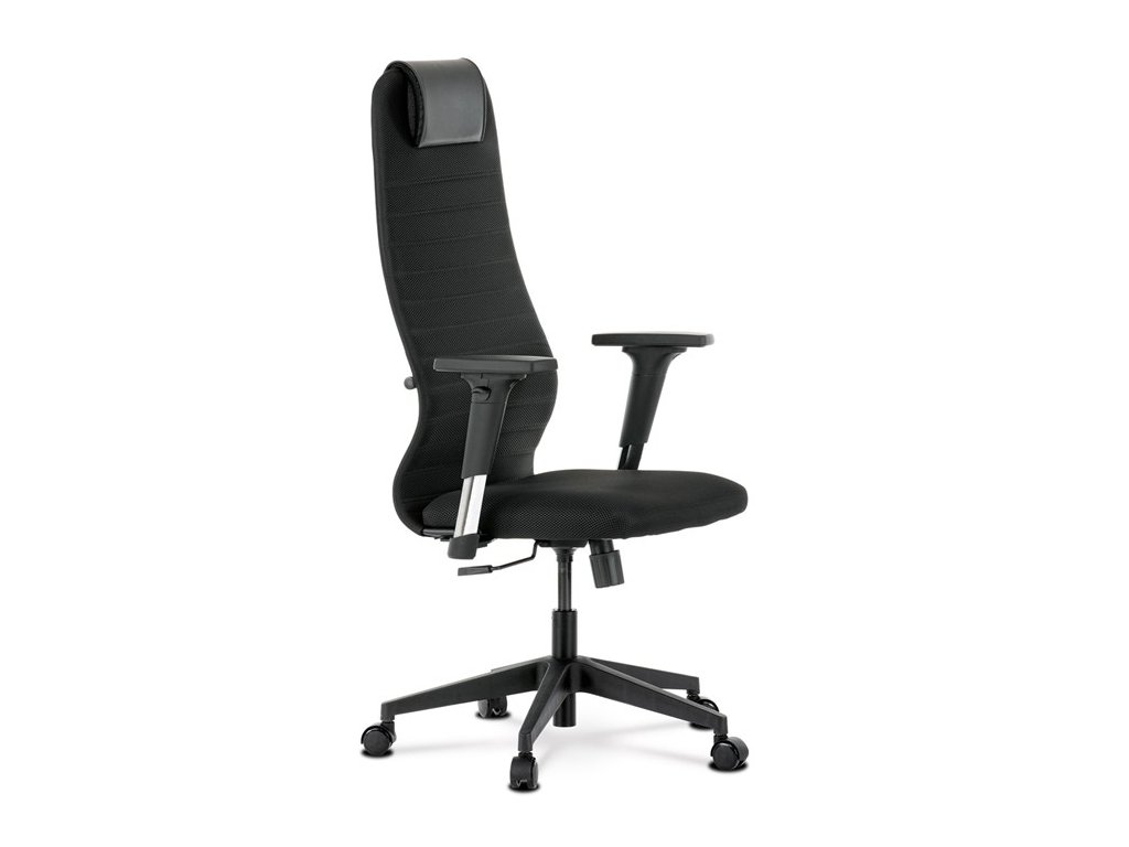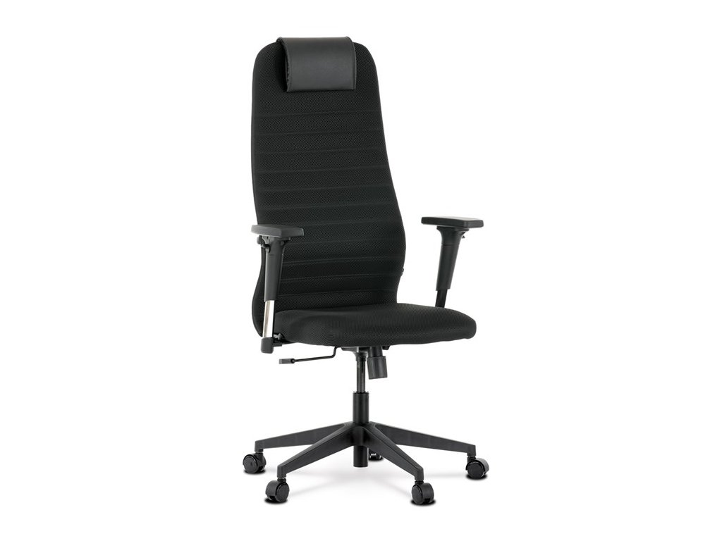 Kancelářské kreslo s označením KA-U09 BK nabízí ergonomicky tvarované opěradlo potažené černou látkou, doplněné o černé ekokůží čalouněný polštářek v oblasti hlavy pro zvýšený komfort. Sedák je rovněž čalouněný látkou, která zajišťuje příjemný pocit při dlouhodobém sezení. Kreslo je vybaveno houpacím mechanismem umožňujícím plynulé naklápění s možností aretace v základní poloze, což podporuje dynamické sezení a odlehčuje páteři. Područky typu 2D jsou nastavitelné ve dvou směrech (výška a šířka), což umožňuje individuální přizpůsobení pro lepší ergonomii. Stabilní plastový kříž s pěti kolečky zajišťuje snadnou mobilitu a pevnost celé židle. Černá barva a jednoduchý design vhodně doplní moderní kancelářské prostředí.