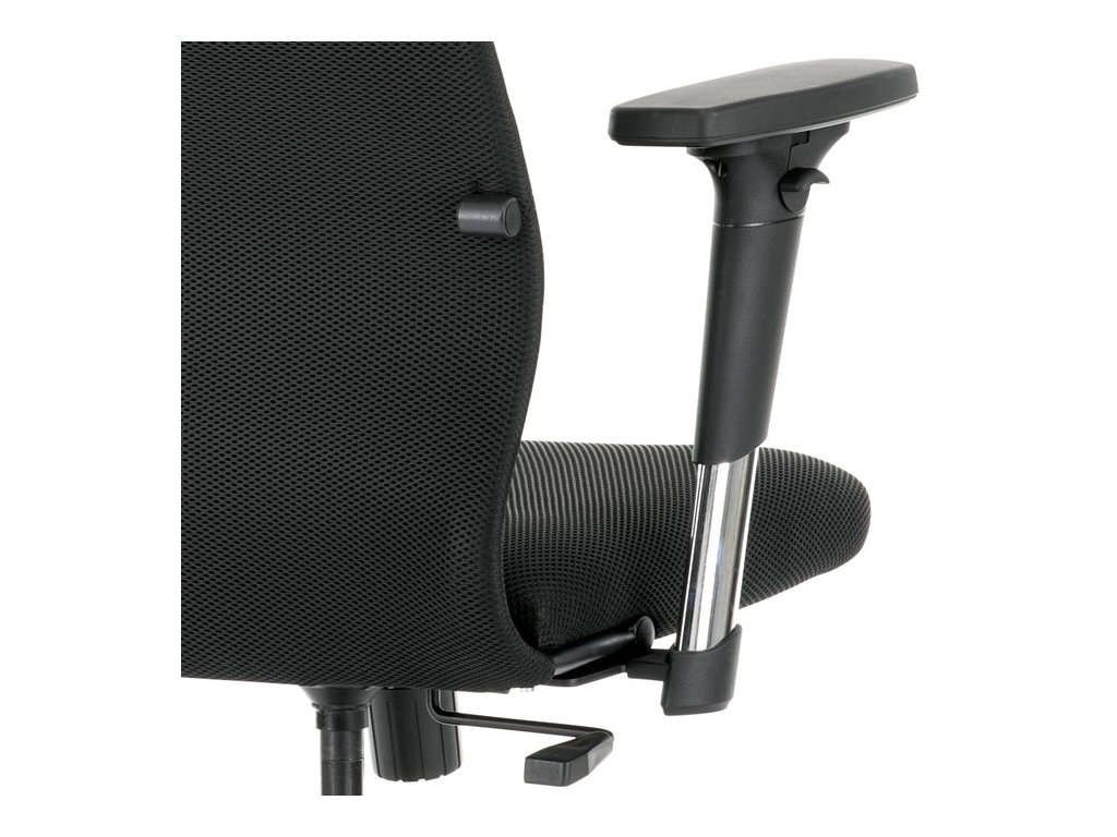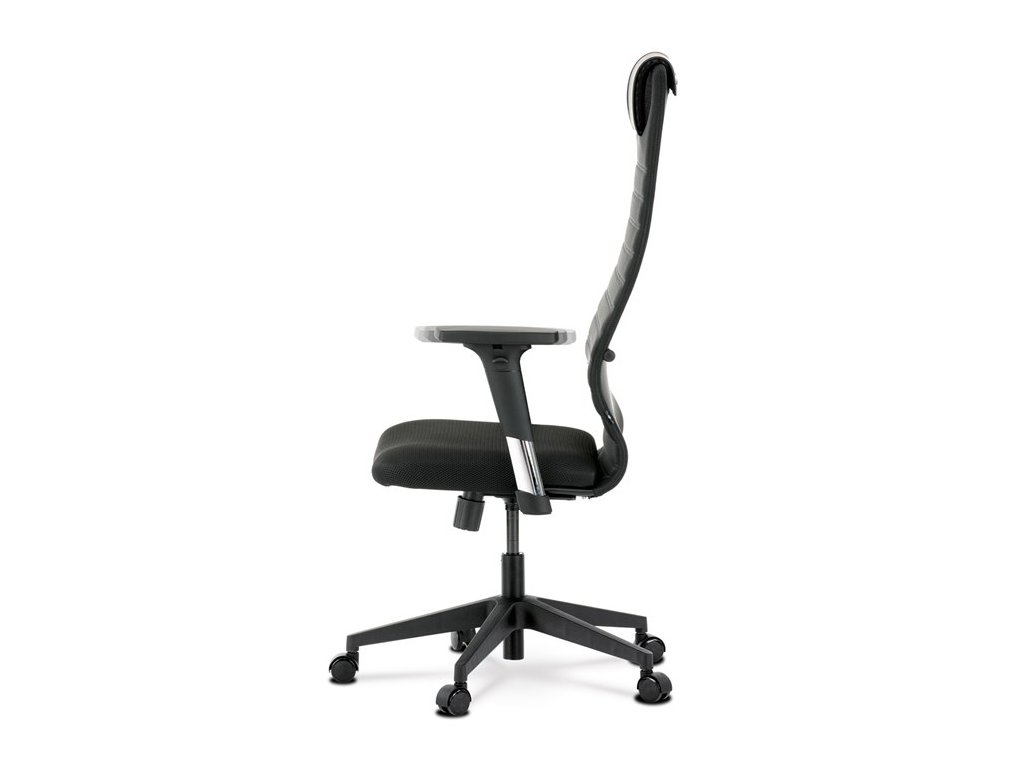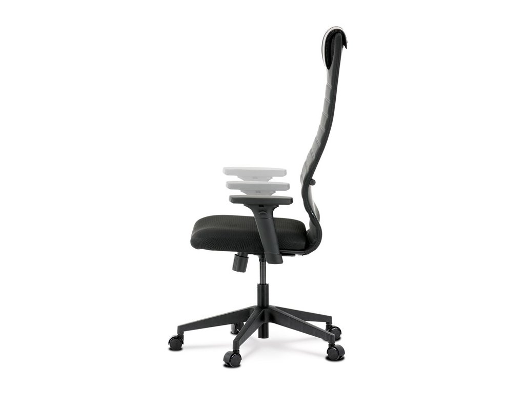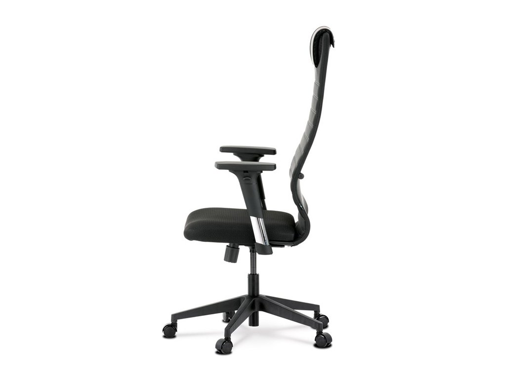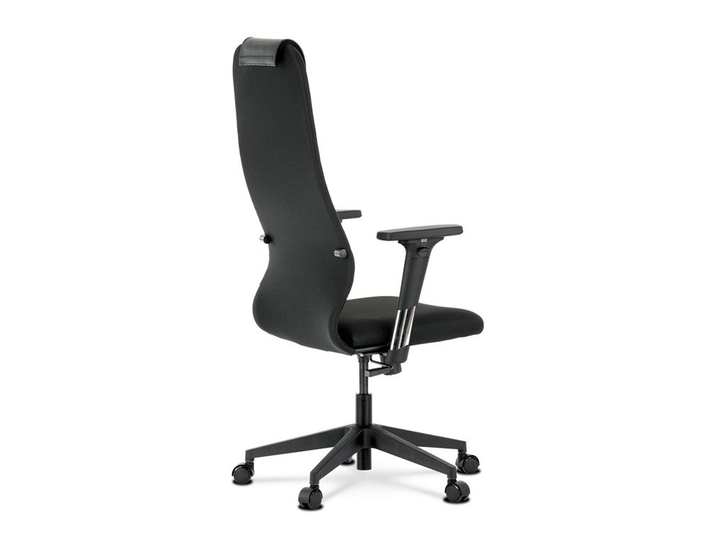 Kancelářské kreslo s označením KA-U09 BK nabízí ergonomicky tvarované opěradlo potažené černou látkou, doplněné o černé ekokůží čalouněný polštářek v oblasti hlavy pro zvýšený komfort. Sedák je rovněž čalouněný látkou, která zajišťuje příjemný pocit při dlouhodobém sezení. Kreslo je vybaveno houpacím mechanismem umožňujícím plynulé naklápění s možností aretace v základní poloze, což podporuje dynamické sezení a odlehčuje páteři. Područky typu 2D jsou nastavitelné ve dvou směrech (výška a šířka), což umožňuje individuální přizpůsobení pro lepší ergonomii. Stabilní plastový kříž s pěti kolečky zajišťuje snadnou mobilitu a pevnost celé židle. Černá barva a jednoduchý design vhodně doplní moderní kancelářské prostředí.