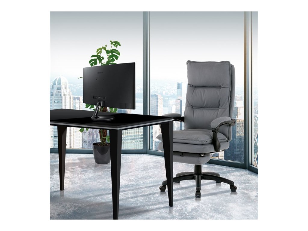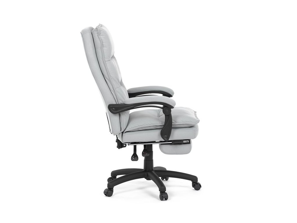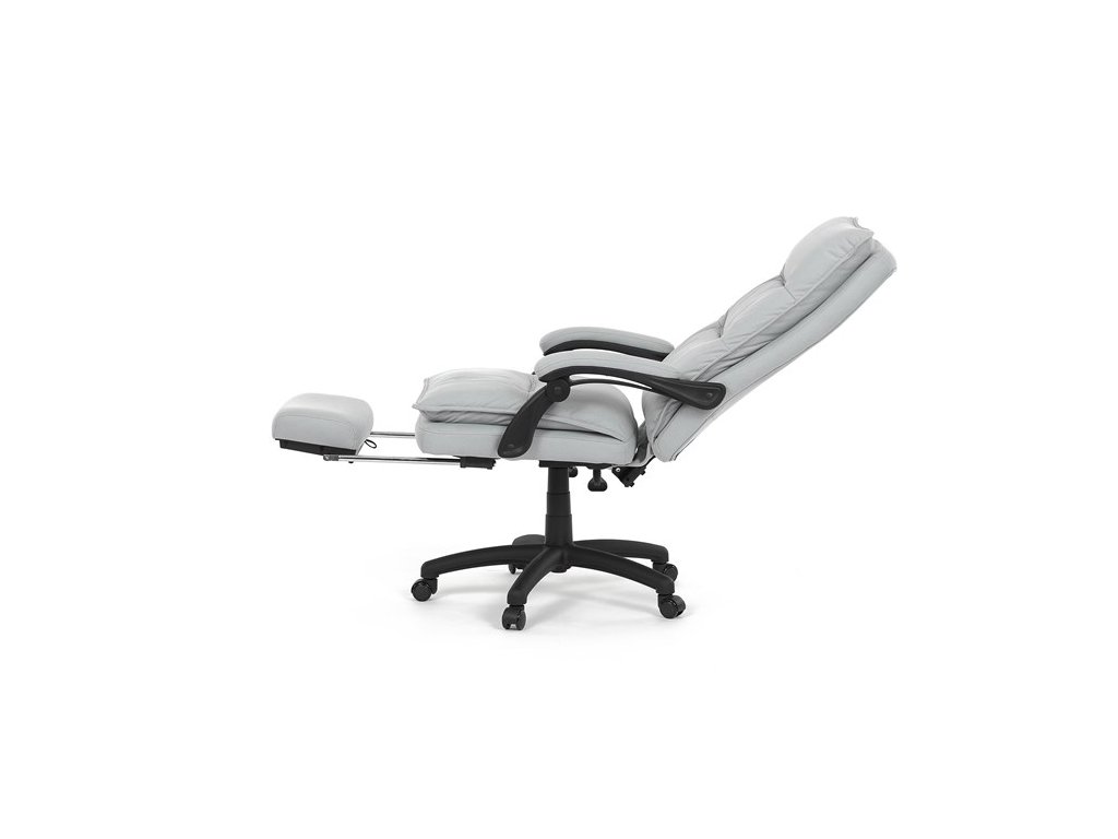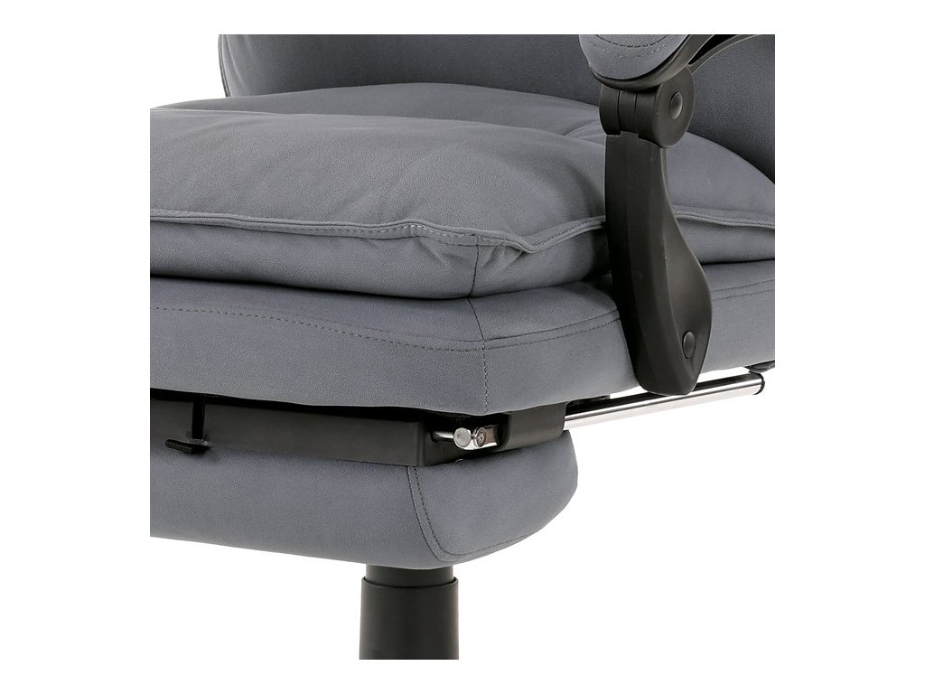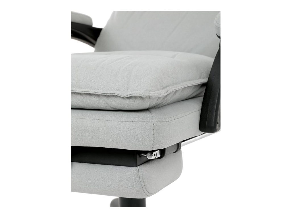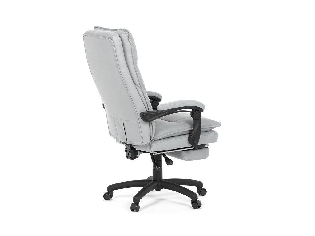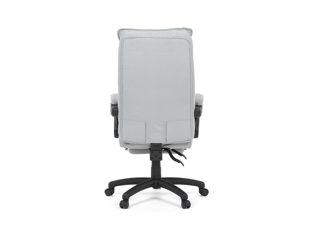 Luxusní kancelářské křeslo z kolekce TOP manager. Jedná se o moderní designové křeslo, navržené pro náročnou kancelářskou práci nebo jen relaxační lenošení. Jemný šedý odstín potahové látky doplní jakýkoli interiér, takže je univerzálním doplňkem do každé kanceláře. Výplň dvojitého sedáku i vysokého opěráku je z velmi kvalitní PU pěny. Křeslo je vybaveno houpacím mechanismem s plynulou aretací. Při vypnutí aretace je možné s opěradlem volně pohupovat. Područky jsou plastové, z vrchní části polstrované. Jedinečnost područek spočívá v synchronní mechanice, která upravuje jejich polohu při polohování opěráku. Vaše ruce budou mít při odpočinku dokonalou a velmi měkkou podporu. Jako TOP vybavení slouží výsuvná a výklopná polstrovaná podnožka. Nosnost židle je až 130 kg. Černá kostra područek a podnoží jí dodává nádech elegance a zajišťuje, že v každém prostředí vynikne jako výrazný kousek.