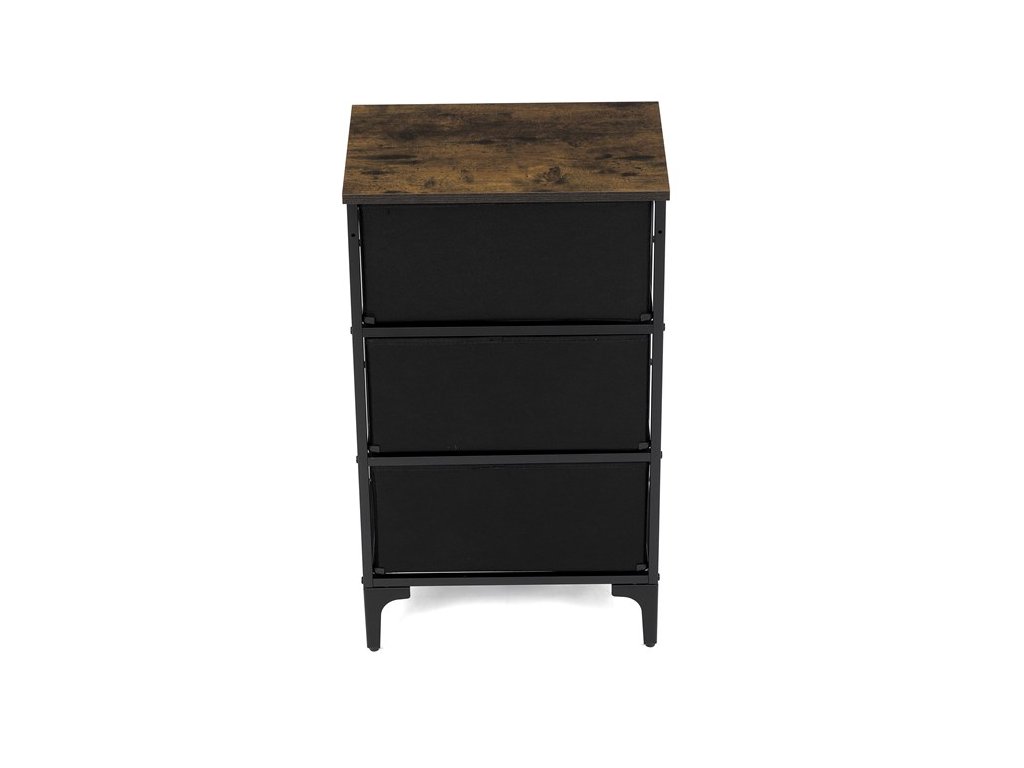 Retro komoda značky Autronic přinese do vašeho interiéru jedinečný styl a originalitu. Textilní čela zásuvek s výplní HDF a vintage potiskem navozují atmosféru starých amerických barů a jazzových klubů. Kombinace černé kovové konstrukce, desky v dekoru starého dřeva a zdobných noh dodává nábytku robustní, ale zároveň elegantní vzhled. Korpus zásuvek je vyroben z netkané textilie s výplní HDF, což zajišťuje jejich lehkost a snadnou manipulaci. Ideální doplněk do obývacího pokoje nebo stylové kavárny, kde se stane nepřehlédnutelným prvkem.