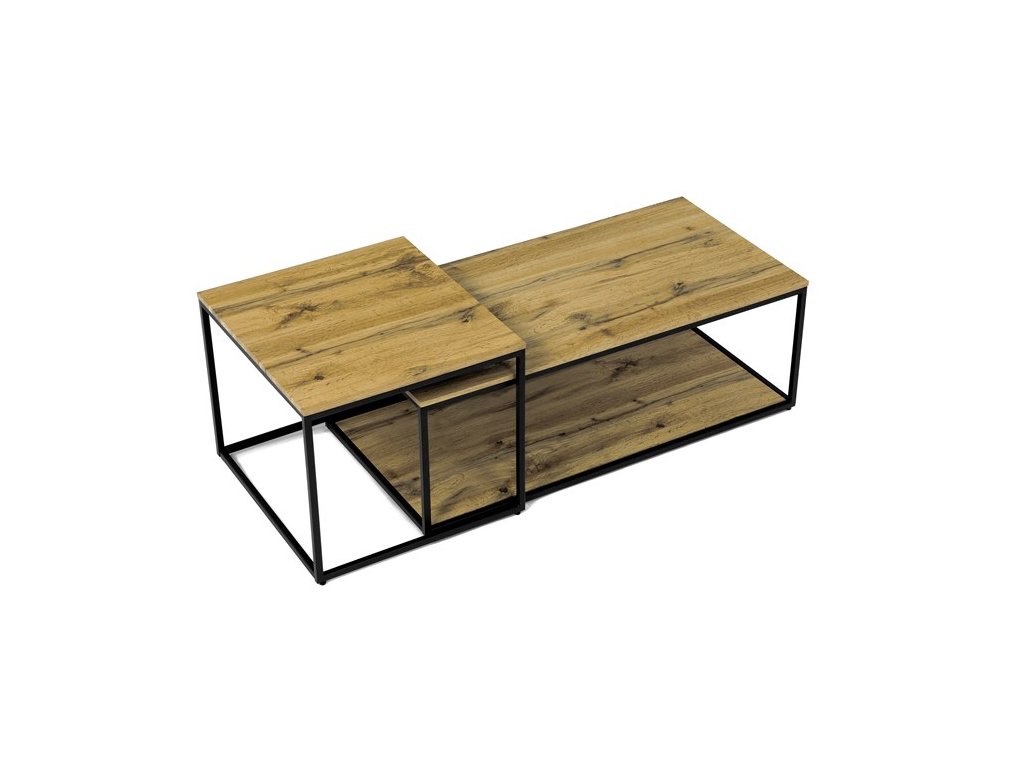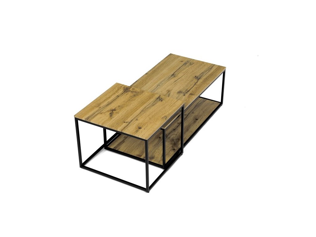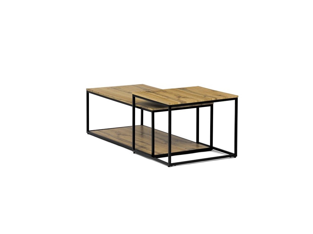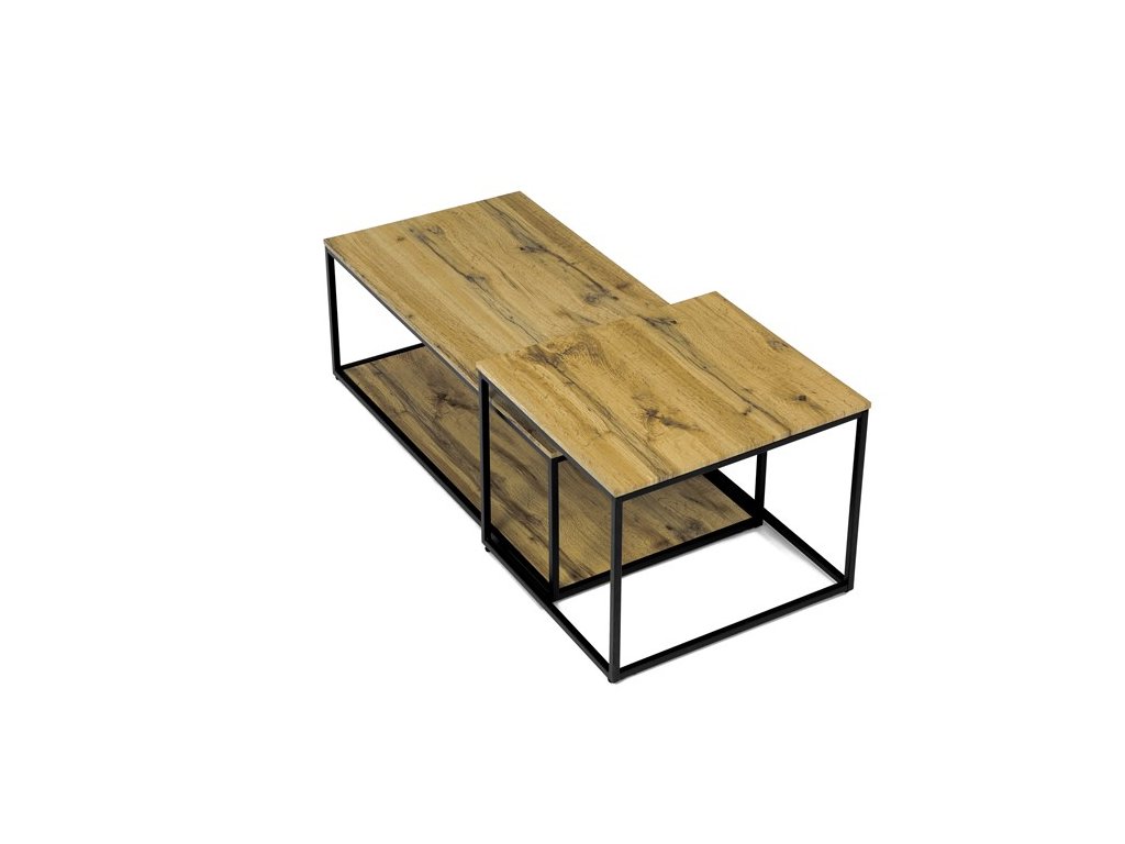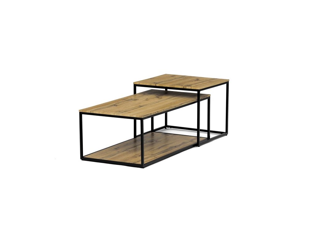 Konferenční stolek značky Autronic v industriálním stylu kombinuje eleganci a funkčnost. Deska z MDF v dekoru divokého dubu nabízí teplý přírodní vzhled, který krásně kontrastuje s černou kovovou konstrukcí. Díky svému dvouúrovňovému designu poskytuje stolek nejen dostatek místa pro odkládání, ale také praktický úložný prostor na spodní polici. Tento stolek je ideálním doplňkem do moderních obývacích pokojů, kde vynikne svou jednoduchostí a zároveň praktičností. Matný povrch desky je odolný a snadno se udržuje. Rozměr menšího stolku je 55 x 50 x 43,5 cm.