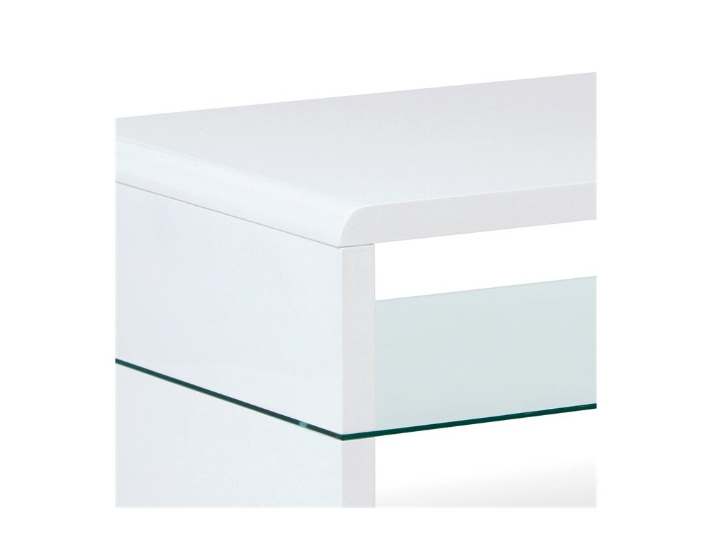 Moderní konferenční stolek značky Autronic je skvělým doplňkem do každého obývacího pokoje. S elegantním bílým lesklým povrchem a praktickou skleněnou policí nabízí styl i funkčnost. Vyroben z kvalitního MDF materiálu, je odolný a snadno se udržuje. Obdélníkový tvar a čisté linie dodávají stolku moderní vzhled, který se hodí do různých interiérů. Tento stolek poskytuje dostatek úložného prostoru pro vaše časopisy, knihy nebo dekorace.