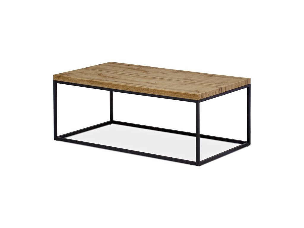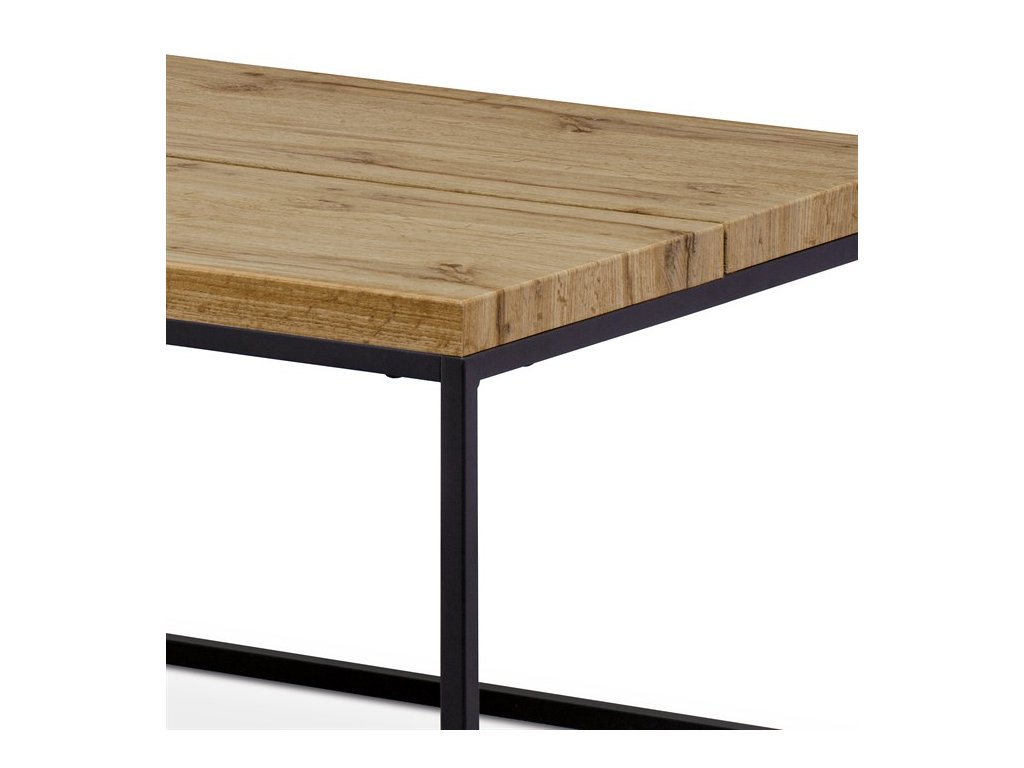 Konferenční stolek přinese do Vašeho domova trochu industriálního šarmu. Obdélníkovou desku z MDF v dekoru divoký dub harmonicky doplňuje minimalistická nosná konstrukce v černé barvě. Stolek zaujme i svým nadčasovým a strohým designem. Obdélníková deska stolu má celkový rozměr 110 x 60 cm, tloušťku 2,5 cm a skládá se ze dvou částí a uprostřed tvoří dekorativní, ale i praktickou spáru o tl. cca 1 cm. Využití této konstrukční vychytávky je jen na vás, zda aplikujete aplikujete třeba LED pásek a vytvoříte ze stolku zajímavou součást vašeho interiéru. Konstrukce je čtvercového průřezu a zakončená plastovými kluzáky na spodní straně. Nosnost stolku je cca 20 kg.