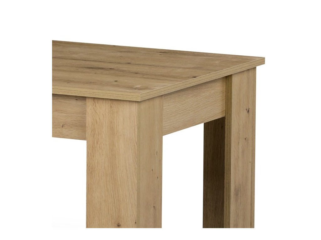 Konferenční stolek v minimalistickém designu a provedení. Je vyroben z kvalitních a pevných MDF dílů v povrchové úpravě lamino dekor dub artisan. Použitý materiál zajišťuje výbornou pevnost i stabilitu celého stolu. Nohy jsou opatřeny černými plastovými kluzáky, zamezujícími riziko poškození podlahy. Lamino je velmi odolné, výborně se udržuje a čistí. Rozlitou kávu nebo jiný nápoj prostě jen setřete, desku vysušíte a přeleštíte a po nehodě nebude ani památky. Dub artisan je charakteristický světlejším odstínem dubu, jemnějšíí krebou dřeva s menšími suky. Elegantní design a barevné provedení tohoto konferenčního stolku ideálně zapadne do industriálně laděného interiéru. Ale i v odlišně zařízeném interiéru bude nejen výrazným prvkem a dodá mu i styl. Rozměr desky je 120 x 60 cm, její tloušťka 1 cm. Výška stolku je 45 cm a nosnost do 30 kg rovnoměrně rozprostřené zátěže. Dodávám v demontu.