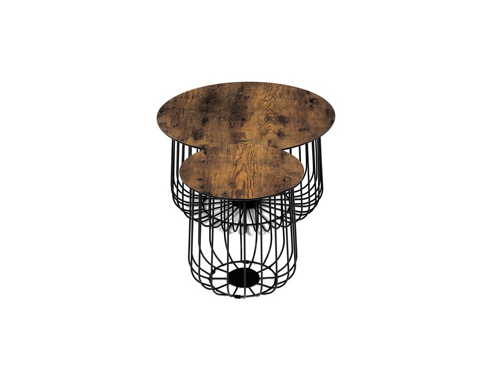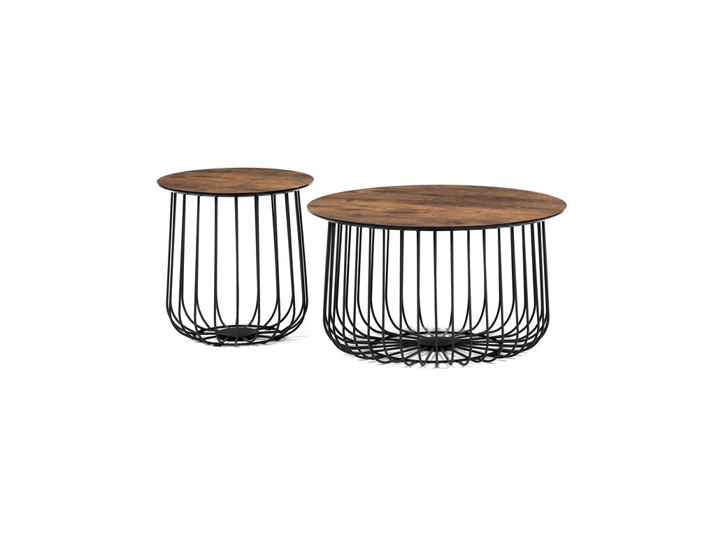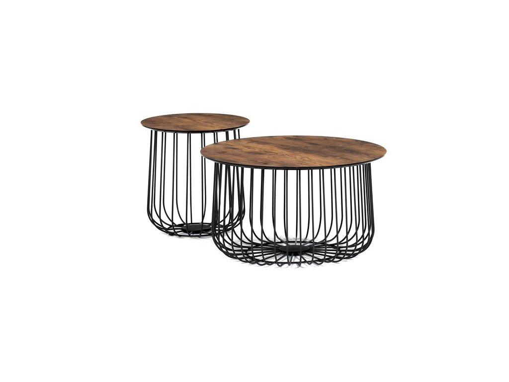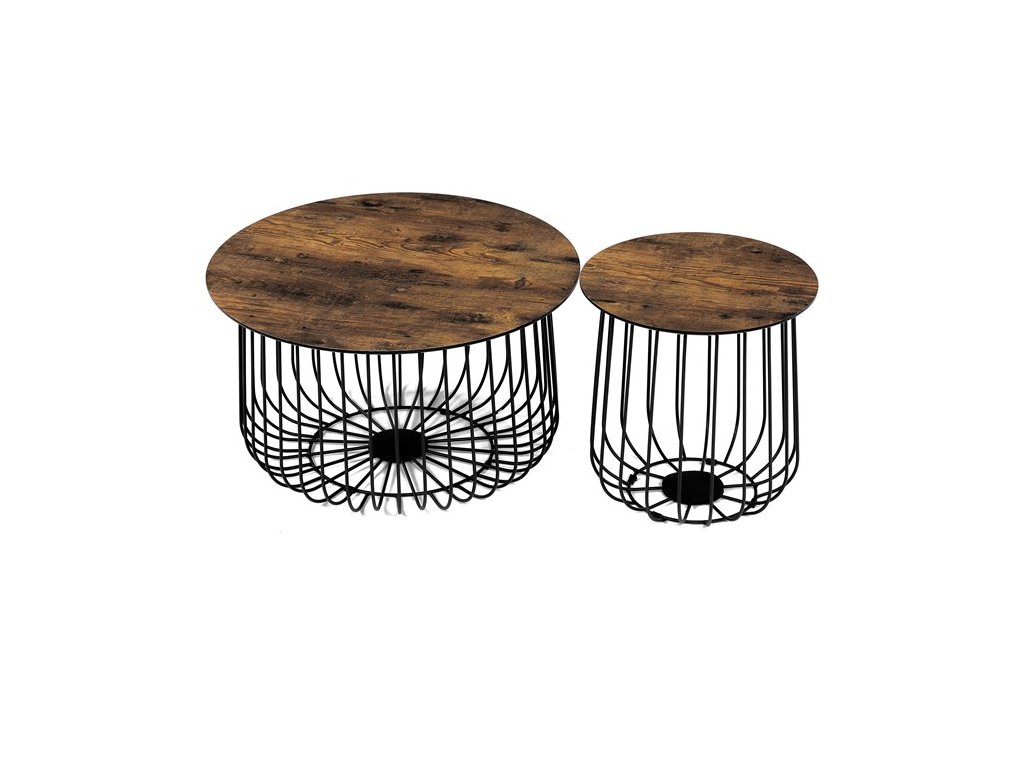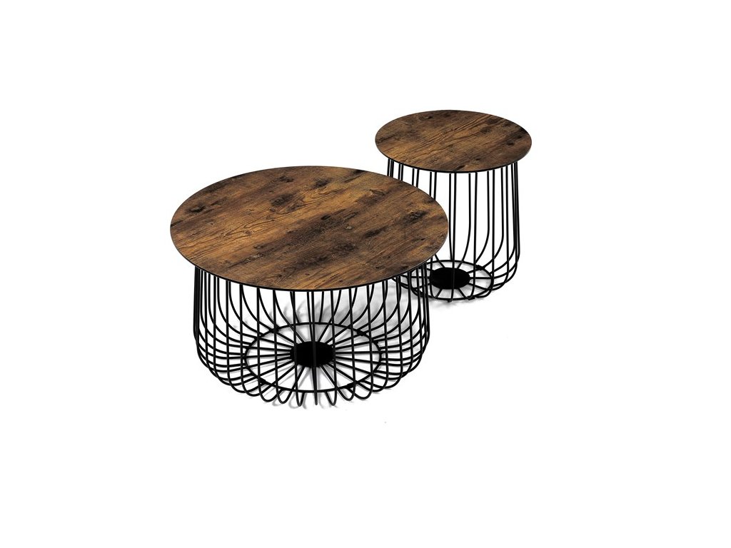 Set 2 ks variabilních a multifunkčních stolků, které můžete využít nejen jako konferenční set, ale skvěle poslouží i jednotlivě jako odkládací nebo přístavné. A to není vše. Po odklopení desky může stolek sloužit jako úložiště nebo odkladiště jistě potřebných věcí v domácnosti, které musíte mít stále při ruce anebo jen jako pokorný dekorativní prvek v interiéru, na který postavíte třeba jen květinu. Variabilita je opravdu neomezená a stačí zapojit fantazii. Co třeba dát dovnitř stolků vlastní květinové aranže či jinak vydekorovat anebo umístit příhodnou živou květinu. Pak už se stačí jen kochat vlastní tvorbou a se zalíbením sledovat závistivé pohledy návštěv. Stolky jsou v lehkém minimalistickém designu ve velmi oblíbeném industriálním stylu. Desky jsou z MDF tl. 18 mm, ze spodní části v černém matu se sraženou obvodovou hranou a v horní pohledové v 3D dekoru divoký dub. Drátěná kovová konstrukce ze subtilních kulatých profilů je v černém matu, povrchová úprava je kvalitním práškovým vypalovacím lakem. Ve spodní části jsou gumové patky, které zamezují poškození povrchu tvrdých podlah a zároveň zabraňují i nechtěnému posunu stolků. Větší stolek má průměr desky 60 cm a výšku 34 cm, vyšší má průměr 37 cm a výšku 39 cm. Nosnost stolků je do 30 kg každý. Stolky jsou velmi nenáročné na údržbu, stačí je otřít vlhkým hadříkem s vhodným čistícím prostředkem a už jen vysušit. Tento klad jistě ocení každý, a to nejen při úklidu. A dalším skvělé plus je, že zcela odpadá složitá montáž. Jen opatrně vybalíte, nasadíte desky a stolky jsou připraveny Vám sloužit dlouhá léta a vnést do Vašeho interiéru šarm industriálního stylu.