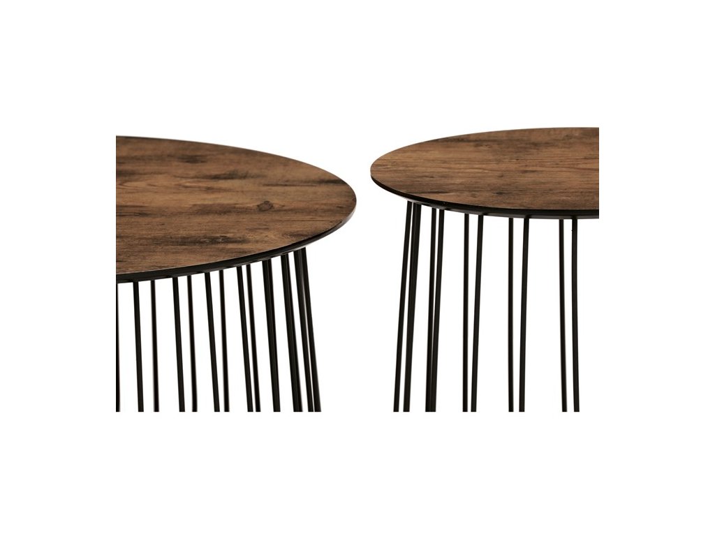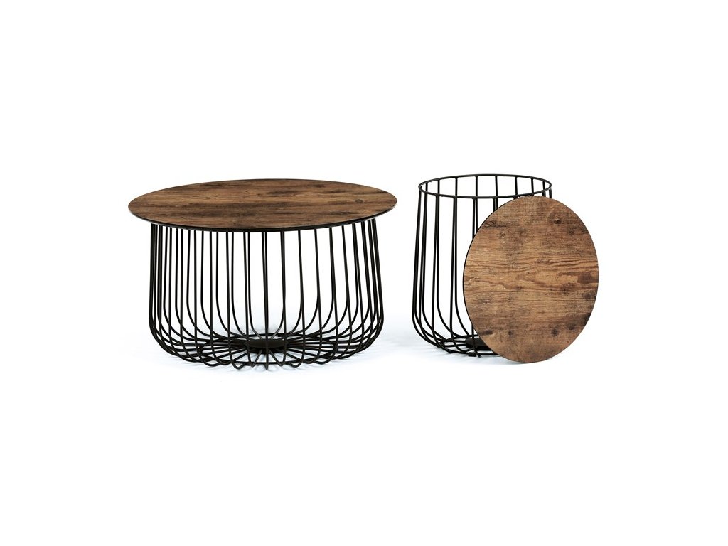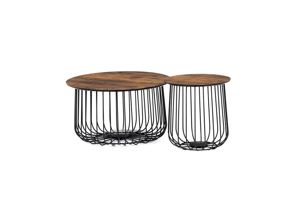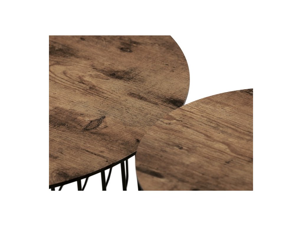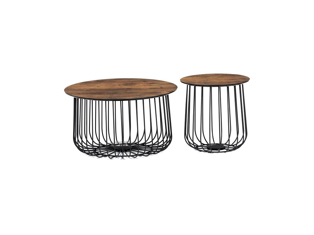 Set 2 ks variabilních a multifunkčních stolků, které můžete využít nejen jako konferenční set, ale skvěle poslouží i jednotlivě jako odkládací nebo přístavné. A to není vše. Po odklopení desky může stolek sloužit jako úložiště nebo odkladiště jistě potřebných věcí v domácnosti, které musíte mít stále při ruce anebo jen jako pokorný dekorativní prvek v interiéru, na který postavíte třeba jen květinu. Variabilita je opravdu neomezená a stačí zapojit fantazii. Co třeba dát dovnitř stolků vlastní květinové aranže či jinak vydekorovat anebo umístit příhodnou živou květinu. Pak už se stačí jen kochat vlastní tvorbou a se zalíbením sledovat závistivé pohledy návštěv. Stolky jsou v lehkém minimalistickém designu ve velmi oblíbeném industriálním stylu. Desky jsou z MDF tl. 18 mm, ze spodní části v černém matu se sraženou obvodovou hranou a v horní pohledové v 3D dekoru divoký dub. Drátěná kovová konstrukce ze subtilních kulatých profilů je v černém matu, povrchová úprava je kvalitním práškovým vypalovacím lakem. Ve spodní části jsou gumové patky, které zamezují poškození povrchu tvrdých podlah a zároveň zabraňují i nechtěnému posunu stolků. Větší stolek má průměr desky 60 cm a výšku 34 cm, vyšší má průměr 37 cm a výšku 39 cm. Nosnost stolků je do 30 kg každý. Stolky jsou velmi nenáročné na údržbu, stačí je otřít vlhkým hadříkem s vhodným čistícím prostředkem a už jen vysušit. Tento klad jistě ocení každý, a to nejen při úklidu. A dalším skvělé plus je, že zcela odpadá složitá montáž. Jen opatrně vybalíte, nasadíte desky a stolky jsou připraveny Vám sloužit dlouhá léta a vnést do Vašeho interiéru šarm industriálního stylu.