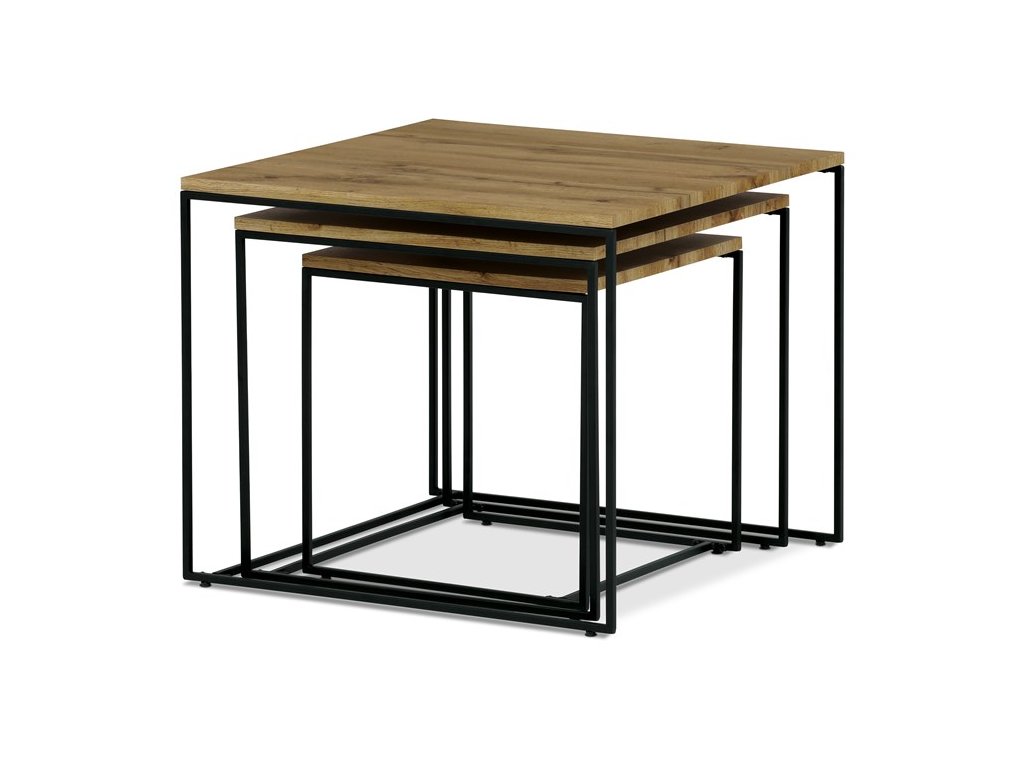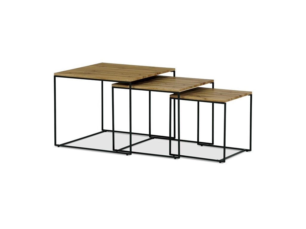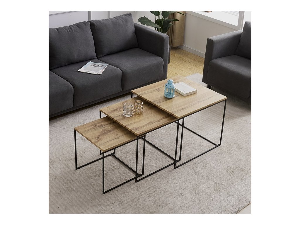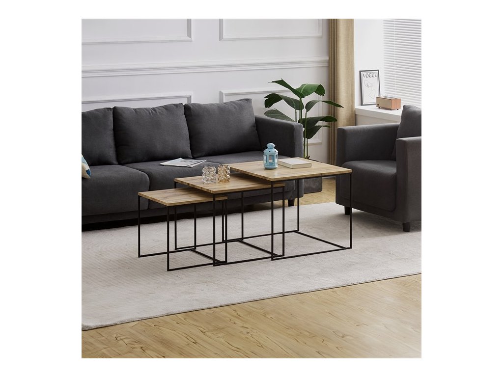 Tato sada tří konferenčních stolků, vyrobená uznávanou značkou Autronic, se stává nezbytným doplňkem každého prostoru, který si potrpí na styl i praktičnost. Díky robustní desce ze středně husté dřevovláknité desky (MDF) zdobené dubovým dekorem vnese tato sestava do obývacích pokojů, kanceláří nebo konferenčních prostor hřejivou a příjemnou atmosféru. Čtvercový tvar horní desky elegantně vyvažuje industriální estetiku s univerzálností, takže je ideální volbou pro různé motivy interiéru.