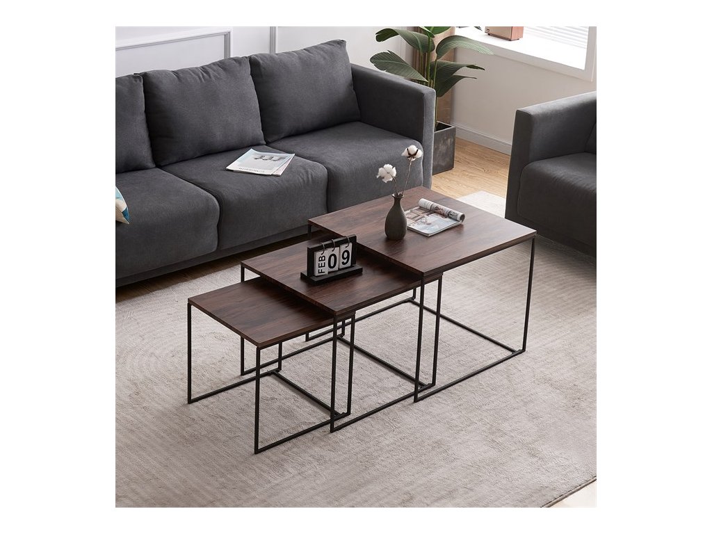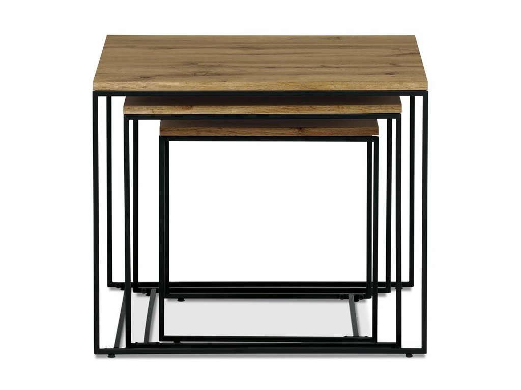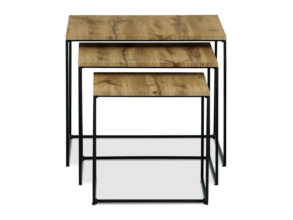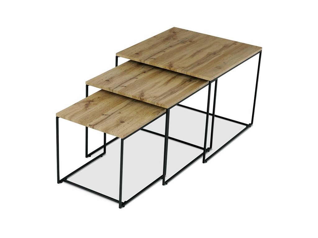 Tato sada tří konferenčních stolků, vyrobená uznávanou značkou Autronic, se stává nezbytným doplňkem každého prostoru, který si potrpí na styl i praktičnost. Díky robustní desce ze středně husté dřevovláknité desky (MDF) zdobené dubovým dekorem vnese tato sestava do obývacích pokojů, kanceláří nebo konferenčních prostor hřejivou a příjemnou atmosféru. Čtvercový tvar horní desky elegantně vyvažuje industriální estetiku s univerzálností, takže je ideální volbou pro různé motivy interiéru.