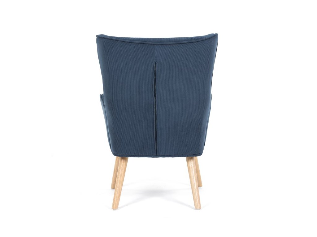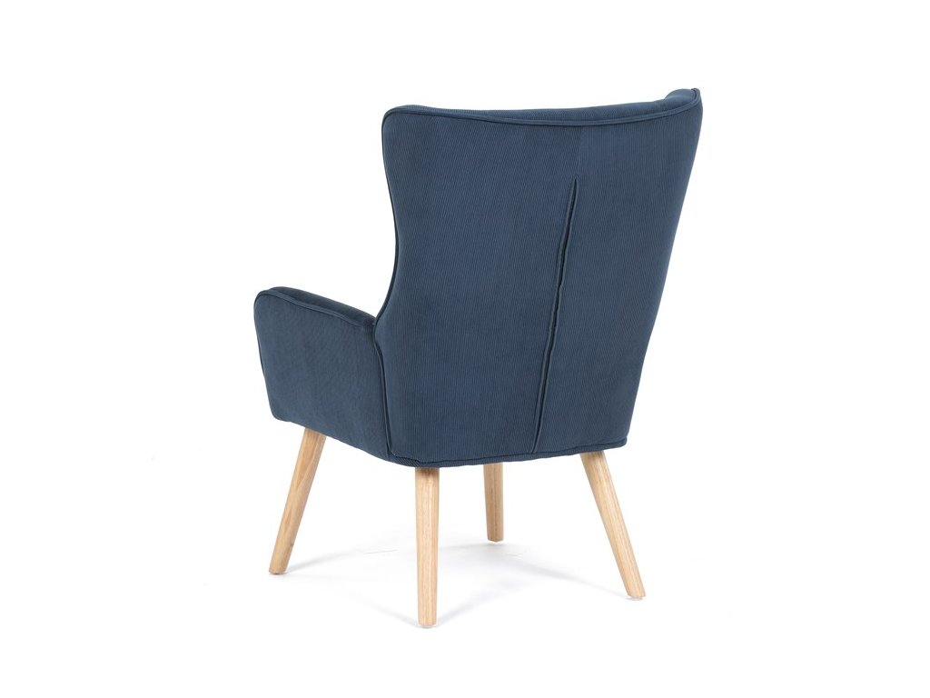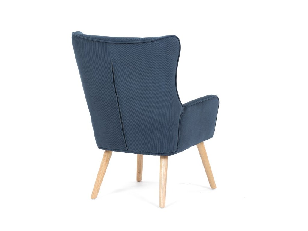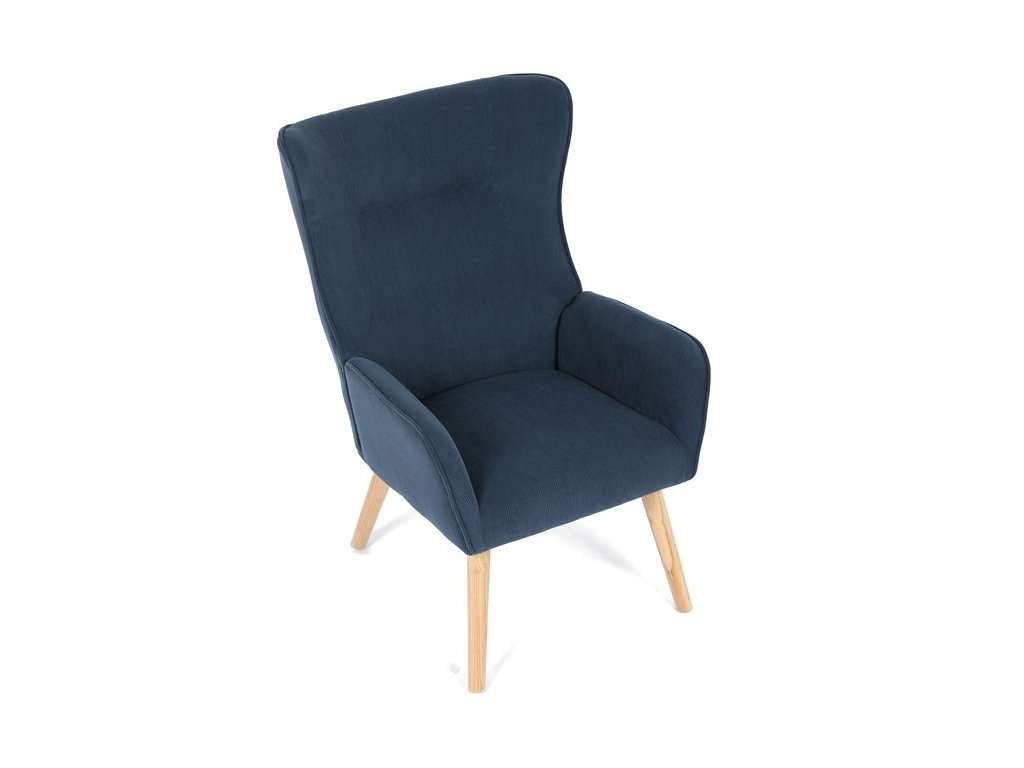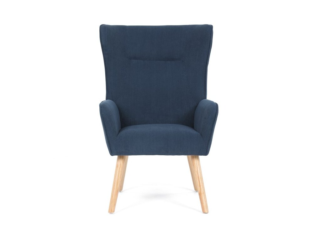 Křeslo typu ušák s potahem z modré manšestrové látky nabízí pohodlné sezení s výrazným vizuálním efektem díky jemné textuře manšestru. Sedák a opěradlo jsou vyplněné měkkou výplní, která zajišťuje komfort při delším posezení. Masivní nohy z kaučukovníku poskytují stabilní a pevnou oporu, přičemž jejich přírodní odstín kontrastuje s tmavě modrým potahem. Ergonomický tvar opěradla s mírně zvýšenými bočnicemi podporuje správnou polohu těla. Křeslo je určeno pro interiéry, kde vynikne jeho kombinace tradičního stylu a kvalitního materiálového provedení.