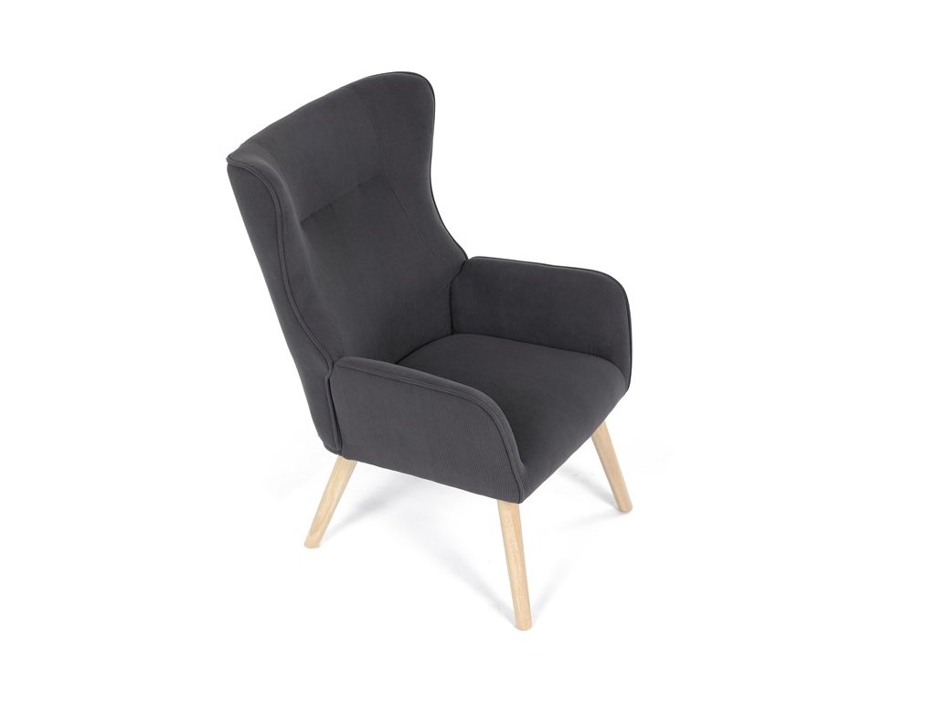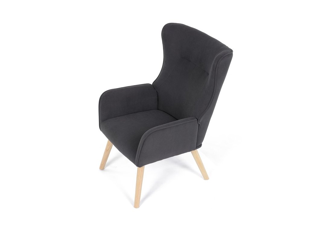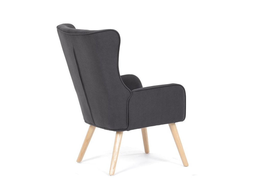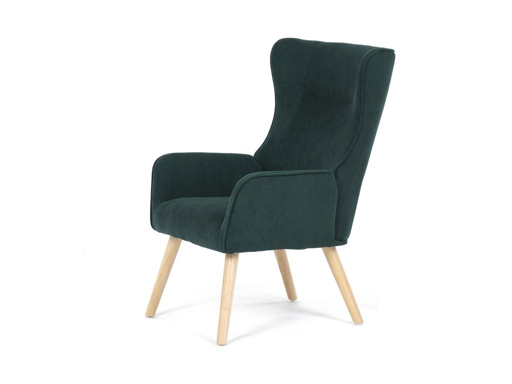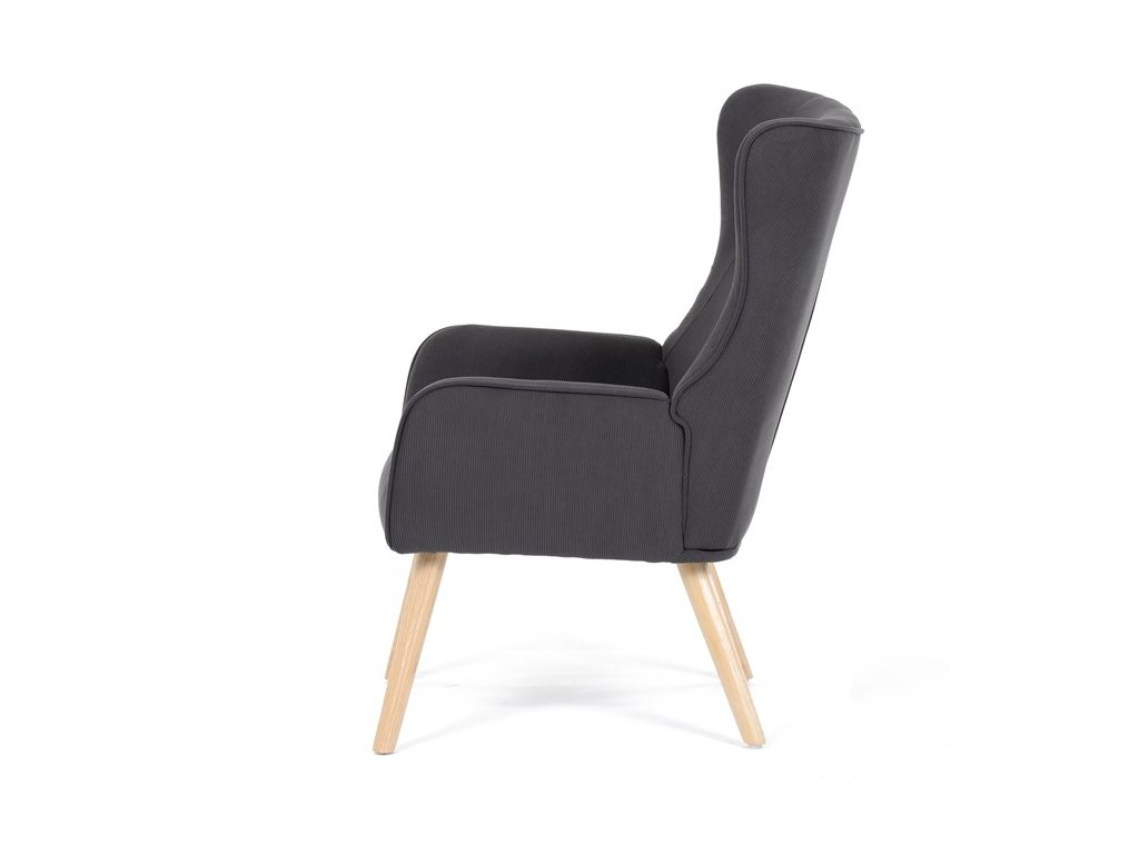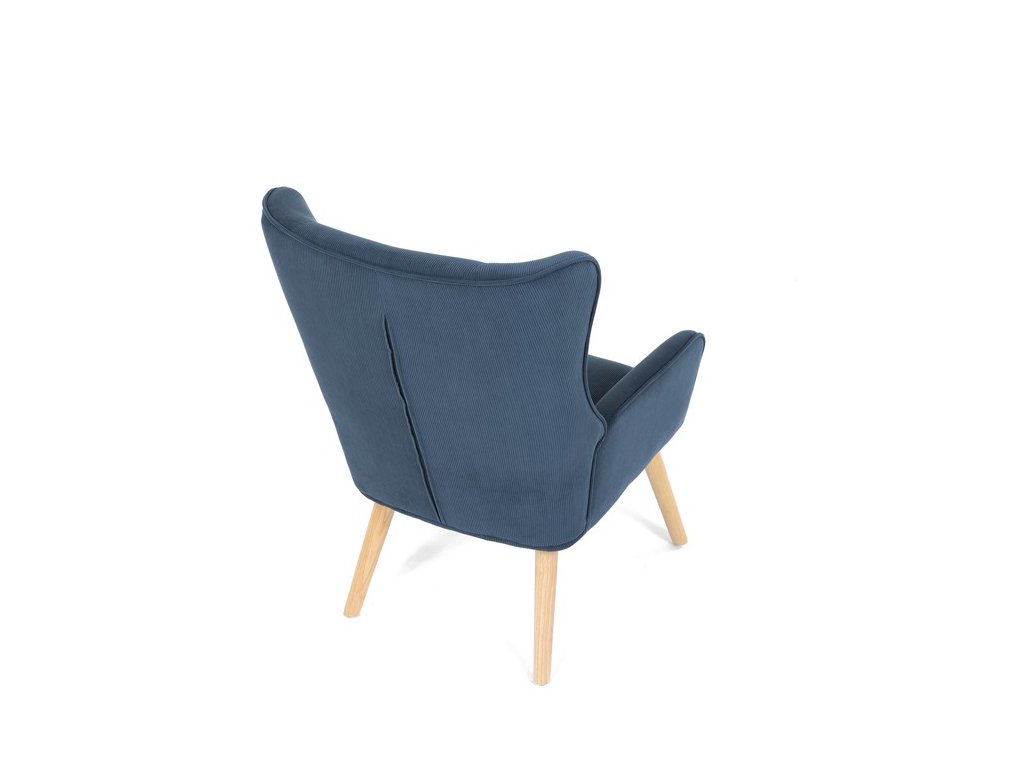 Křeslo typu ušák s potahem z modré manšestrové látky nabízí pohodlné sezení s výrazným vizuálním efektem díky jemné textuře manšestru. Sedák a opěradlo jsou vyplněné měkkou výplní, která zajišťuje komfort při delším posezení. Masivní nohy z kaučukovníku poskytují stabilní a pevnou oporu, přičemž jejich přírodní odstín kontrastuje s tmavě modrým potahem. Ergonomický tvar opěradla s mírně zvýšenými bočnicemi podporuje správnou polohu těla. Křeslo je určeno pro interiéry, kde vynikne jeho kombinace tradičního stylu a kvalitního materiálového provedení.