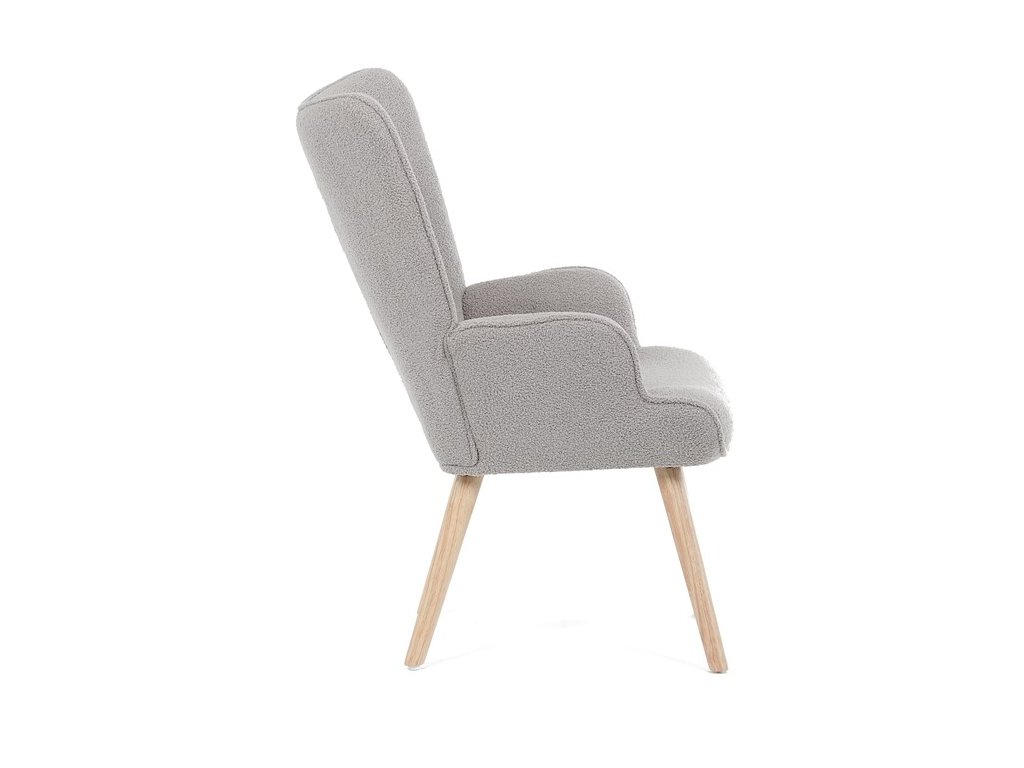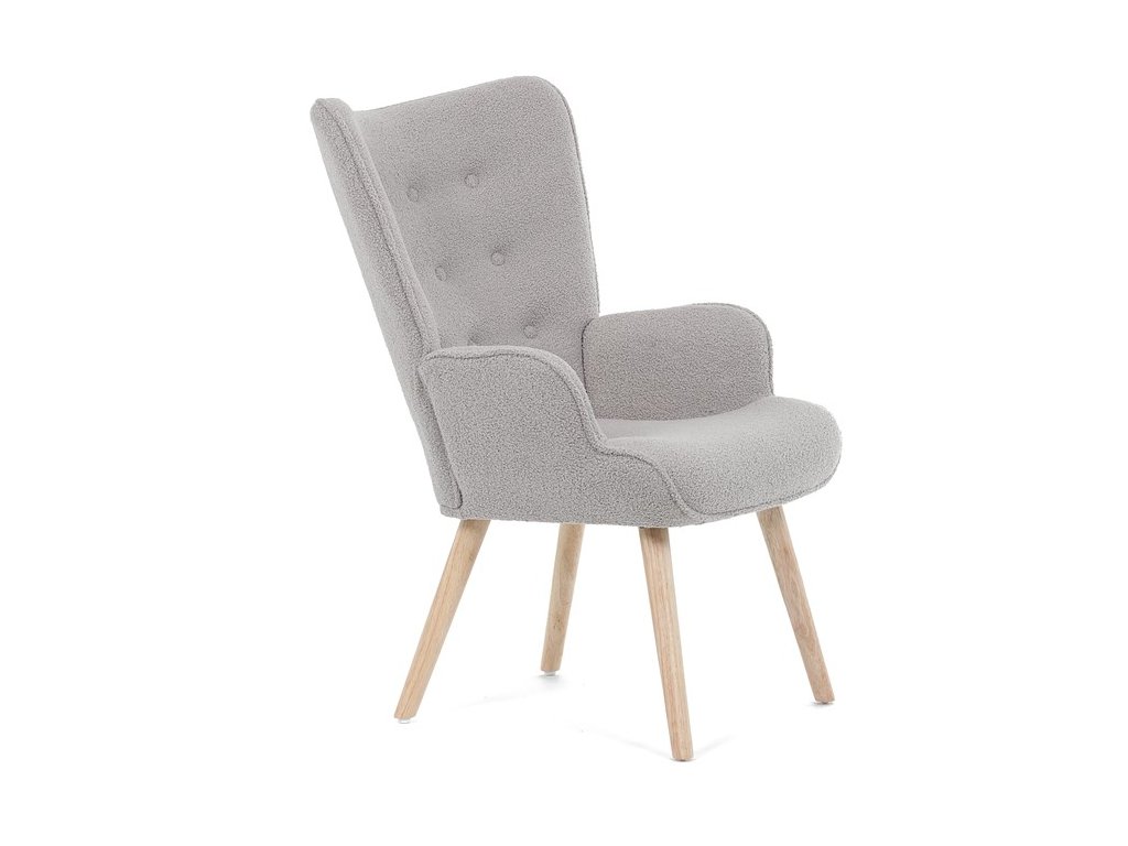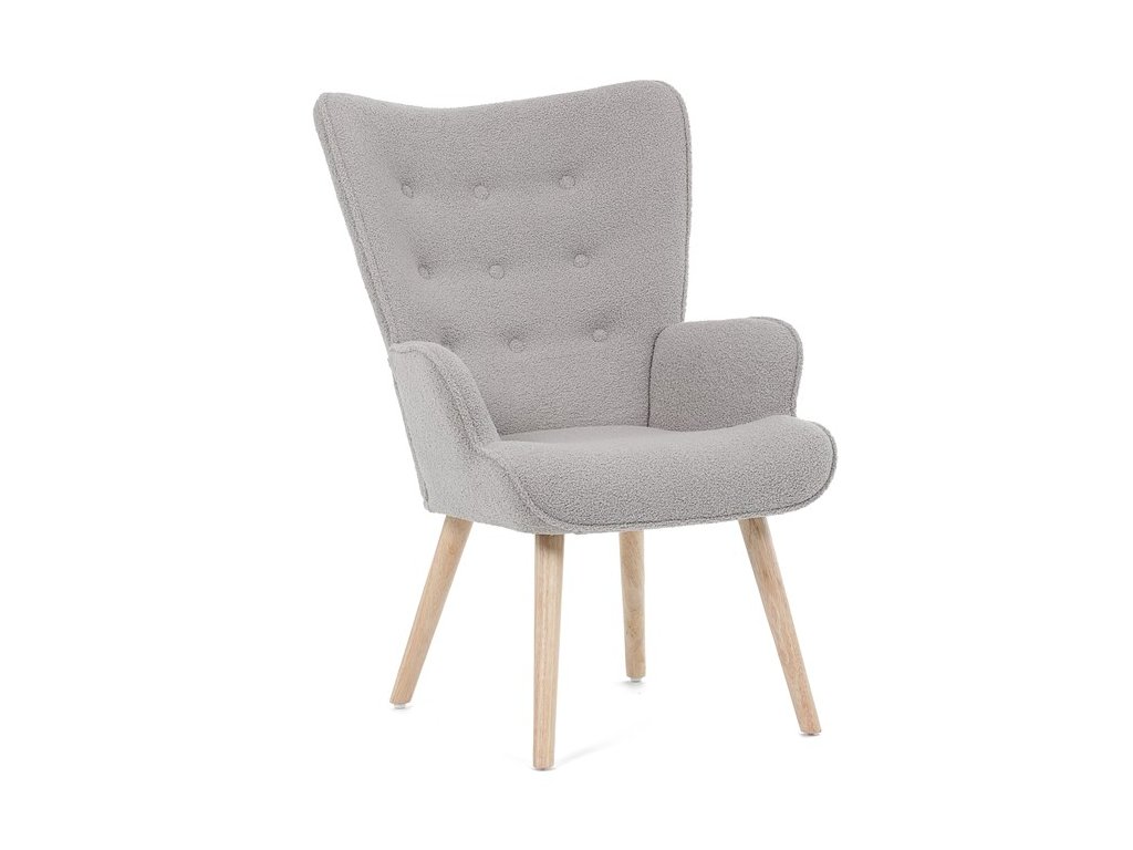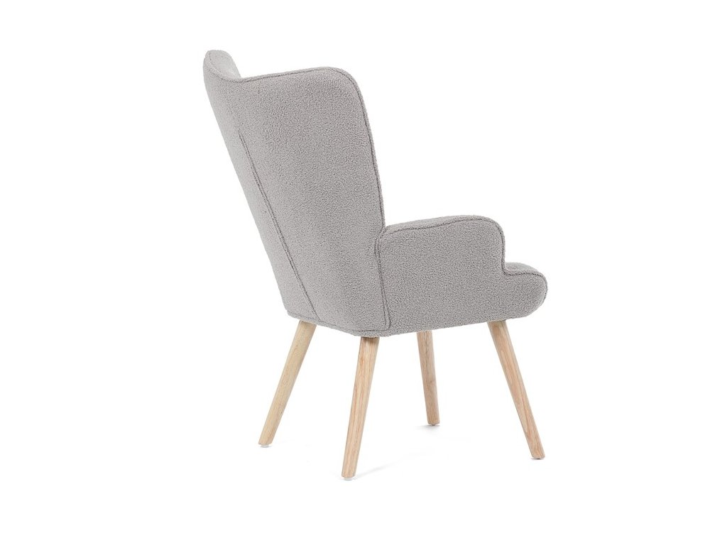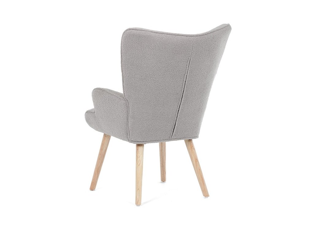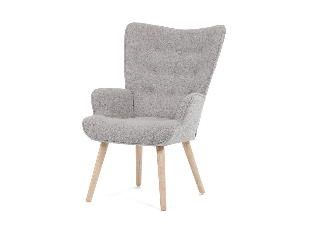 Zkrášlete svůj obývací pokoj nebo pracovnu tímto křeslem, které v sobě kombinuje šedou barvu a přírodní masivní nohy. Potah křesla je vyroben z látky bouclé s jemným povrchem. Pěnová výplň křesla Vám poskytne opravdový komfort.
