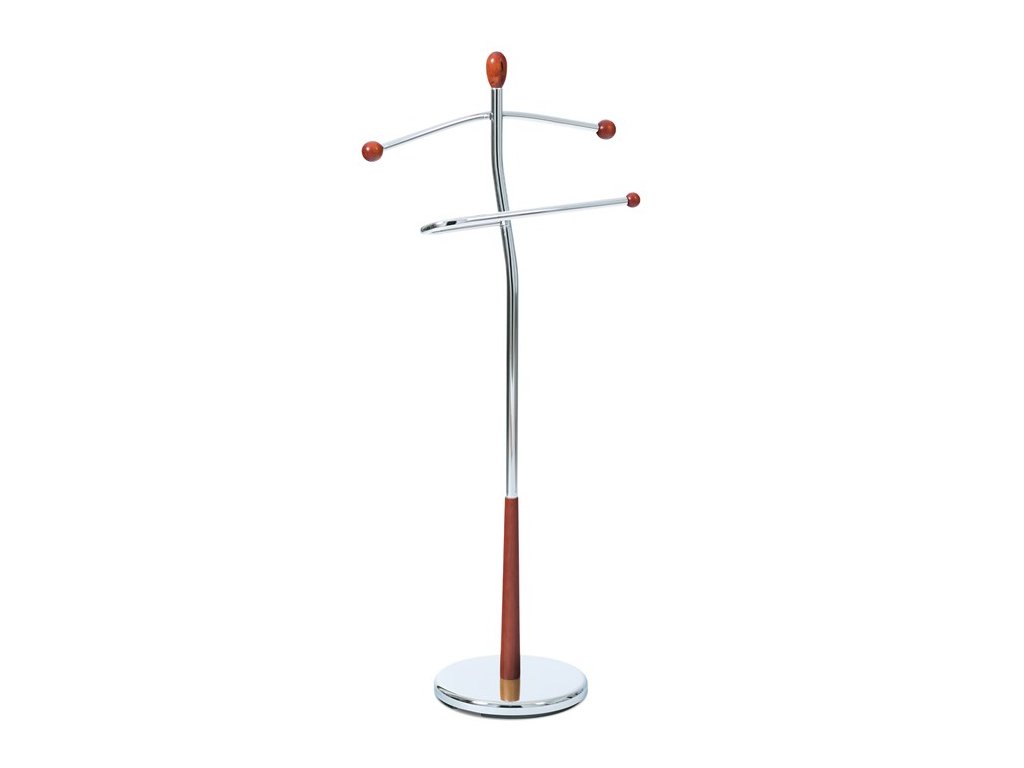 Praktický minimalistický němý sluha v sobě kombinuje prvky z masivního kaučukovníkového dřeva s kovovými nosnými díly v chromované povrchové úpravě. Tento model je v červenohnědém moření, lakovaný kvalitním transparentním lakem. Výška 120 cm Vám umožní zavěšení oblečení i doplňků zcela bez pomačkání. Nosnost stojanu je až 5 kg rovnoměrně rozprostřené zátěže, hmotnost 5 kg. Konstrukce je zakončena kovovou chromovanou podestou se zátěží v černém plastovém pouzdře. Stojan je jednoduše přenositelný a lze ho umístit podle momentální potřeby i nálady. Stylem a jednoduchostí se hodí do jakéhokoli interiéru. Využití je nepřeberné, záleží jen na Vás.