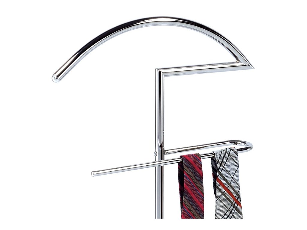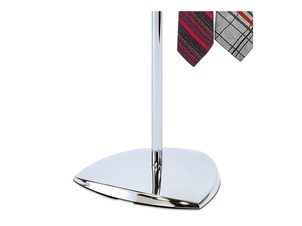 Němý sluha v lesklém chromovém provedení nabízí praktické a stylové řešení pro uložení oblečení a doplňků. Jeho kovové tělo s výškou 105 cm je navrženo tak, aby pojalo až 5 kg, což umožňuje pohodlné zavěšení košil, kalhot nebo kravat. Stabilní základna ve tvaru trojúhelníku zajišťuje pevnou oporu a zároveň dodává celku moderní vzhled. Vhodný je do ložnice, šatny nebo předsíně, kde pomůže udržet pořádek a připravit oblečení na další den.
