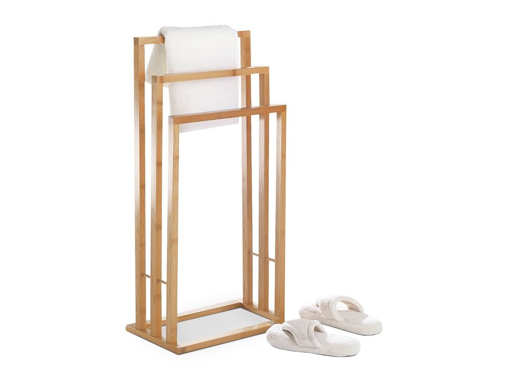 Stojan na ručníky z masivního bambusu v přírodním odstínu nabízí praktické a stylové řešení pro uskladnění a sušení ručníků. Jeho jednoduché a otevřené tělo umožňuje snadné zavěšení několika kusů textilu, přičemž pevná základna zajišťuje stabilitu při zatížení až 5 kg. Výška 82 cm je ideální pro pohodlné používání v koupelně či ložnici. Bambusový materiál se snadno udržuje a díky přírodnímu vzhledu přináší do prostoru příjemnou atmosféru.