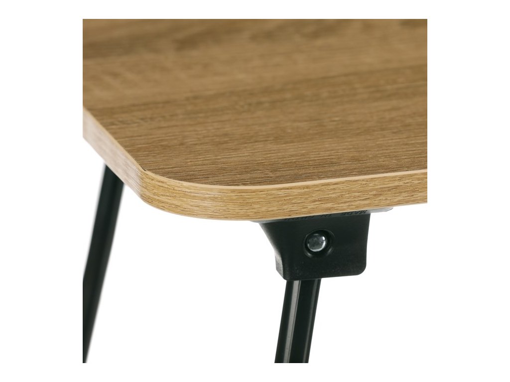 Skládací stolek značky Autronic kombinuje moderní industriální styl s praktickým využitím. Deska z MDF materiálu s dekorem dubu vytváří elegantní vzhled, ideální do obývacích pokojů či pracovních prostor. Skládací kovová podnož a černé nohy dodávají stolku snadnou manipulaci. Díky obdélníkovému tvaru a kompaktním rozměrům je stolek vhodný pro práci s notebookem nebo jako servírovací stolek. Tento stolek se stane praktickým doplňkem každého interiéru.