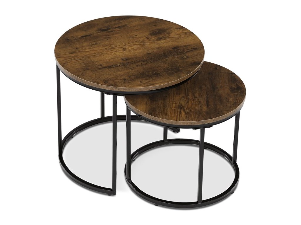Sada dvou odkládacích stolků značky Autronic spojuje moderní design a funkčnost. Kulaté desky v přírodním dekoru skvěle kontrastují s černými kovovými nohami, což vytváří elegantní industriální vzhled. Stoly lze snadno zasunout pod sebe, což šetří prostor a zvyšuje jejich praktické využití. Jsou ideální do obývacího pokoje k odložení nápojů, knih nebo dekorací. Díky pečlivému zpracování a kvalitním materiálům je tato sada stylovým a odolným doplňkem každého interiéru.