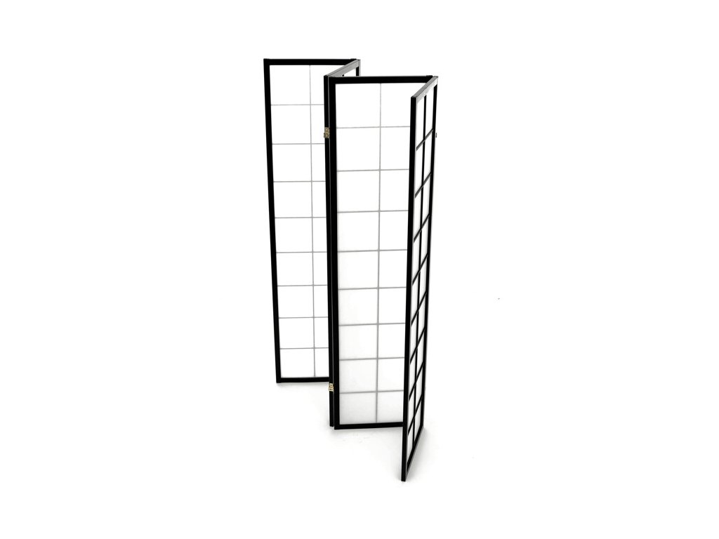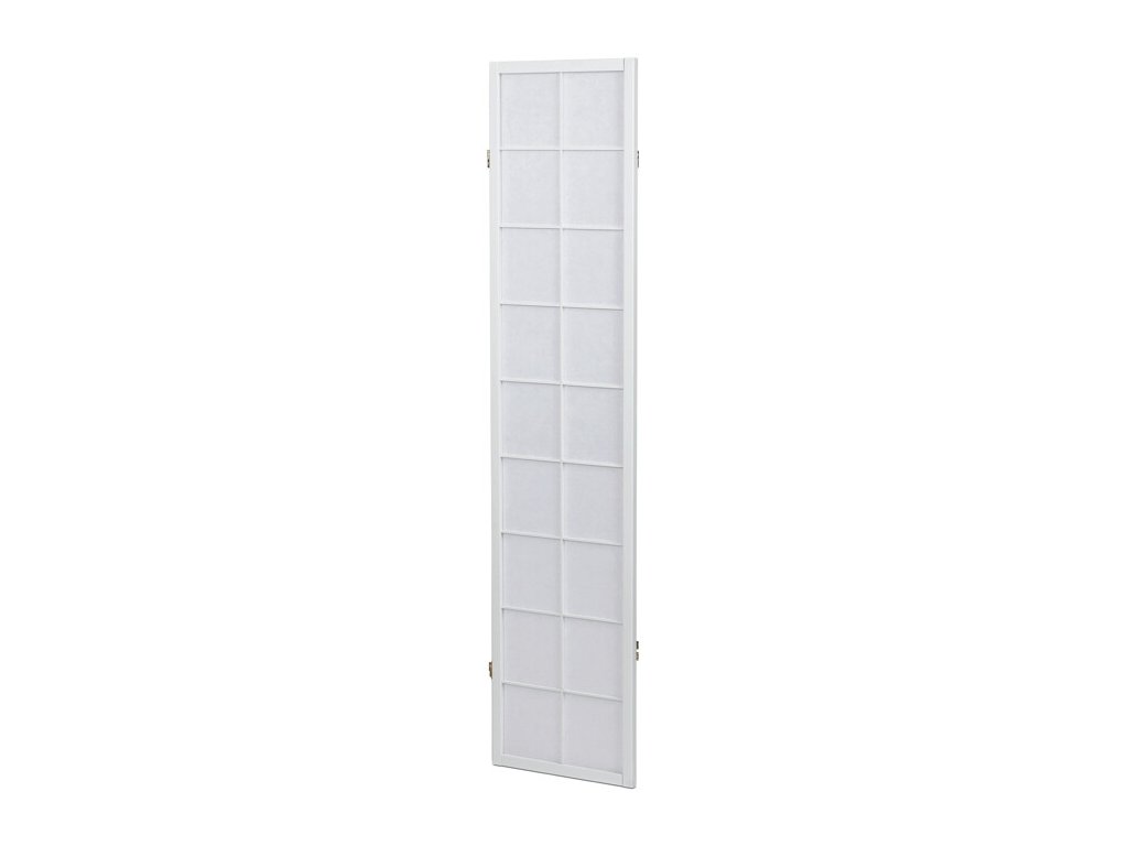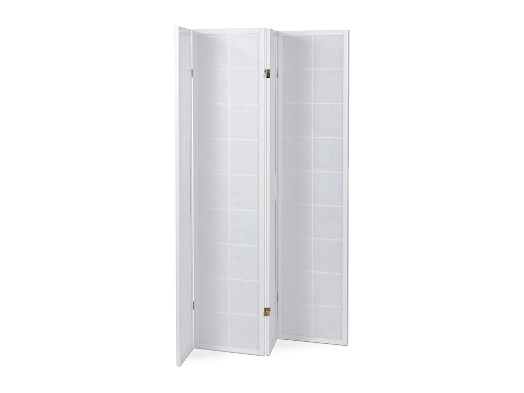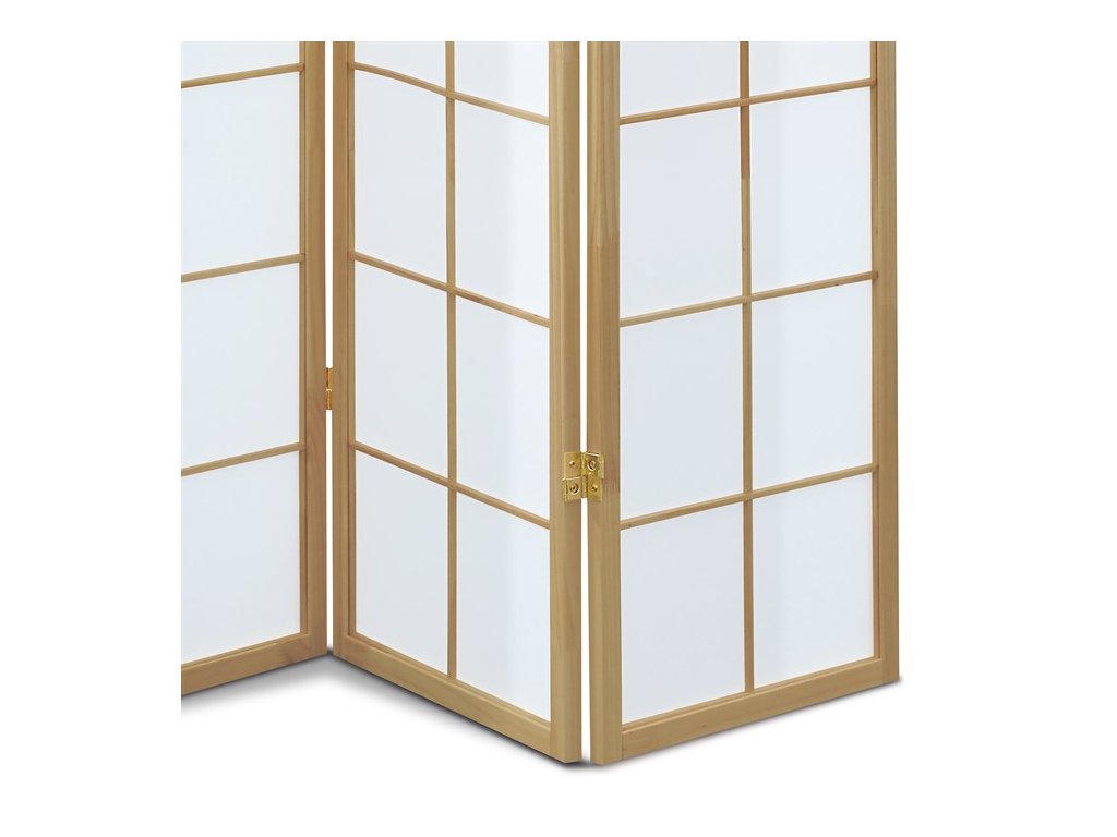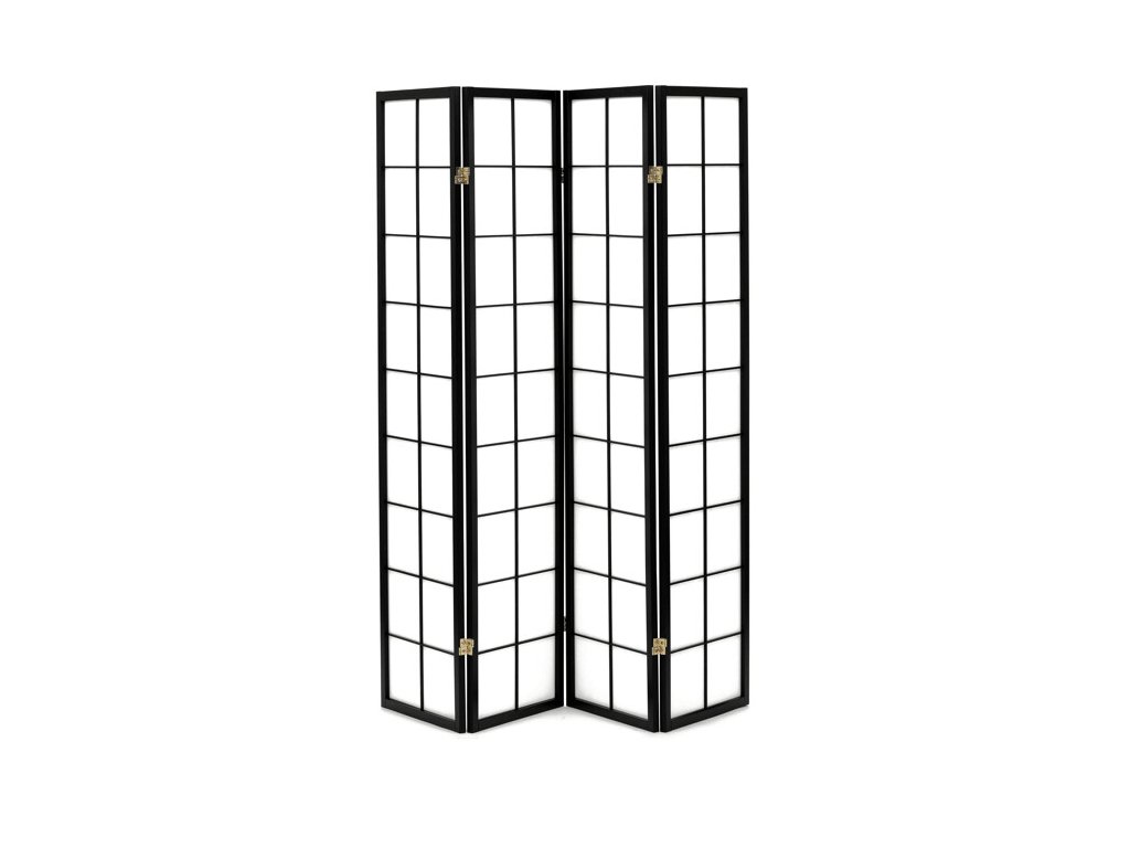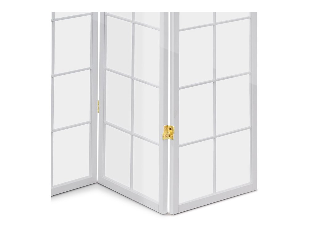 4dílný volně stojící paraván s konstrukcí z masivního smrkového dřeva v černé barvě a výplní z bílé netkané textilie. Plní nejen funkci okrasnou, ale také praktickou. Lze jej použít jako zástěnu nebo diskrétní i optickou dělící příčku nejen v bytě, ale i v komerčních prostorách. Díky skládací konstrukci a celkové nízké hmotnosti jej lze bez problémů přemísťovat a manipulovat s ním. Kombinace dřeva a netkané textilie působí vzdušným dojmem, stylově lze paraván umístit do jakkoli zařízeného interiéru. V každém si najde zasloužené místo. Výška paravánu je 178 cm, šíře jednoho dílu 43,5 cm, celková plná šíře je 176 cm. Tloušťka stěny jsou 2 cm. Stěny paravánu jsou k sobě připevněny kovovými pomosazenými panty. Celková hmotnost je 6,5 kg.