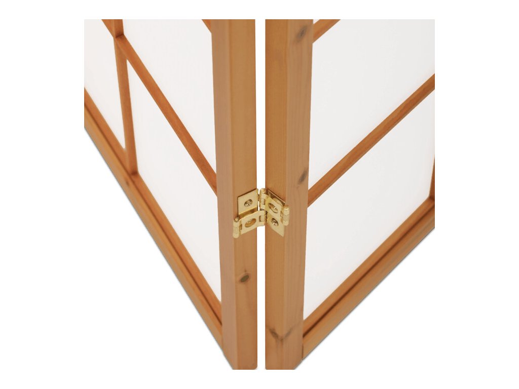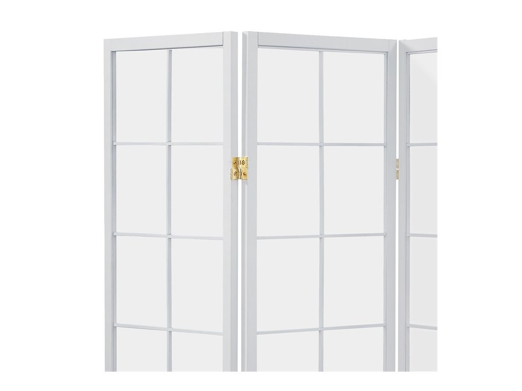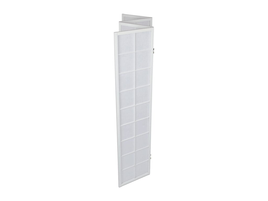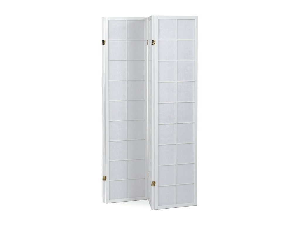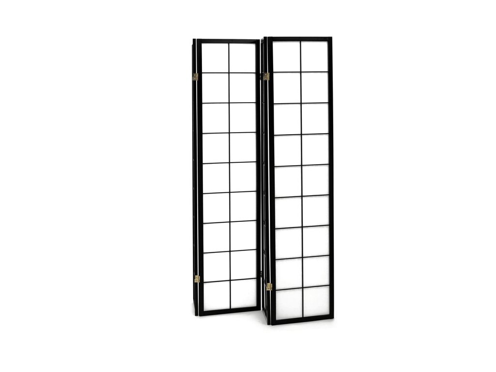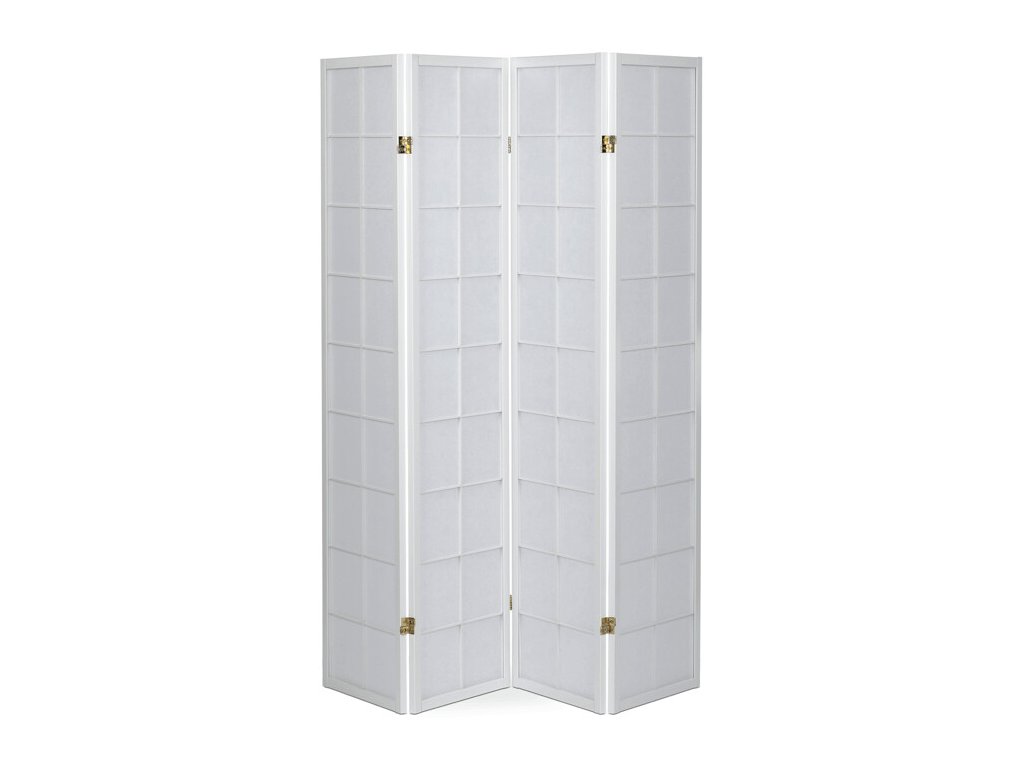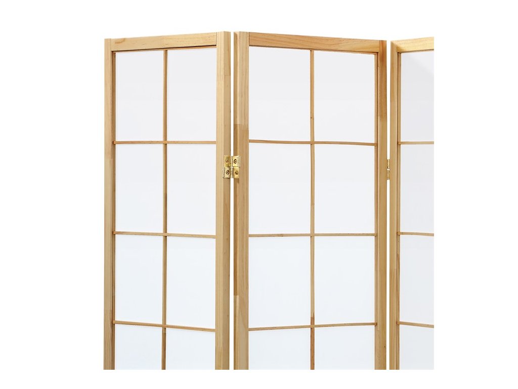 4dílný volně stojící paraván s konstrukcí z masivního smrkového dřeva v černé barvě a výplní z bílé netkané textilie. Plní nejen funkci okrasnou, ale také praktickou. Lze jej použít jako zástěnu nebo diskrétní i optickou dělící příčku nejen v bytě, ale i v komerčních prostorách. Díky skládací konstrukci a celkové nízké hmotnosti jej lze bez problémů přemísťovat a manipulovat s ním. Kombinace dřeva a netkané textilie působí vzdušným dojmem, stylově lze paraván umístit do jakkoli zařízeného interiéru. V každém si najde zasloužené místo. Výška paravánu je 178 cm, šíře jednoho dílu 43,5 cm, celková plná šíře je 176 cm. Tloušťka stěny jsou 2 cm. Stěny paravánu jsou k sobě připevněny kovovými pomosazenými panty. Celková hmotnost je 6,5 kg.