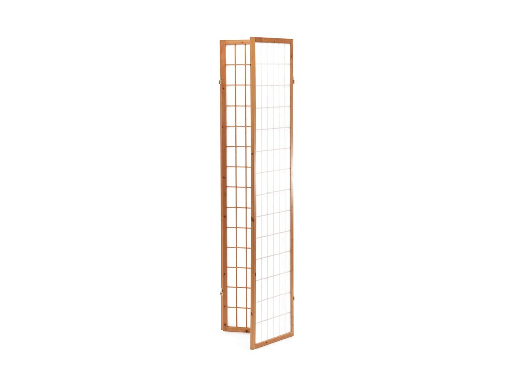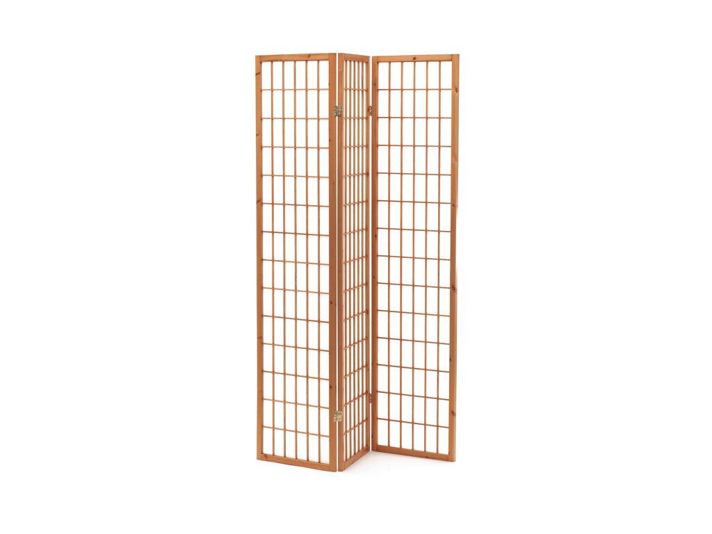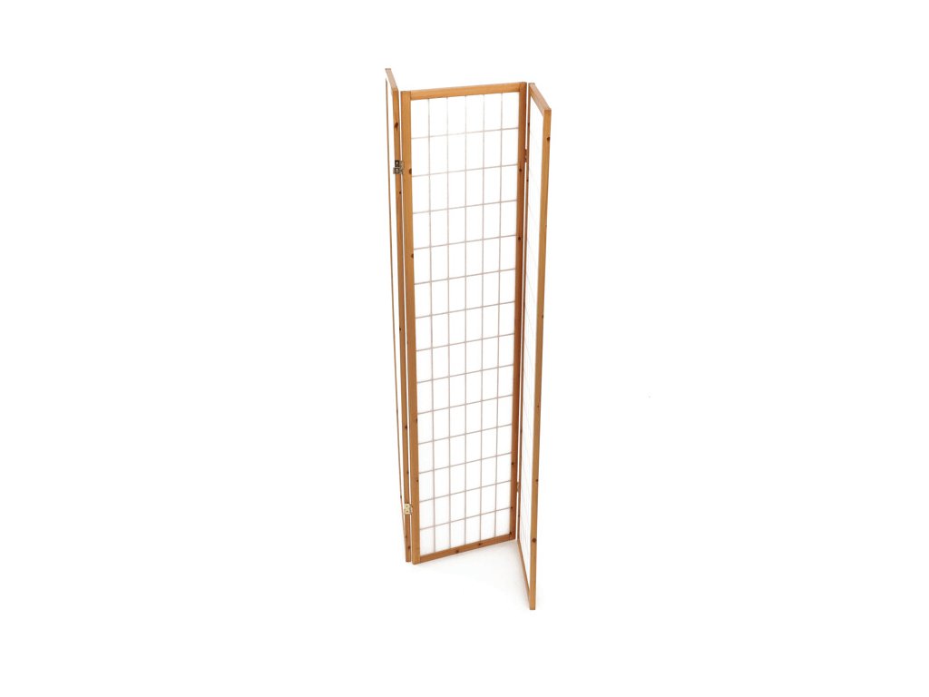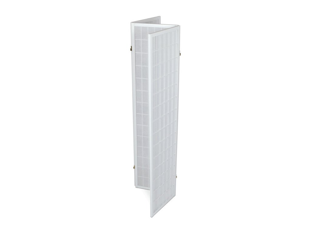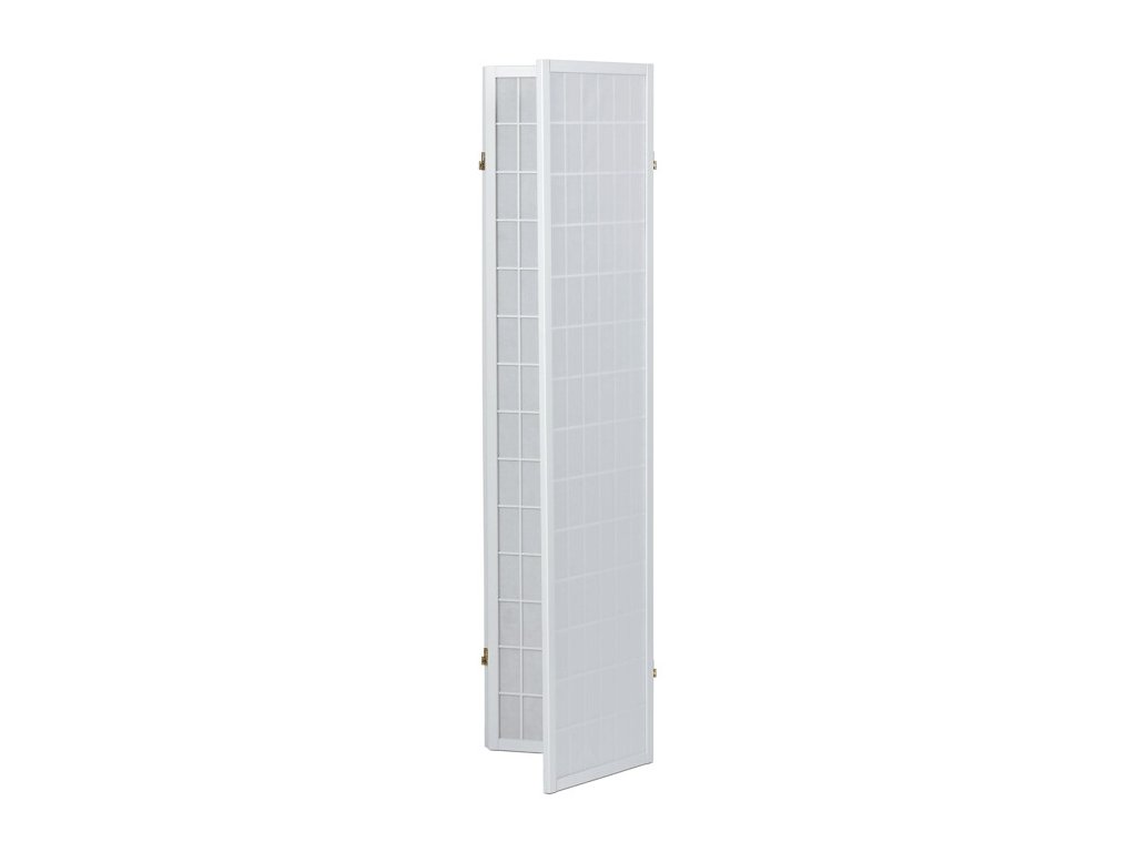 3dílný volně stojící paraván s konstrukcí z masivního smrkového dřeva v přírodní barvě. Výplň z bílé netkané textilie. Plní nejen funkci okrasnou, ale také praktickou. Lze jej použít jako zástěnu nebo diskrétní i optickou dělící příčku nejen v bytě, ale i v komerčních prostorách. Díky skládací konstrukci a celkové nízké hmotnosti jej lze bez problémů přemísťovat a manipulovat s ním. Kombinace dřeva a netkané textilie působí vzdušným dojmem, stylově lze paraván umístit do jakkoli zařízeného interiéru. V každém si najde zasloužené místo. Výška paravánu je 178 cm, šíře jednoho dílu 43,5 cm, celková plná šíře je 132 cm. Tloušťka stěny jsou 2 cm. Stěny paravánu jsou k sobě připevněny kovovými pomosazenými panty. Celková hmotnost je 5 kg.